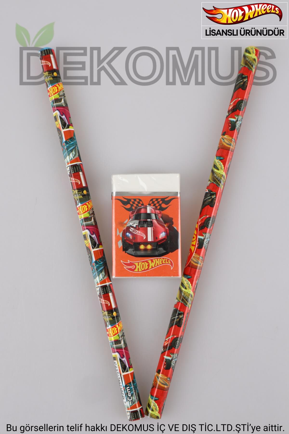 DEKOMUS HOT WEELS seven miniklerimizin yanında! HOT WEELS bu seti çok seveceksiniz!! HOT WEELS olarak sattığımız tüm ürünler orjinal ve lisanslıdır.Sağlığa zararlı kimyasal madde kullanılmamıştır.2 adet kurşun kalem ve 1 adet silgi gönderilecektir.