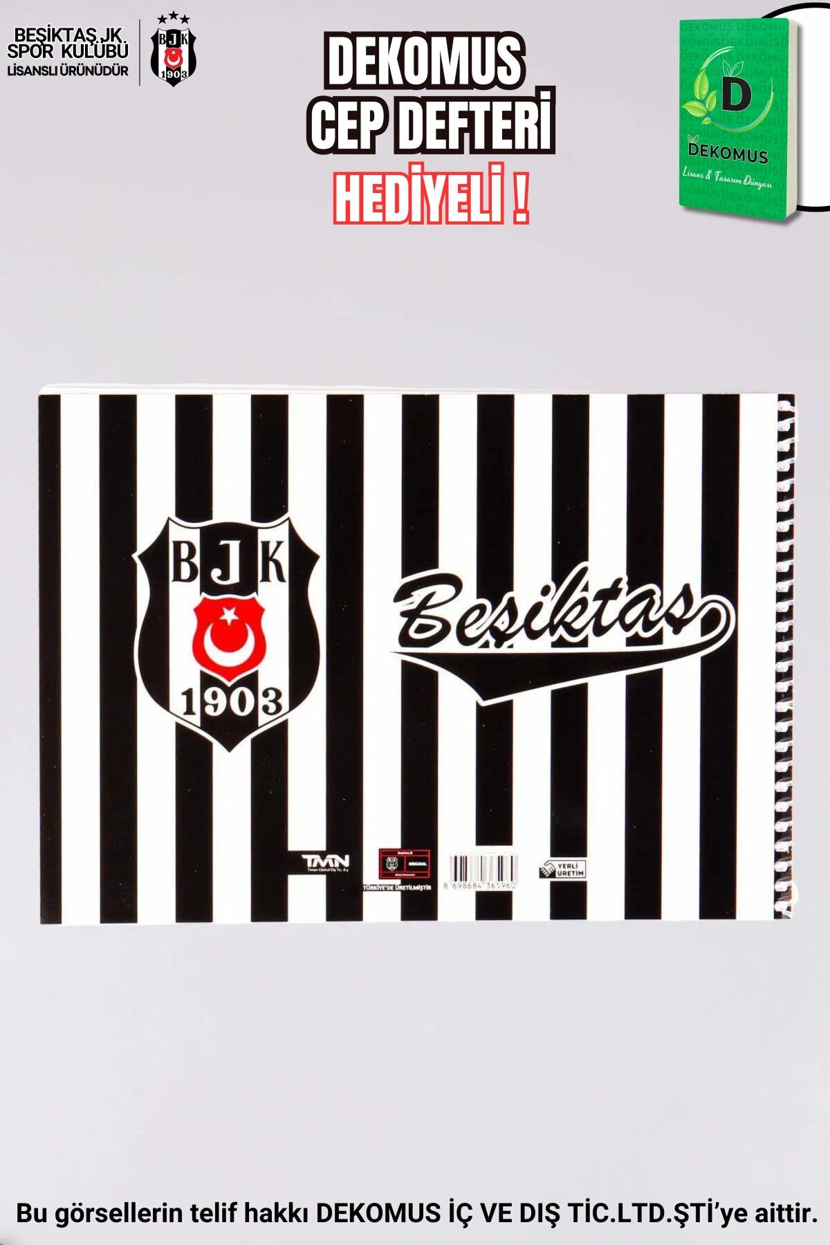 DEKOMUS Beşiktaşlı minik taraftarlarımızın yanında! Beşiktaşlı çocuklar için özel olarak hazırlanan bu defterlerle resim yapmayı daha da çok sevecekler.BEŞİKTAŞ olarak sattığımız tüm ürünler orjinal ve lisanslıdır.Ürün özellikleri : 24x17 cm ve 15 Yaprak.DEFTERLER KARIŞIK GÖNDERİLECEKTİR.