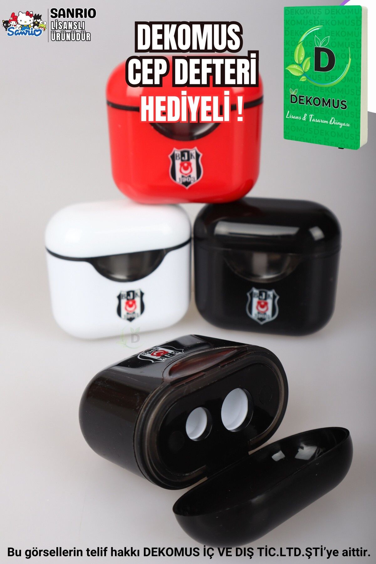 ''DEKOMUS CEP DEFTERİ HEDİYELİ'' LİSANSLI BEŞİKTAŞ ''TEKLİ'' ÇİFT BIÇAKLI PODS/KULAKLIK TASARIMLI KALEMTRAŞ