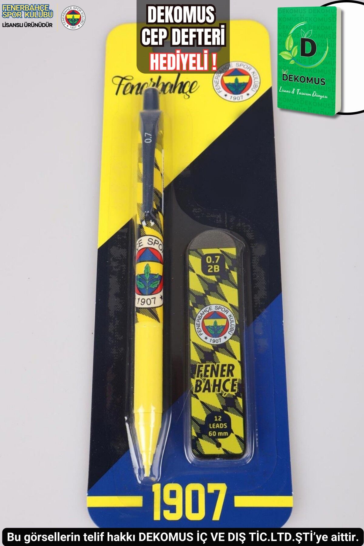 DEKOMUS Fenerbahçeli taraftarlarımızın yanında! Fenerbahçeli taraftarlarımız için özel olarak hazırlanan bu uçlu kalem ve yanındaki 0.7 mm uç ile not almayı çok seveceksiniz.:) 1 adet set olarak gönderilecektir. FENERBAHÇE STORE olarak sattığımız tüm ürünler orjinal ve lisanslıdır.Sağlığa zararlı kimyasal madde kullanılmamıştır.