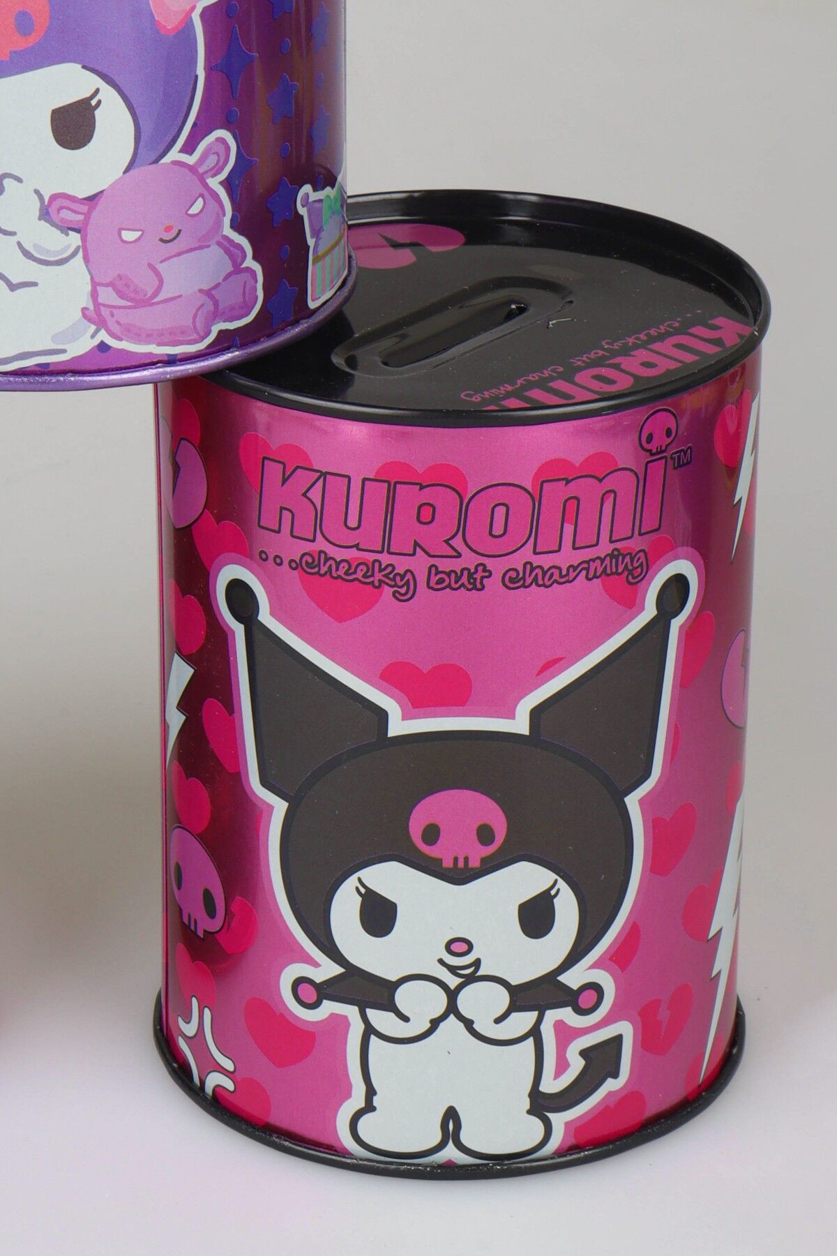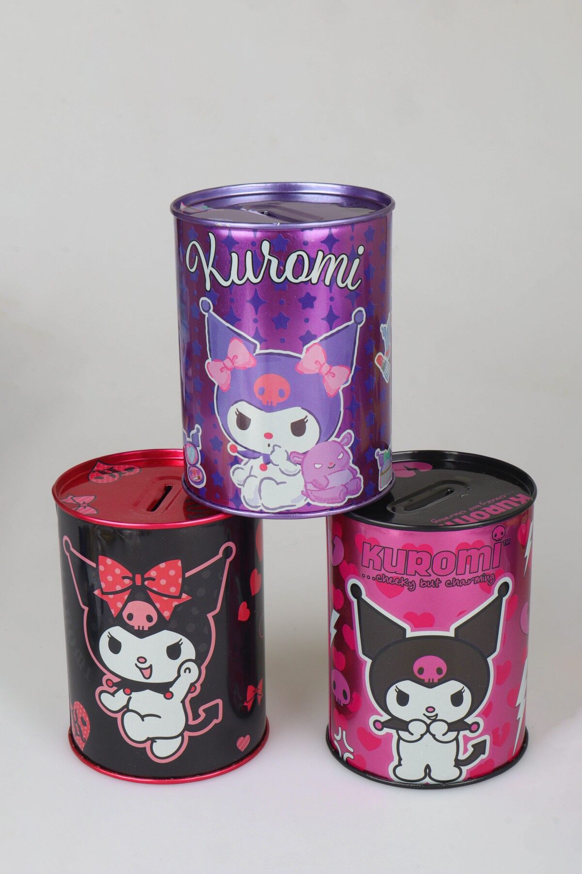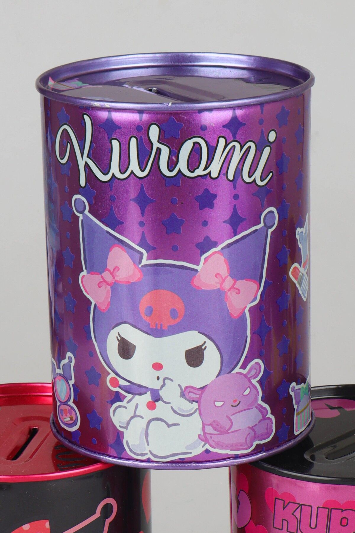 Sevimli Kuromi tasarımı ve canlı renkleriyle öne çıkan bu metal kumbara, hem dekoratif hem de kullanışlı bir tasarruf ürünüdür. Masa üstünde, çocuk odasında veya genç odasında şık bir aksesuar olarak kullanılabilir.