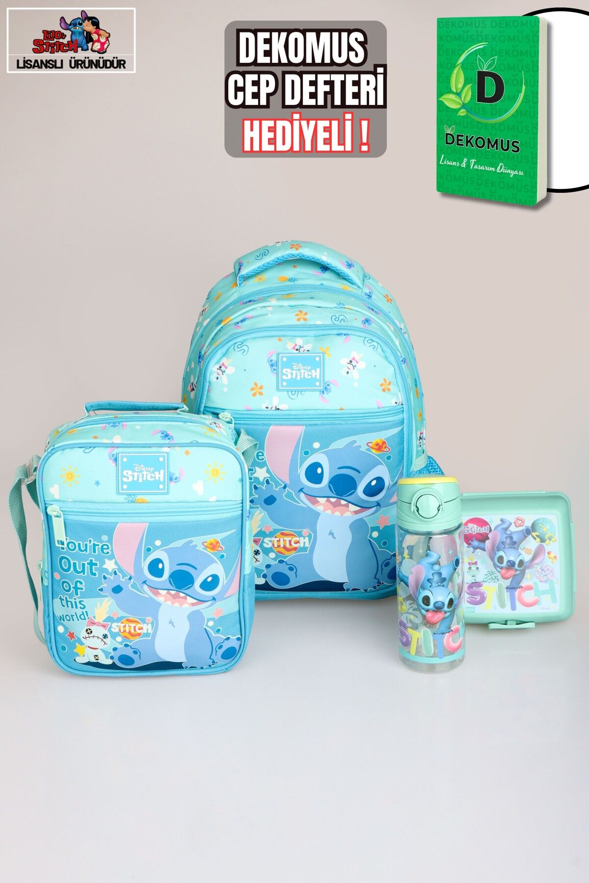 ''DEKOMUS CEP DEFTERİ HEDİYELİ'' LİSANSLI STITCH ''GALAXY POP KOLEKSİYONU'' OKUL ÇANTASI,TERMOSLU BESLENME ÇANTASI,500 ML MATARA VE BESLENME KABI SETİ