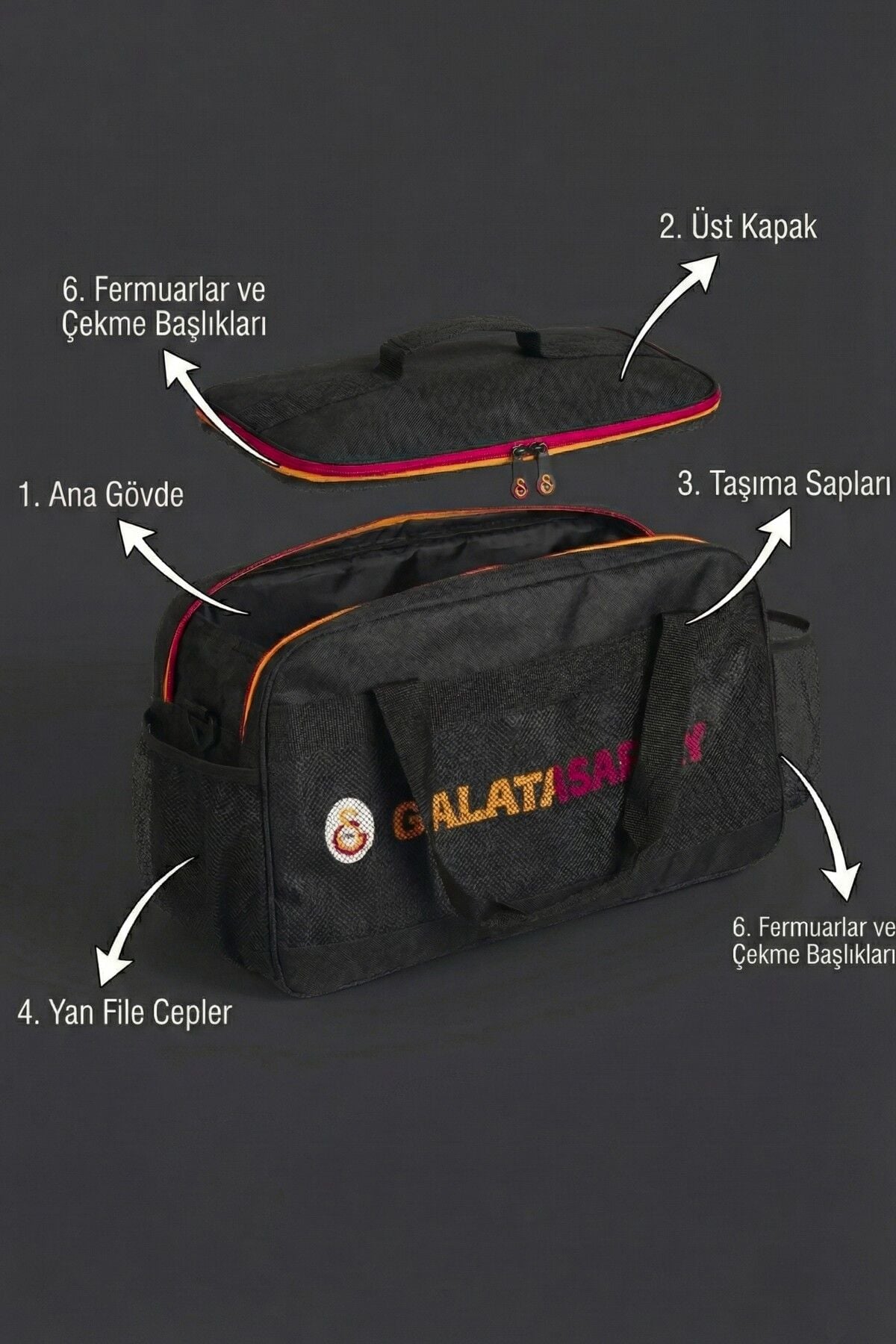 Öne Çıkan ÖzelliklerResmî Galatasaray lisanslı tasarım: Orijinal kulüp logolu, yüksek kaliteli baskı.Geniş iç hacim: Spor kıyafetlerinizi, ayakkabılarınızı ve kişisel eşyalarınızı rahatça taşıyabileceğiniz düzenli alan.2 ayrı fermuarlı bölme: Eşyalarınızı temiz–kirli veya ıslak–kuru olarak ayırmanıza imkân tanır.Dayanıklı file garnili yan cepler: Su şişesi, havlu, küçük spor aksesuarları ve hızlı ulaşmak istediğiniz eşyalar için ideal.Kaliteli kumaş yapısı: Aşınmaya dayanıklı, uzun ömürlü kullanım sunar.Ergonomik taşıma: Sağlam omuz askıları ve elde taşıma sapı ile rahat kullanım.Spor salonu, okul ve günlük kullanım için uygun: Çok yönlü tasarım.