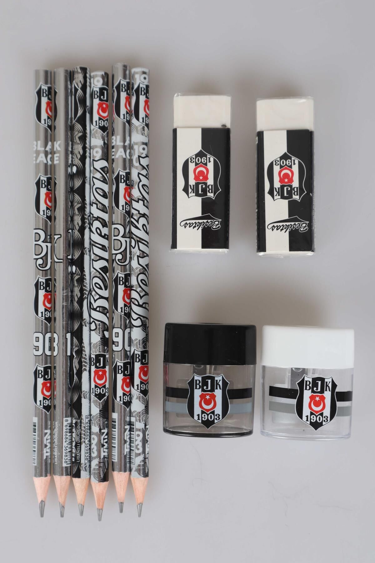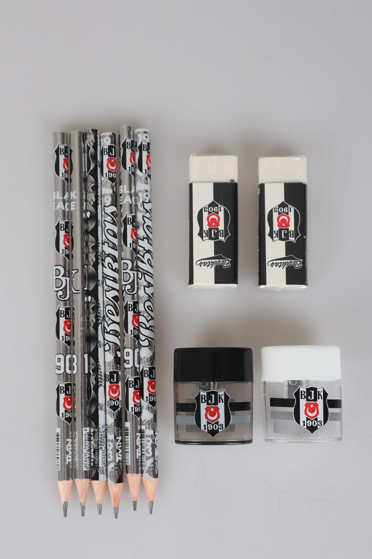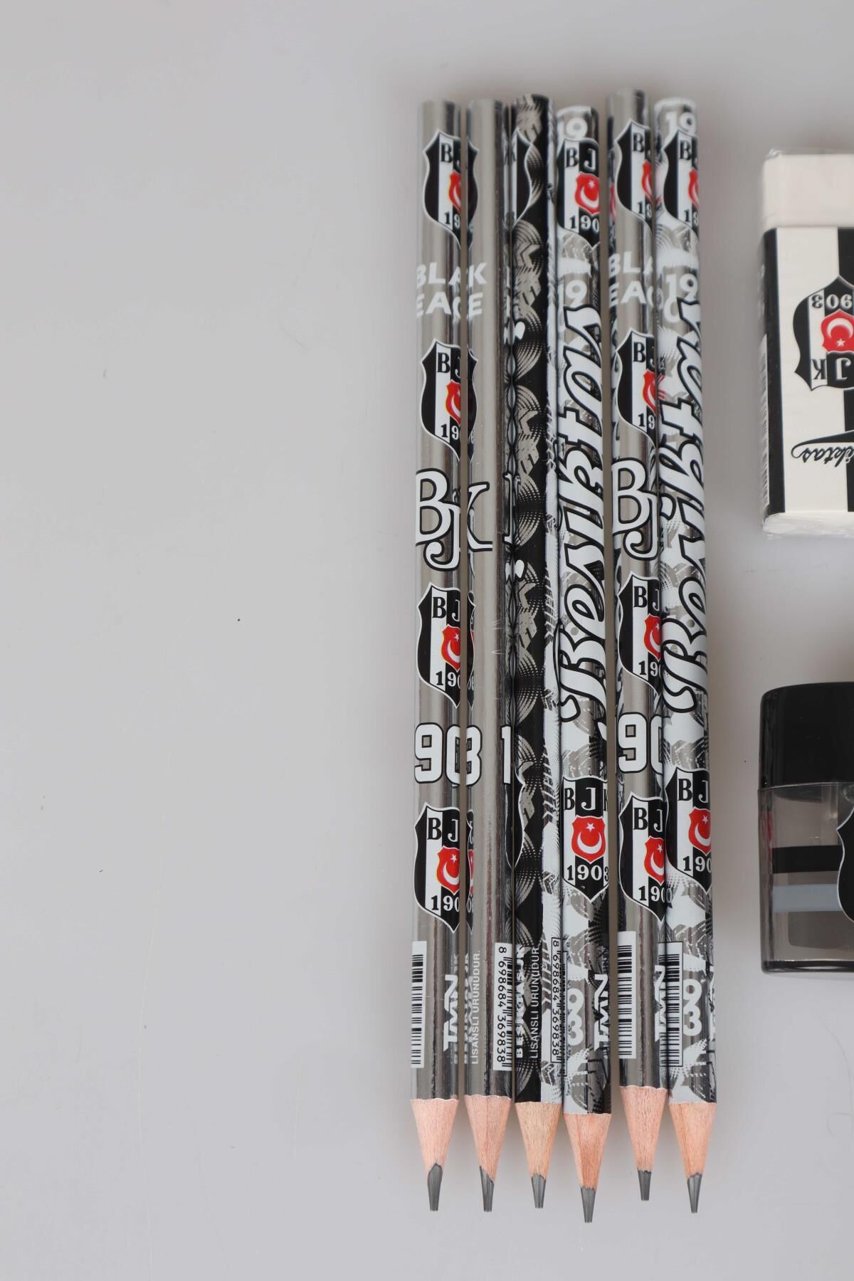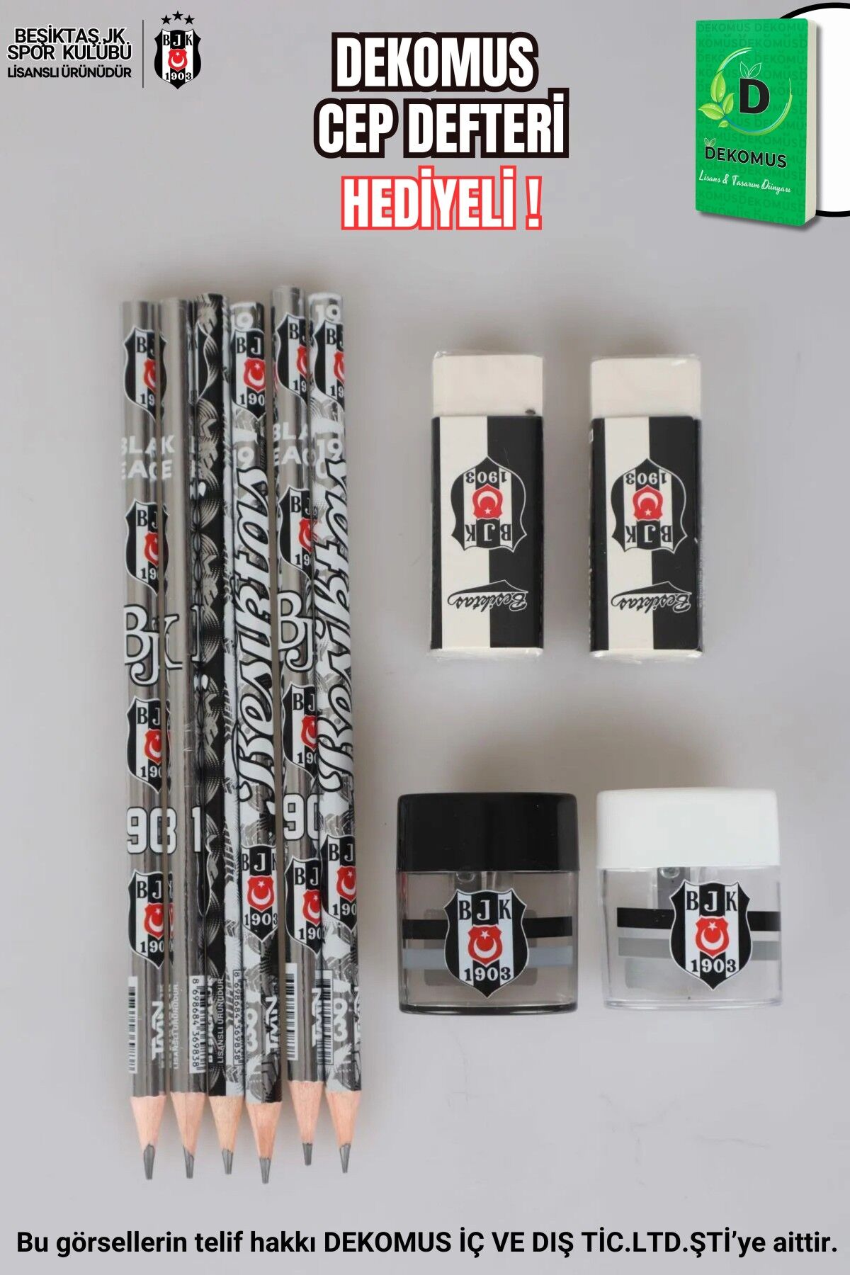 ''DEKOMUS CEP DEFTERİ HEDİYELİ'' LİSANSLI BEŞİKTAŞ 6 ADET KURŞUN KALEM,2 ADET SİLGİ VE 2 ADET KALEMTRAŞ SETİ
