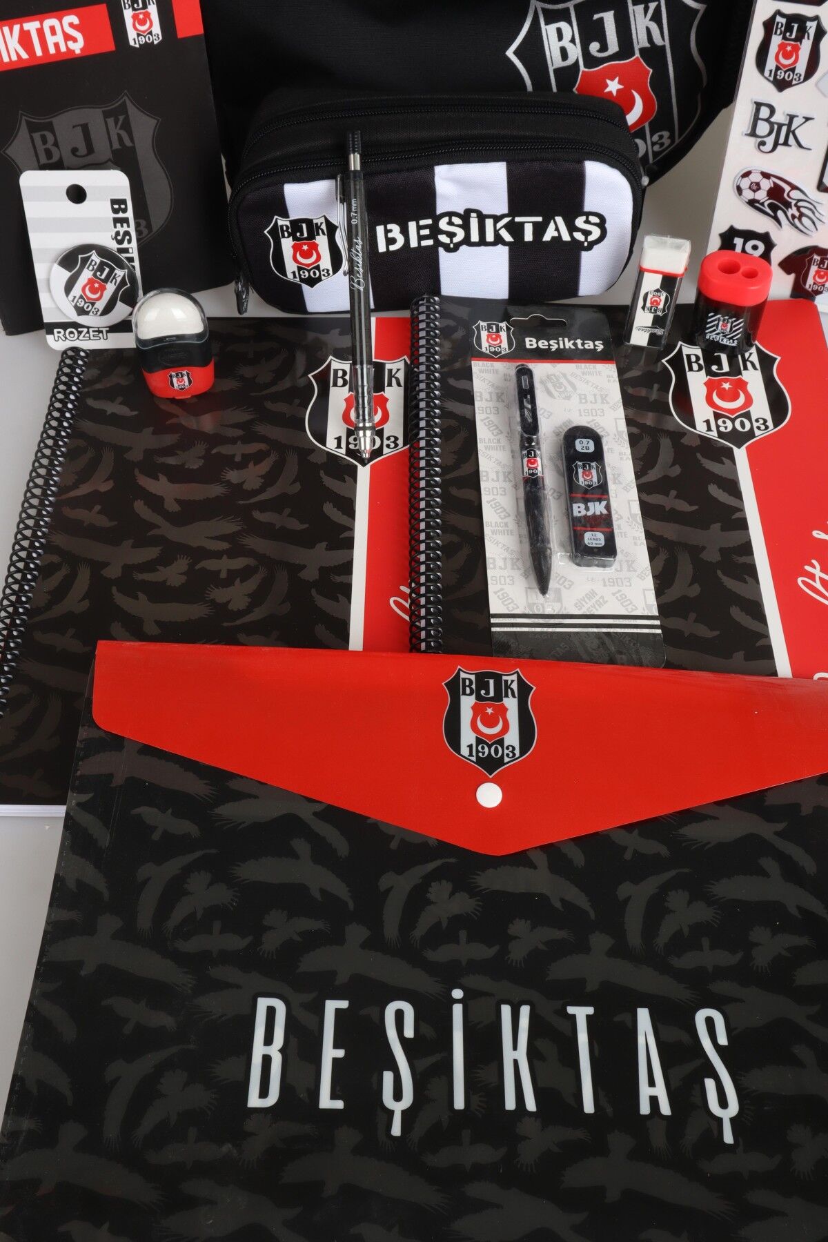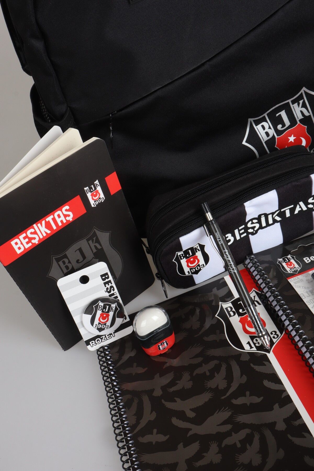 DEKOMUS İLE LİSANSLI BEŞİKTAŞ LİSE FULL KIRTASİYE SETİ BÜYÜK BOY OKUL VE KALEM ÇANTASI,A4 DEFTER,UÇLU KALEM