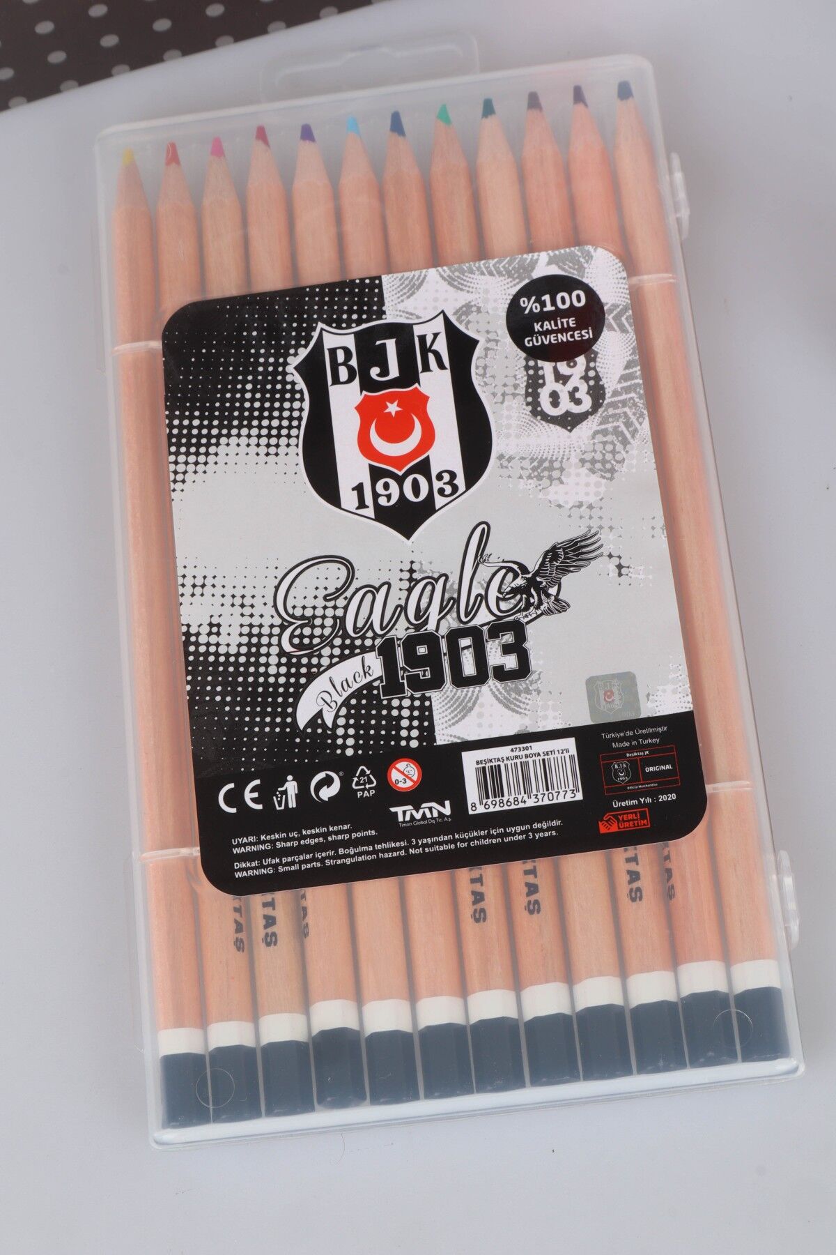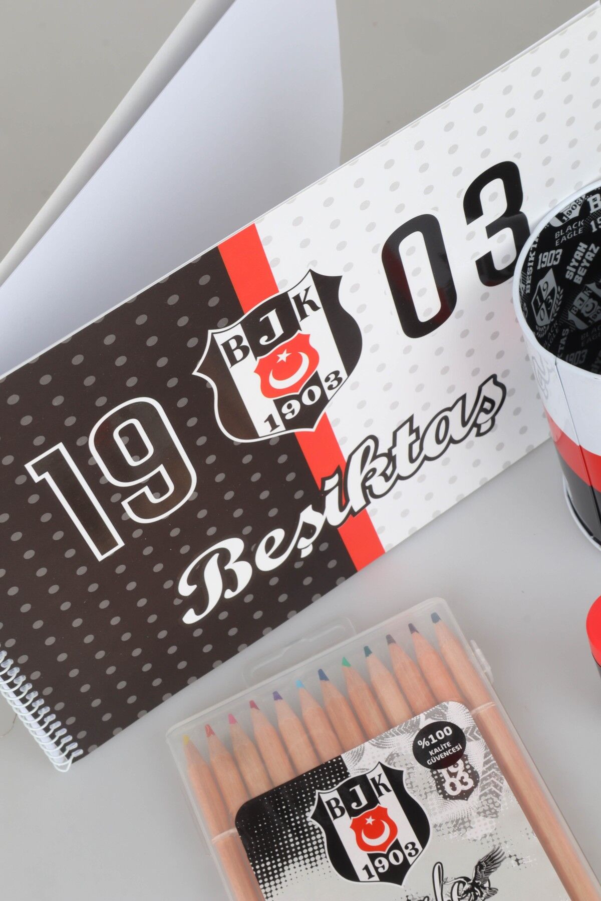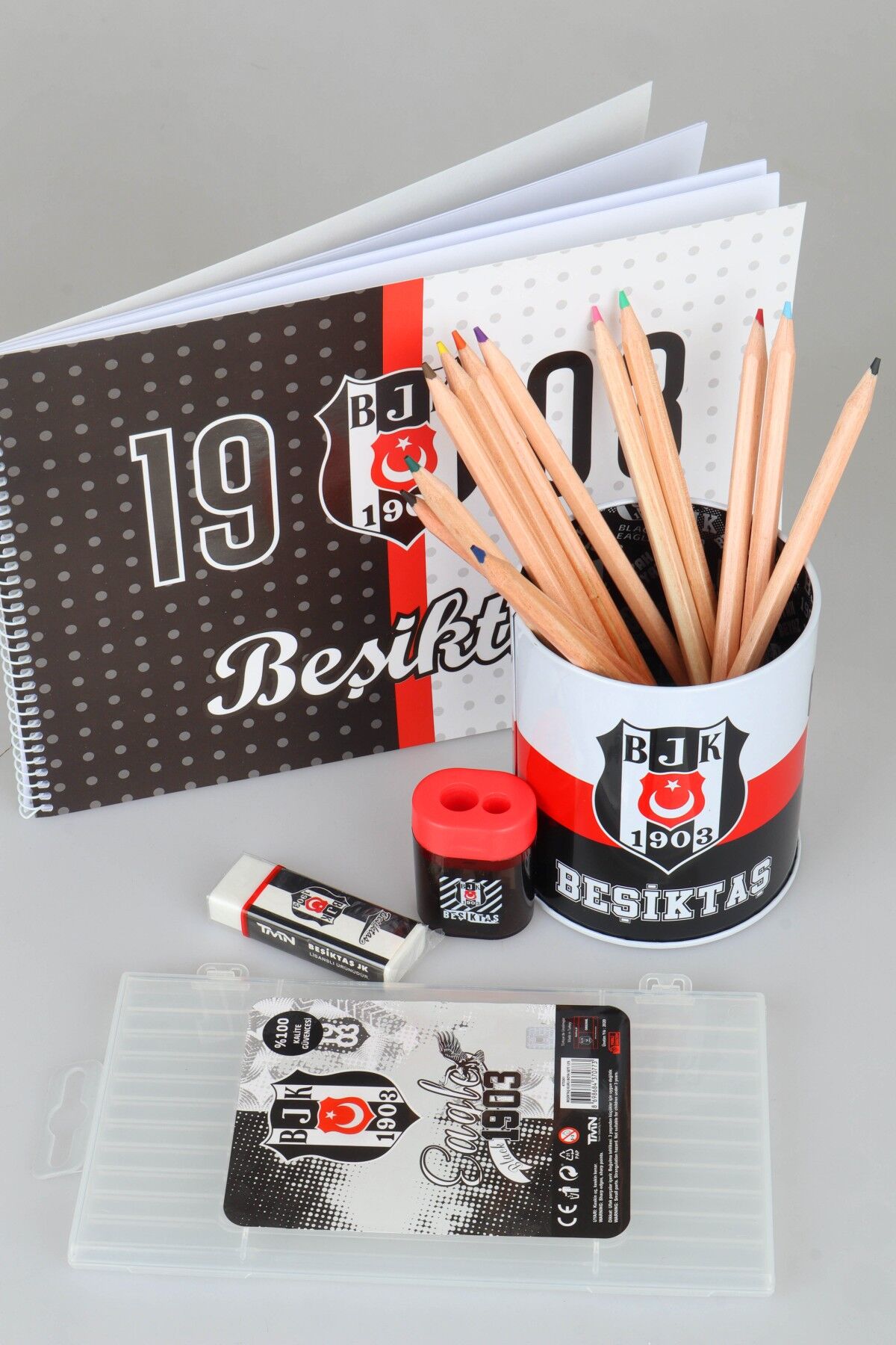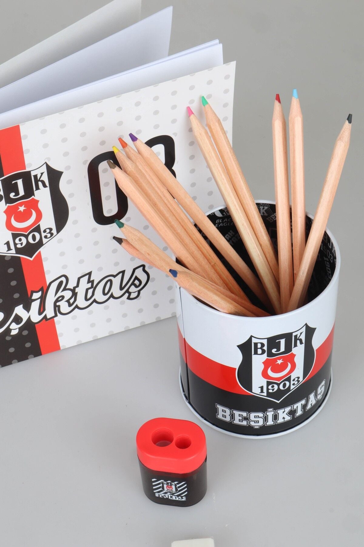 DEKOMUS İLE LİSANSLI BEŞİKTAŞ RESİM DEFTERİ,12'Lİ KURU BOYA KALEMİ,METAL KALEMLİK,SİLGİ VE KALEMTRAŞ SETİ