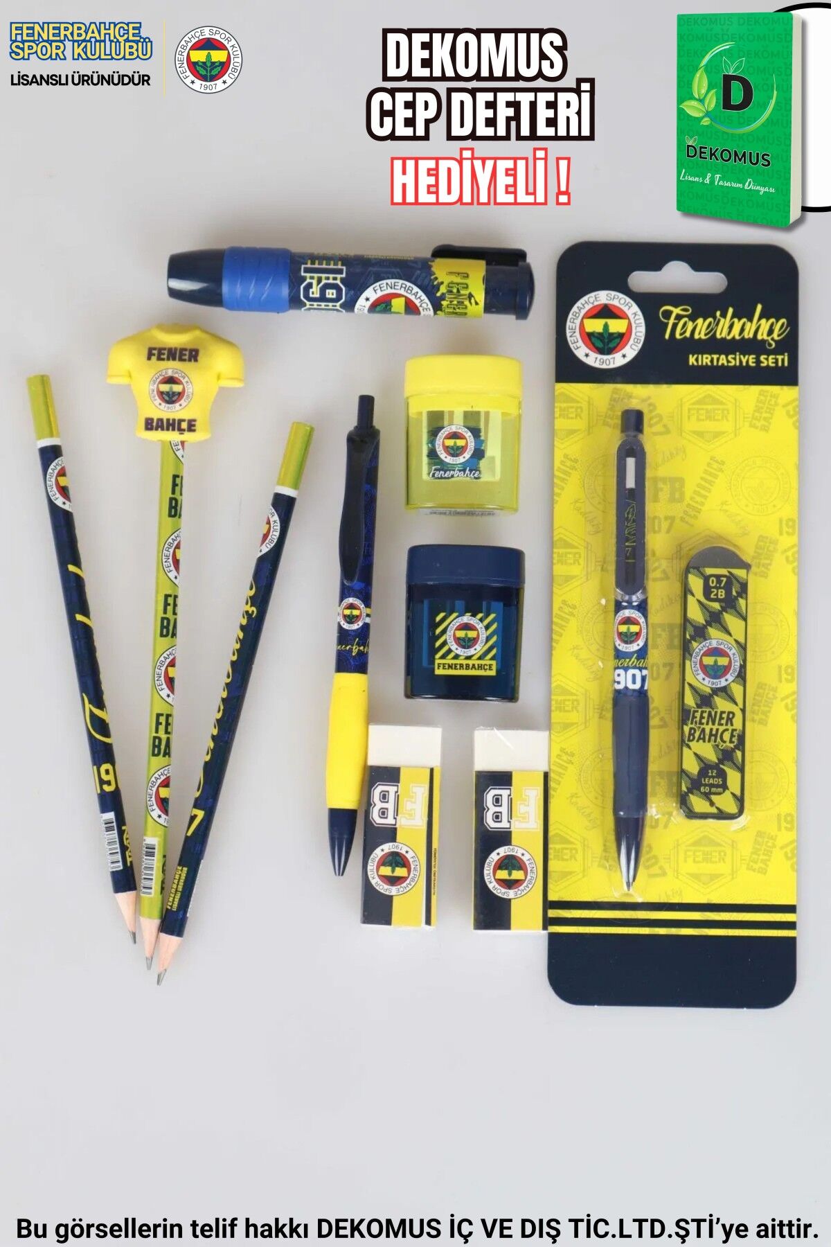 ''DEKOMUS CEP DEFTERİ HEDİYELİ'' LİSANSLI FENERBAHÇE 12 PARÇA KIRTASİYE SETİ SİLGİ TEPELİ KURŞUN KALEM,VERSATİL UÇLU KALEM