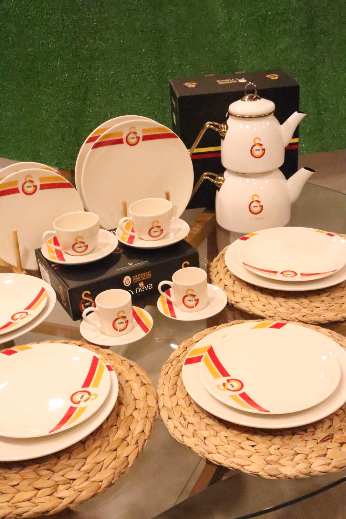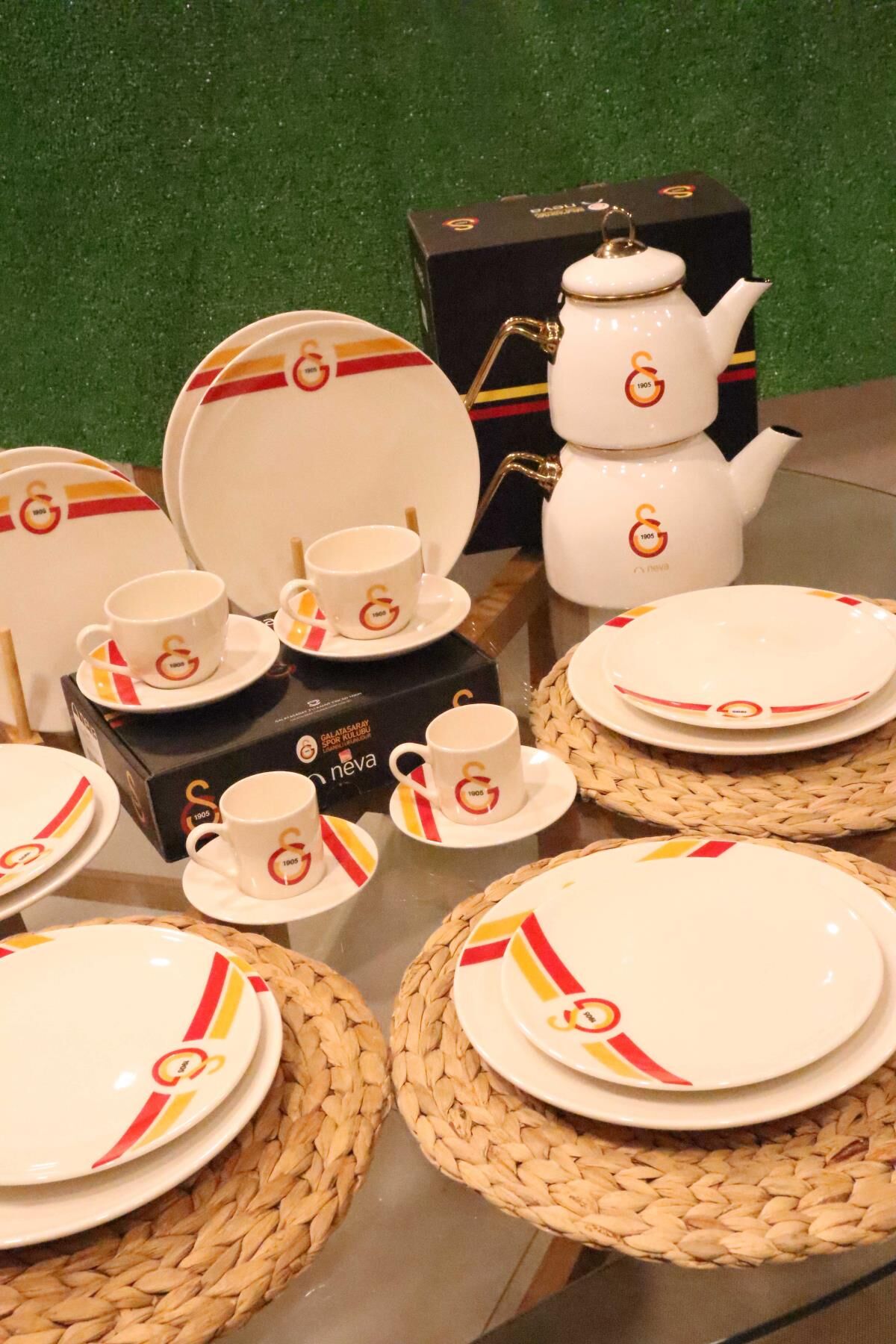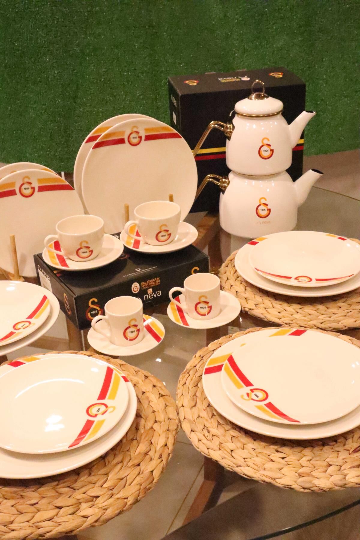 DEKOMUS Galatasaraylı taraftarlarımızın yanında! Galatasaraylı taraftarlarımız için özel olarak hazırlanan bu yemek takımı ile masanız artık çok daha havalı :) ÜRÜN AÇIKLAMASI : Çaydanlık : Emaye pürüzsüz yüzeyi sayesinde içeceklerin daha lezzetli ve sağlıklı olmasını sağlar. Tüm ısıtıcılarda, alevli ocaklarda, indüksiyon ocaklarda ve fırında güvenle kullanılabilir.Suluk ve demlik 1. kalite emayedir.Parlaklığını koruyan dış yüzeye sahiptir.Ergonomiktir.Malzeme: Suluk ve Demlik Emaye. Dolum kapasitesi:Demlik 1100 ml , Suluk 2100 ml Çay fincan takımı : 6 kişilik olup porselenden üretilmiştir. Fincanlar 192 cc'dır.Parça Sayısı: 6'li çay fincanı Malzeme:Porselen.Fırın ve mikrodalga fırın kullanımına uygundur.6 kişilik kahve fincan takımı : Porselenden üretilmiştir. Kahve fincanları 100 cc'dır.Parça Sayısı: 6'li kahve fincanı Malzeme:Porselen 1 adet çaydanlık,6'li çay fincan takımı ve 6'li Kahve Fincan takımı gönderilecektir.Tüm ürünler Bulaşık makinesinde yıkanabilir. GALATASARAY STORE olarak sattığımız tüm ürünler orjinal ve lisanslıdır.Sağlığa zararlı kimyasal madde kullanılmamıştır.Çaydanlık, çay fincanı ve kahve fincanları karışık gönderilecek olup istediğiniz bir model varsa sipariş sonrasında bizlere iletebilirsiniz
