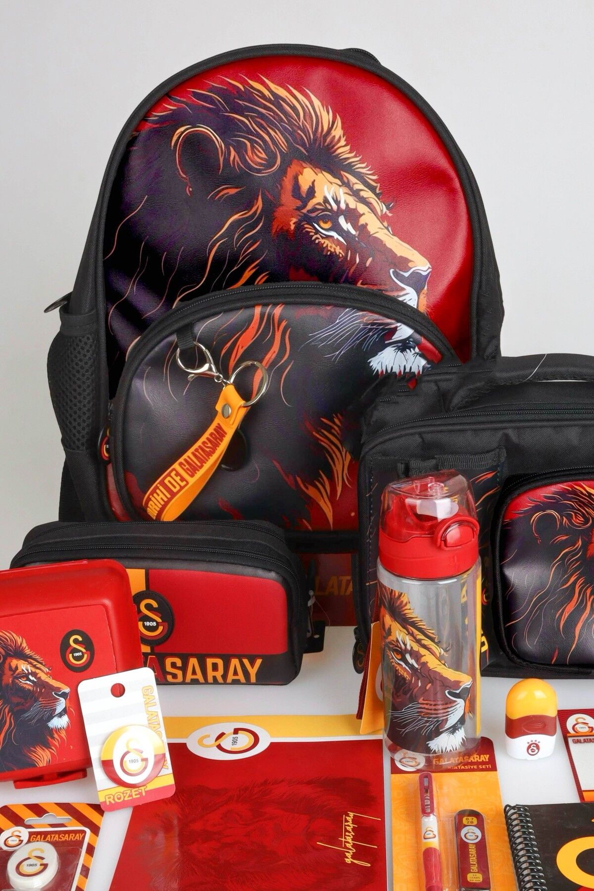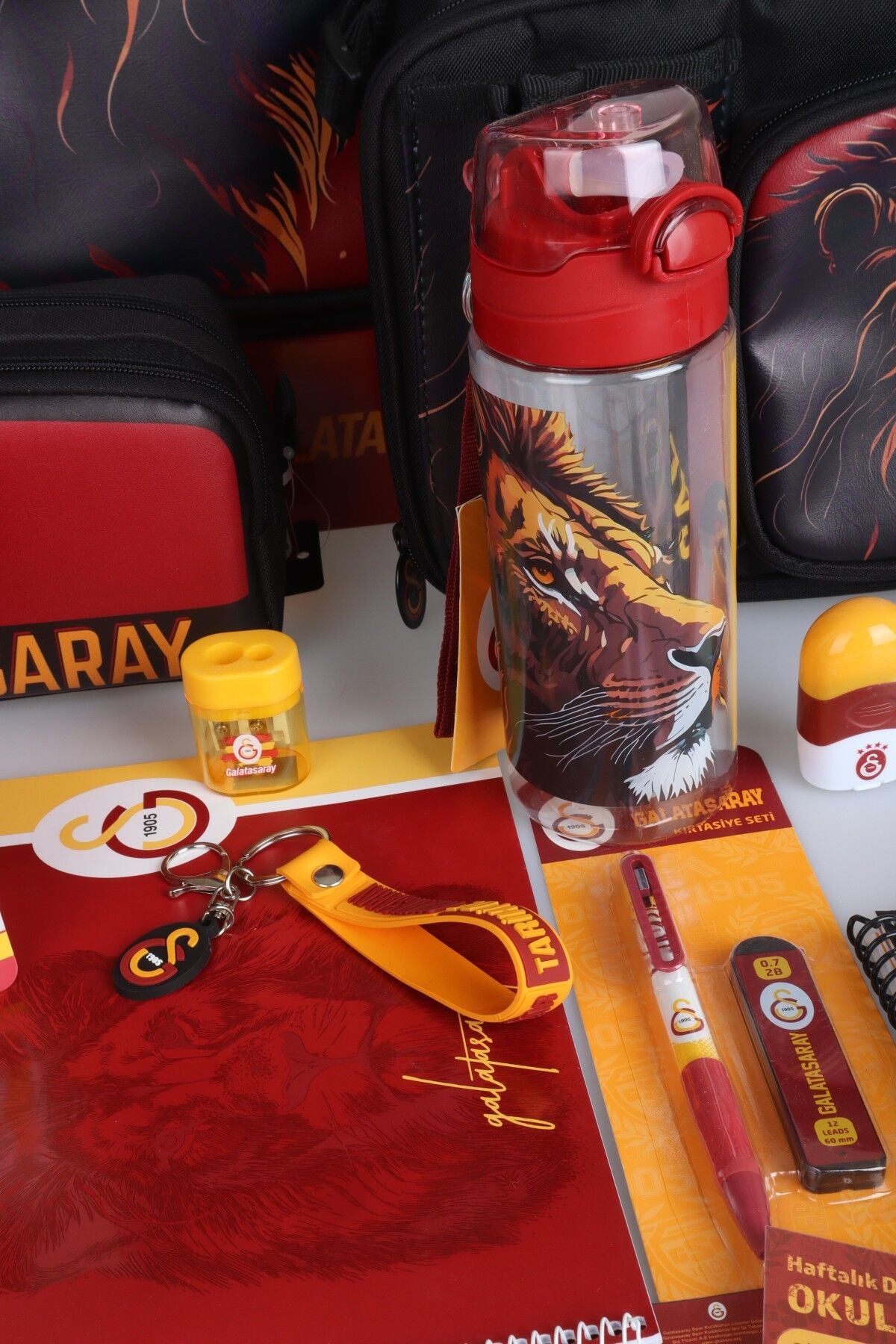 DEKOMUS İLE LİSANSLI GALATASARAY FULL KIRTASİYE SETİ KÜÇÜK BOY 32 CM ANAOKUL ÇANTASI,500 ML MATARA VE BESLENME KABI SETİ