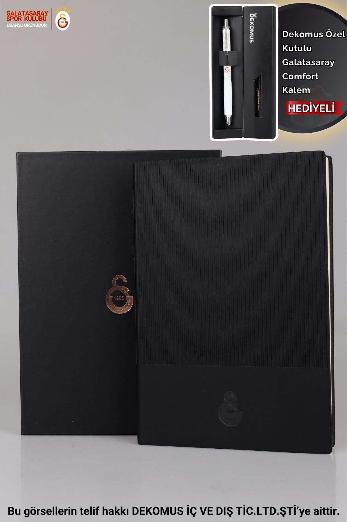 DEKOMUS İLE LİSANSLI GALATASARAY KUTULU SERT KAPAK DERİ AJANDA VE ÖZEL KUTULU HYBRID TÜKENMEZ KALEM SETİ