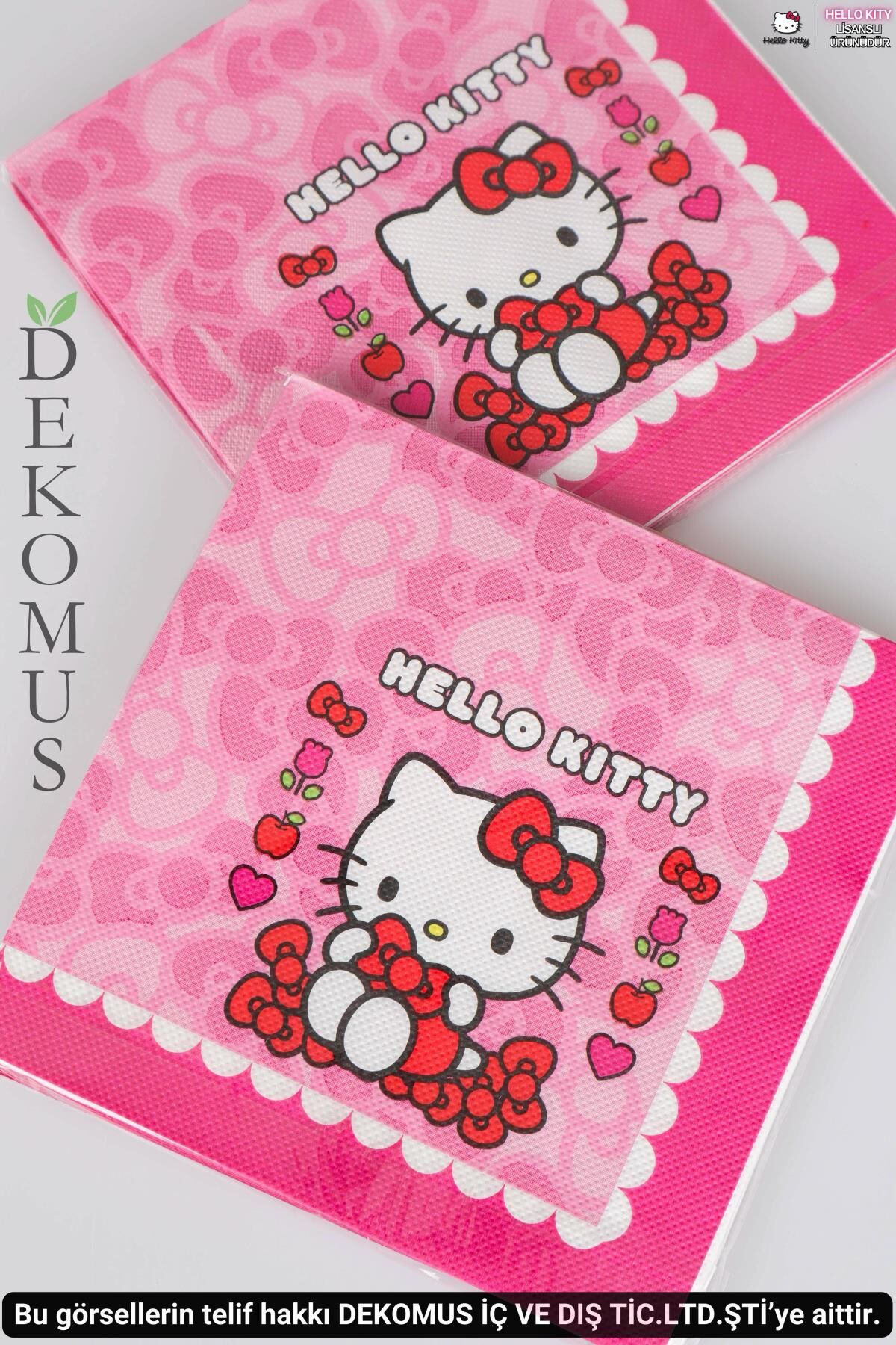 DEKOMUS Hello kitty sevenlerin yanında ! Peçete Çift katlı olup 1 pakette 12 adet peçete vardır . 33 cm x 33 cm SAF SELÜLOZ MALZEMEDEN ÜRETİLMİŞTİR.