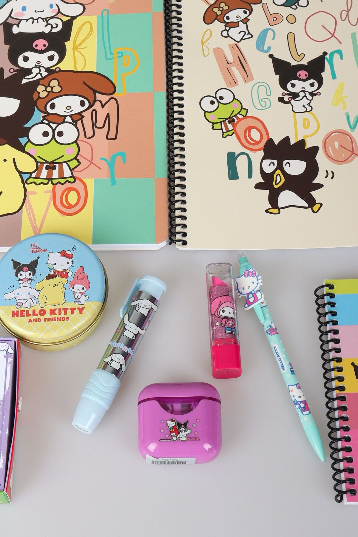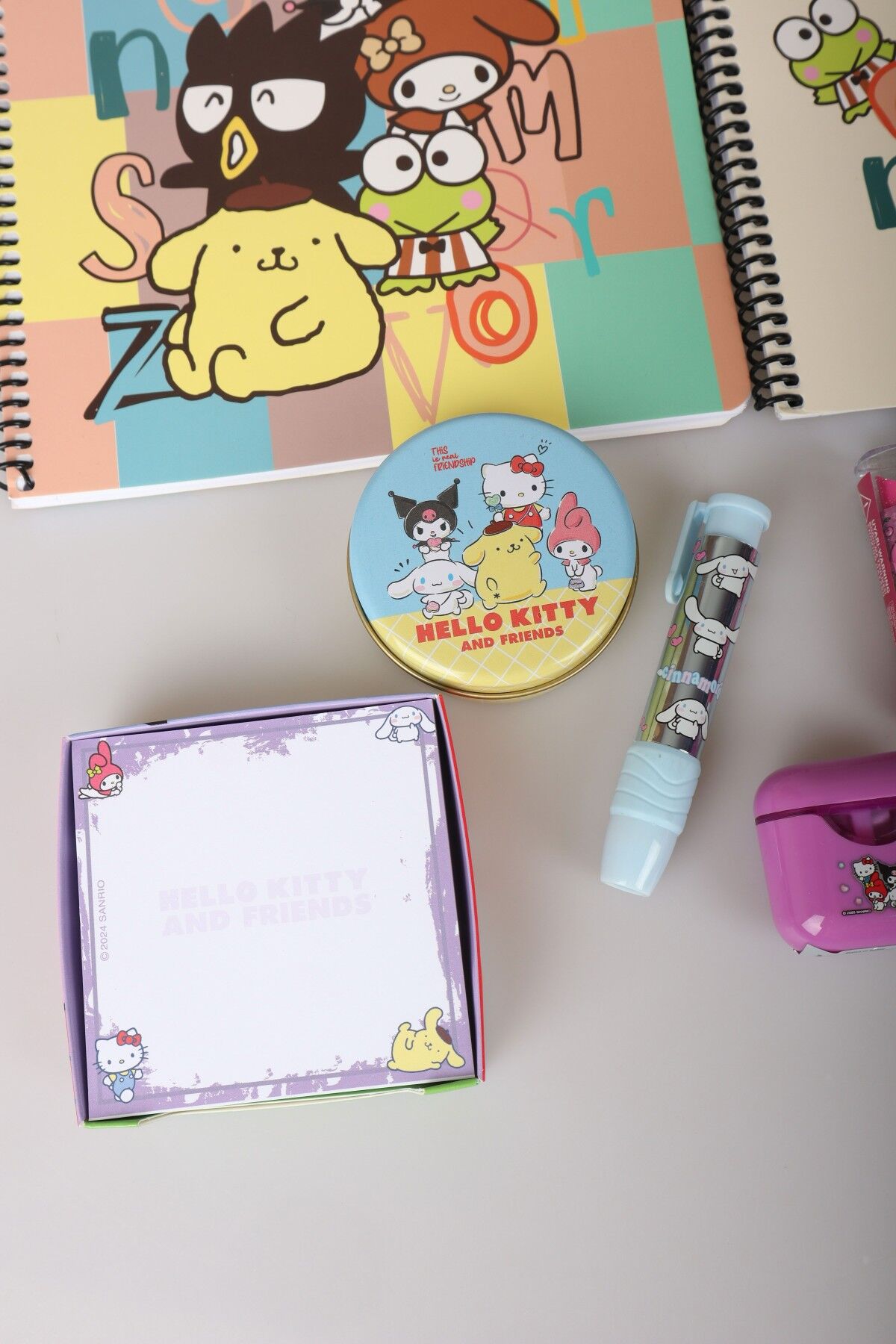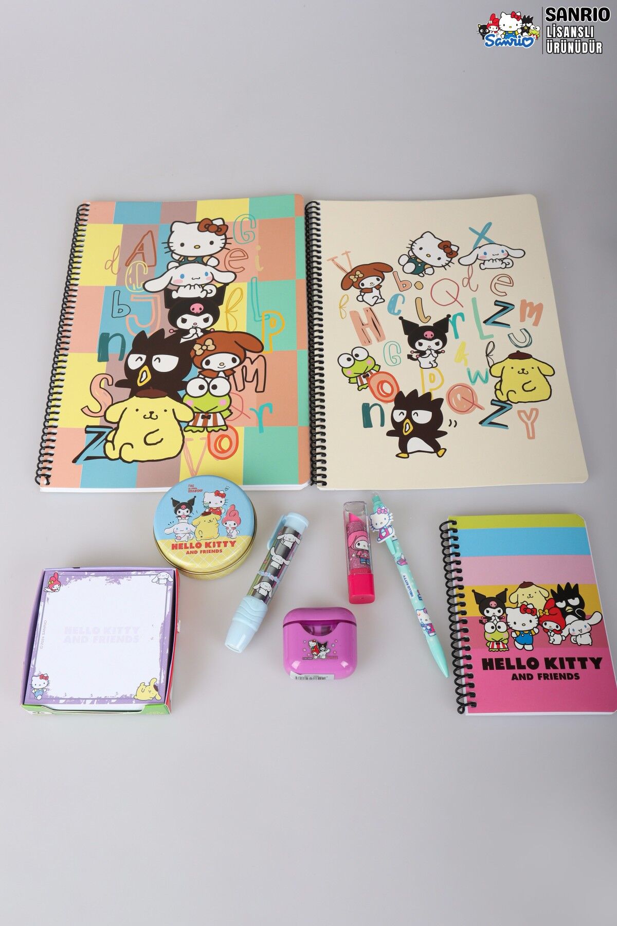 DEKOMUS İLE LİSANSLI HELLO KITTY AND BEST FRIENDS KUROMI,CINNAMOROL,MY MELODY KIRTASİYE SETİ 9 PARÇA