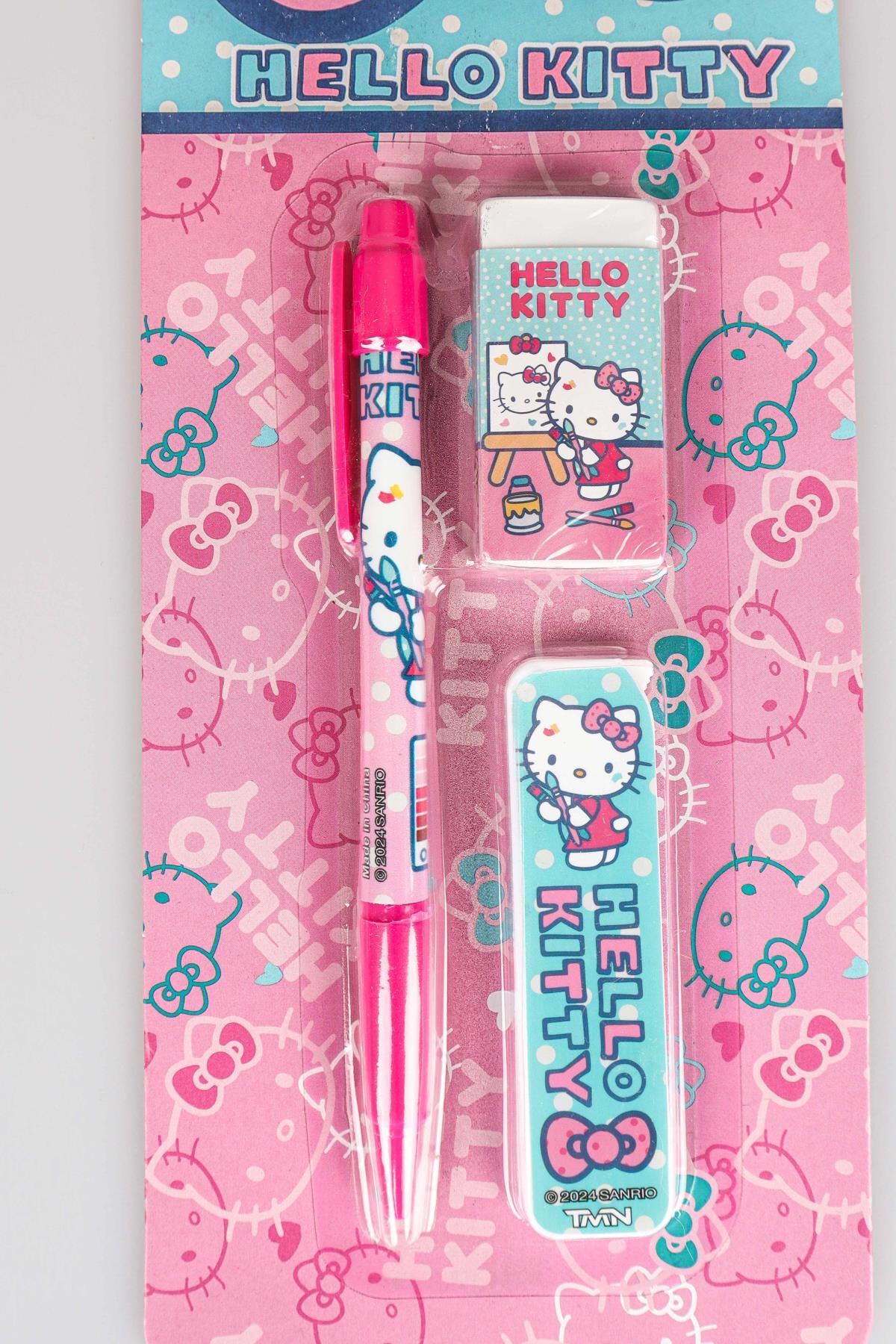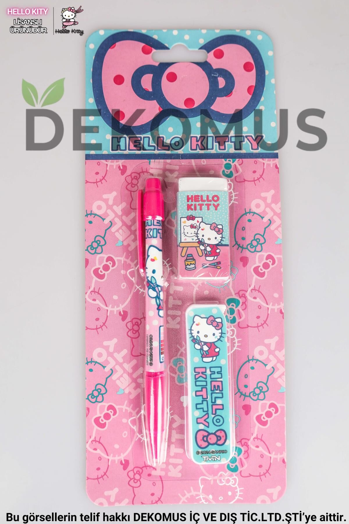 DEKOMUS HELLO KITTY hayranlarının yanında! Not almak hiç bu kadar keyifli olmamıştı! HELLO KITTY olarak sattığımız tüm ürünler orjinal ve lisanslıdır. 1 adet versatil uçlu kalem, 1 adet 07. mm uç ve 1 adet silgi gönderilecektir .