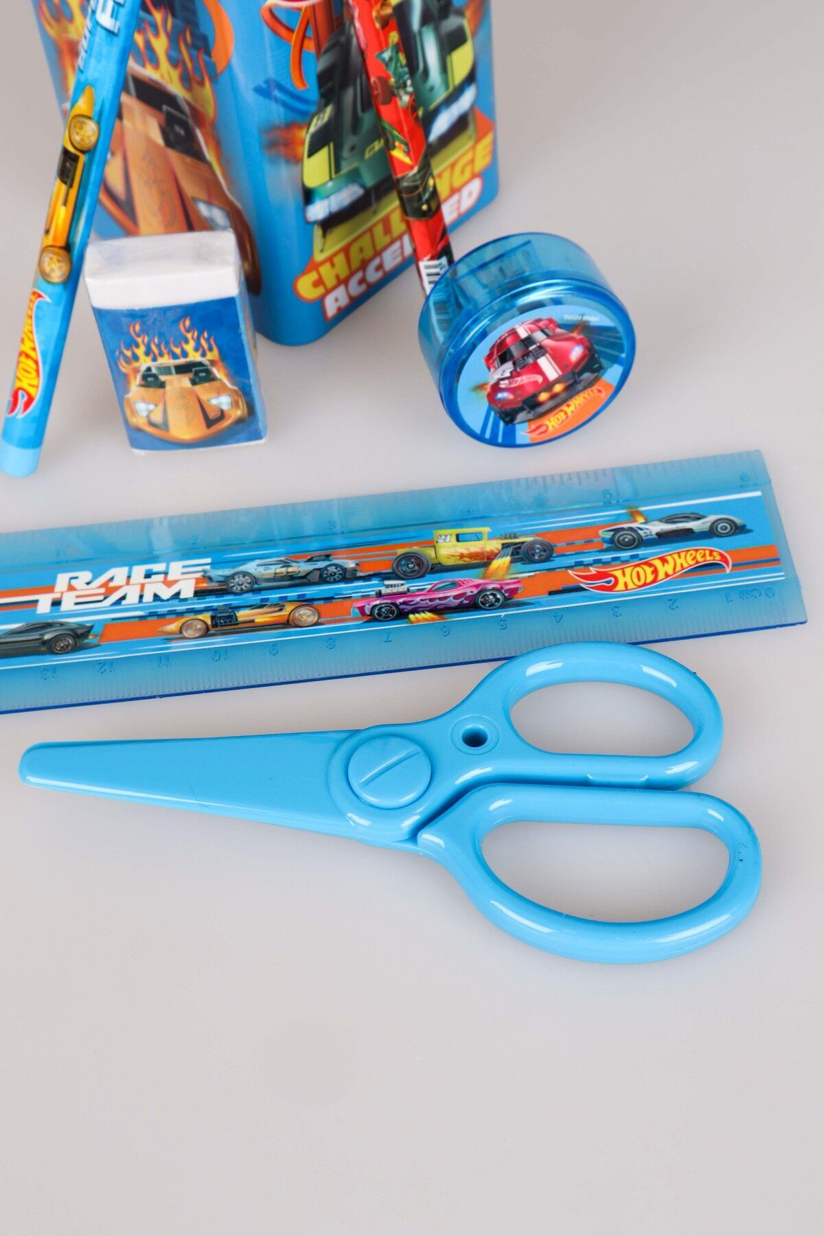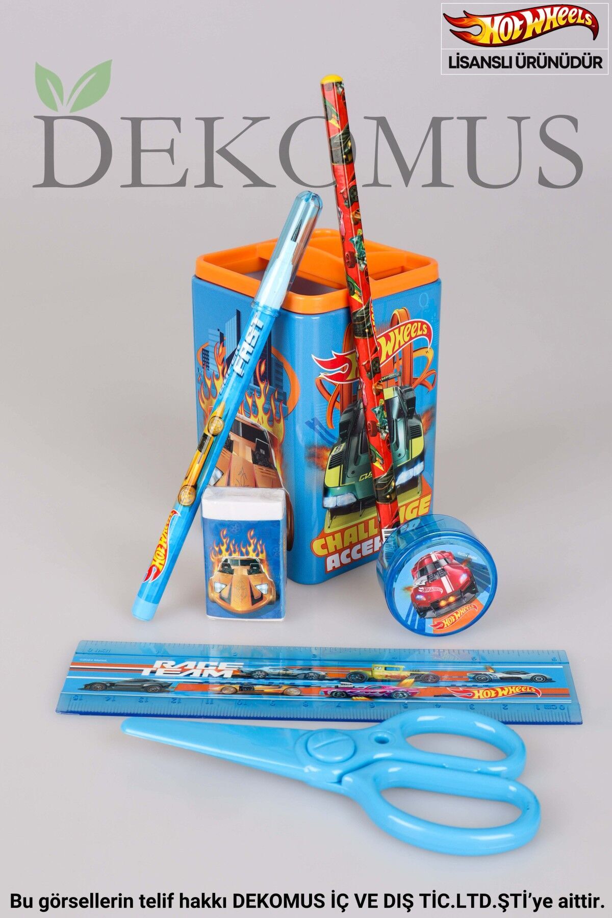 DEKOMUS HOT WHEELS seven minik hayranlarımızın yanında! HOT WHEELS seven çocuklar için özel olarak hazırlanan bu set ile fark yaratacak! SET İÇERİĞİ:1 ADET ORGANİZER,1 ADET GEÇMELİ KURŞUN KALEM,1 ADET 15 CM CETVEL,1 ADET SİLGİ VE 1 ADET MAKAS Kalemlik ölçüsü 7x7x 10 cm. Materyal:Metal HOT WHEELS olarak sattığımız tüm ürünler orjinal ve lisanslıdır.