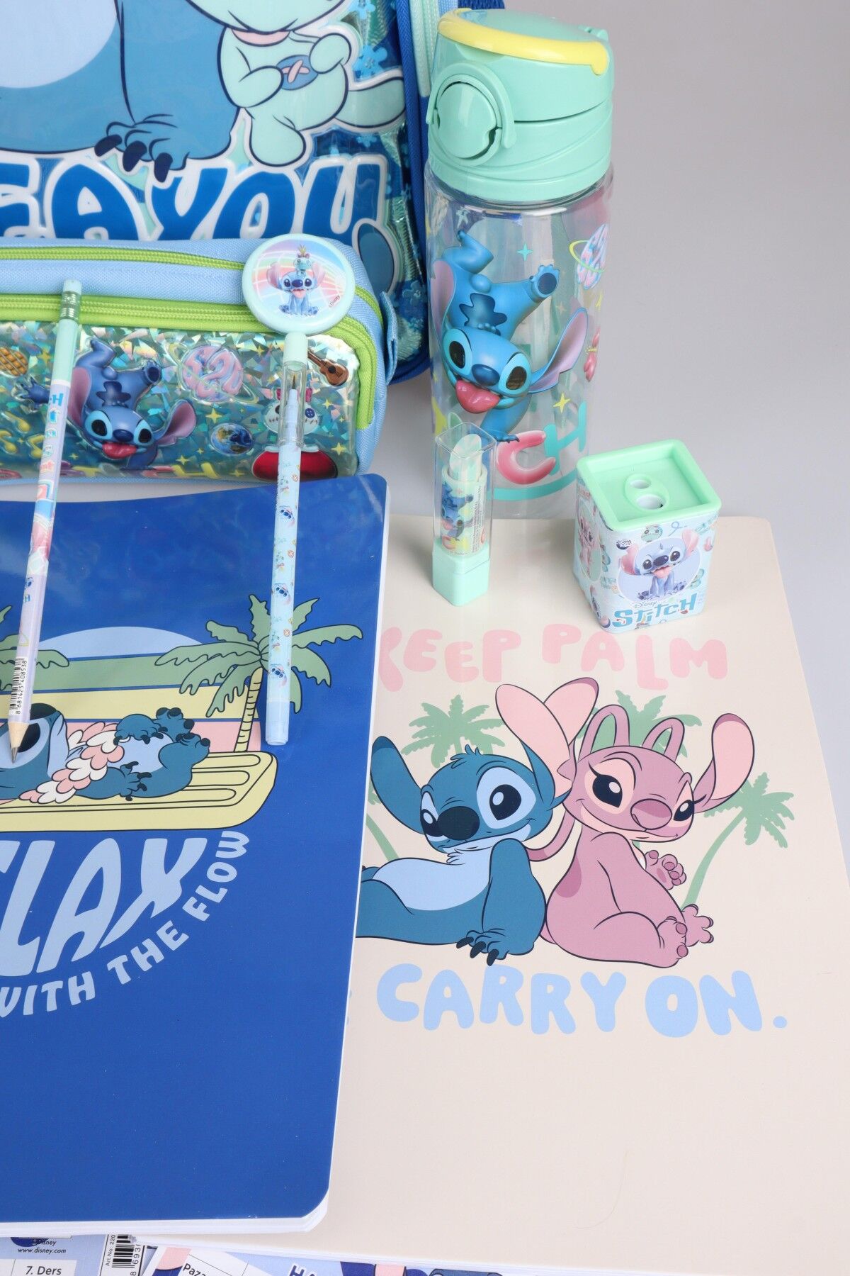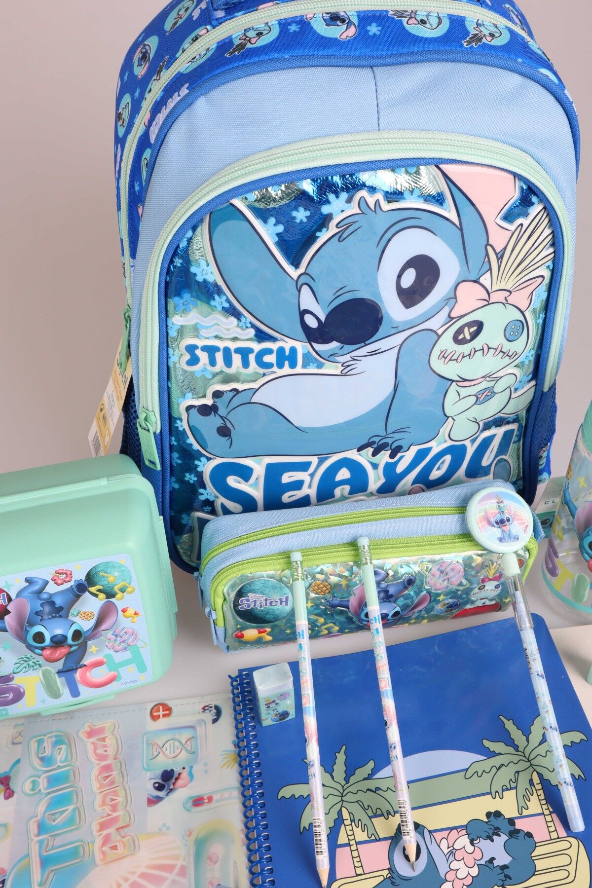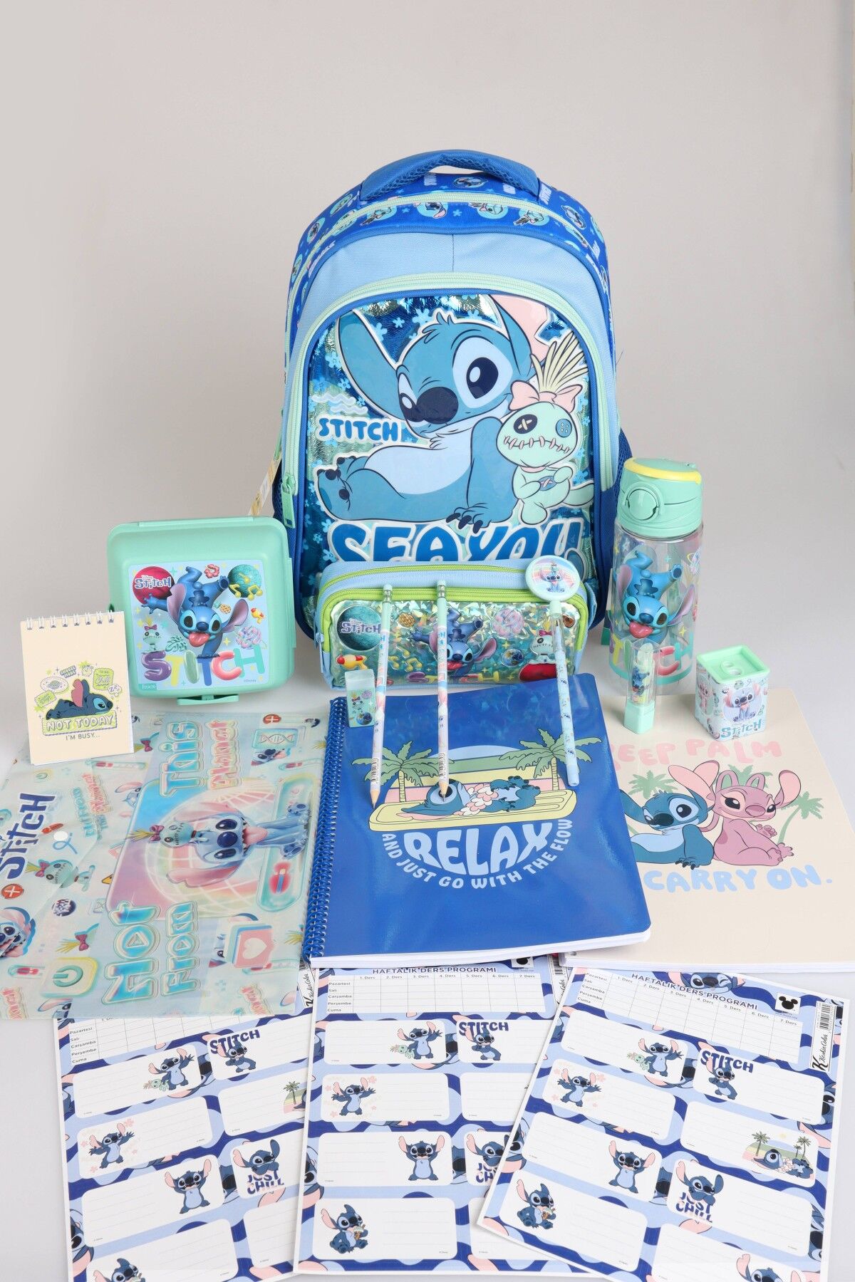 x Dekomus Lisanslı Stitch ''Iconic Blue Collection'' Kırtasiye Seti Okul Ve Kalem Çantası, 500 Ml Matara, Beslenme Kabı Seti
