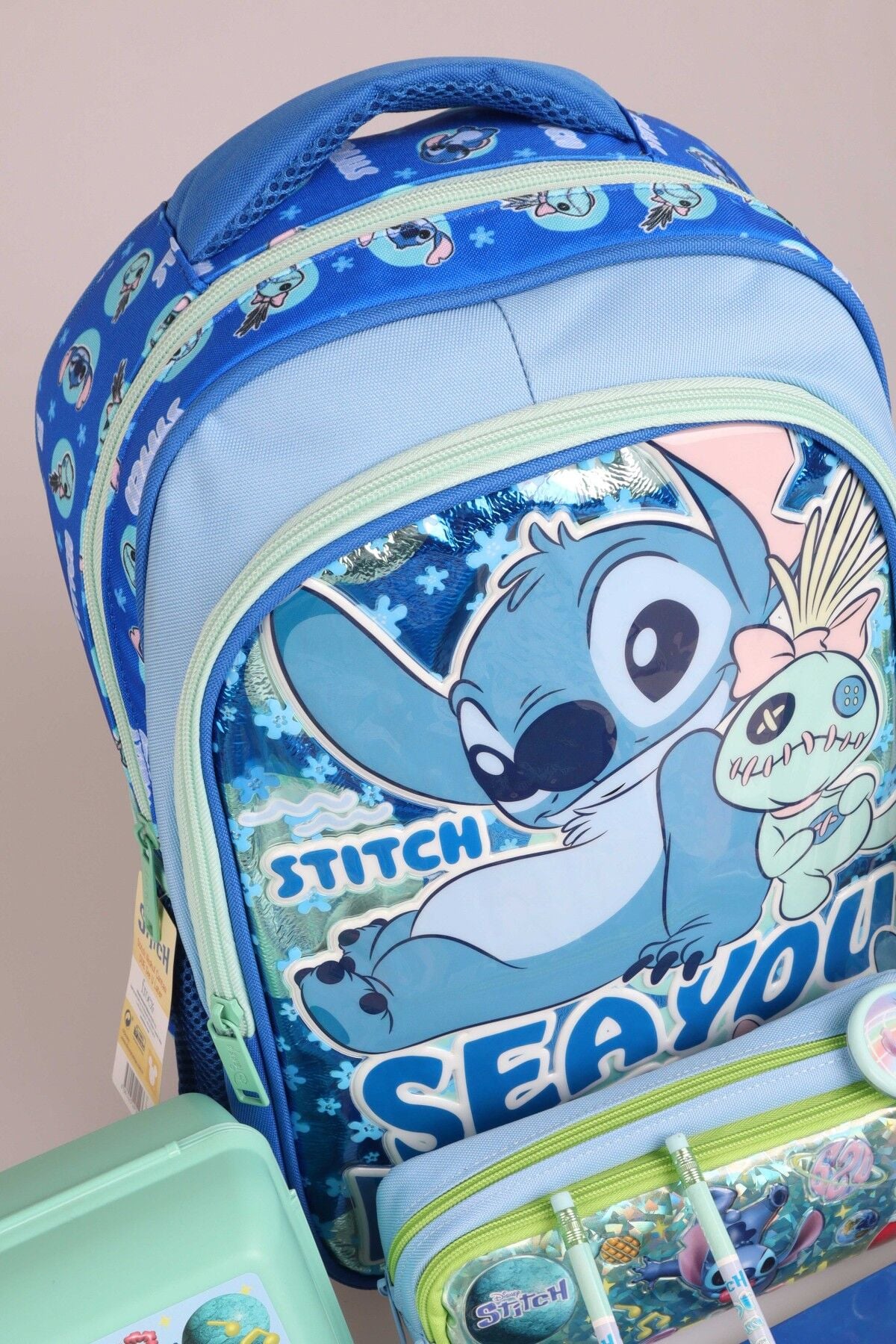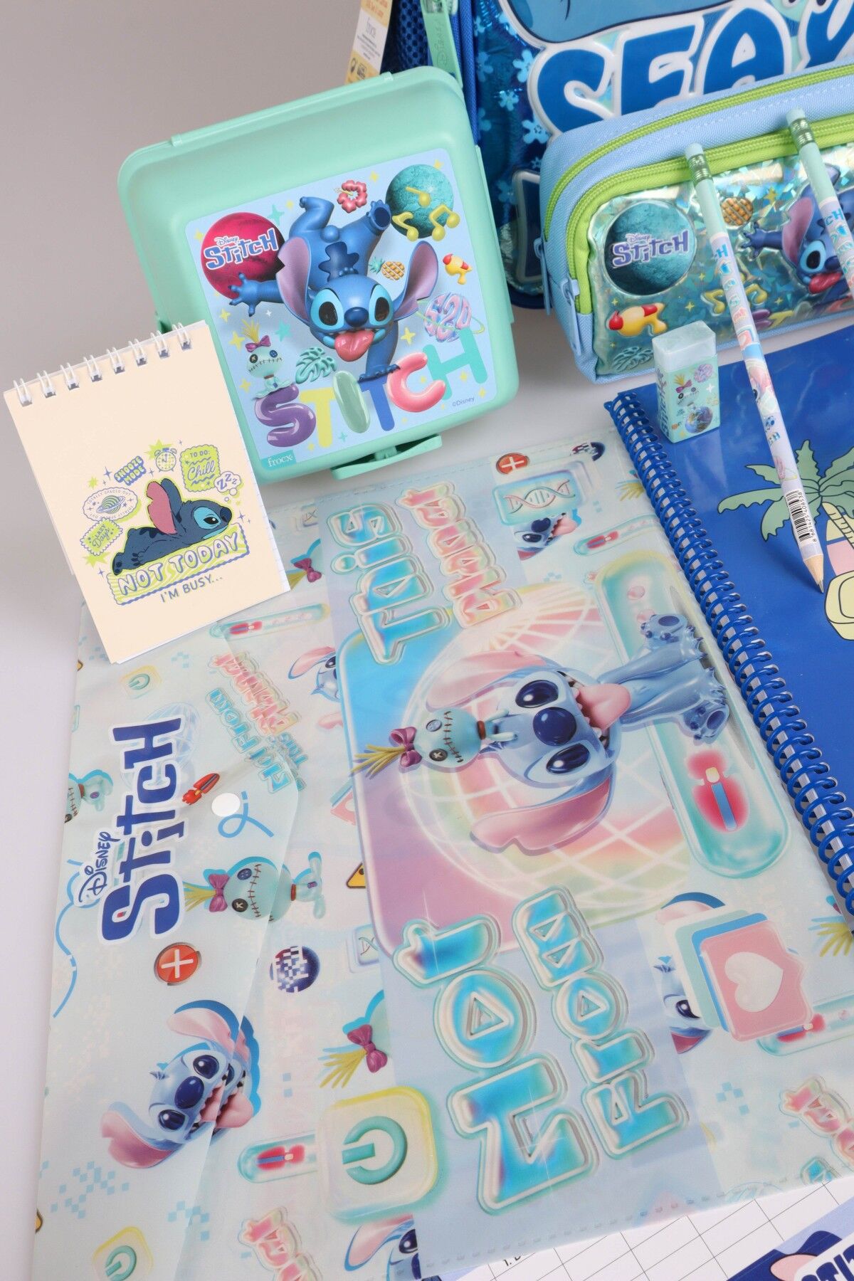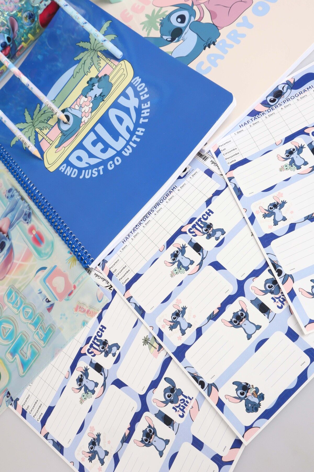 x Dekomus Lisanslı Stitch ''Iconic Blue Collection'' Kırtasiye Seti Okul Ve Kalem Çantası, 500 Ml Matara, Beslenme Kabı Seti