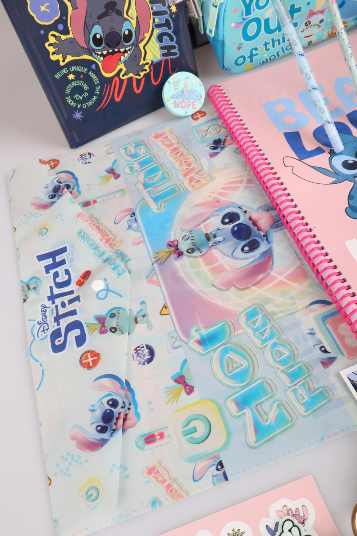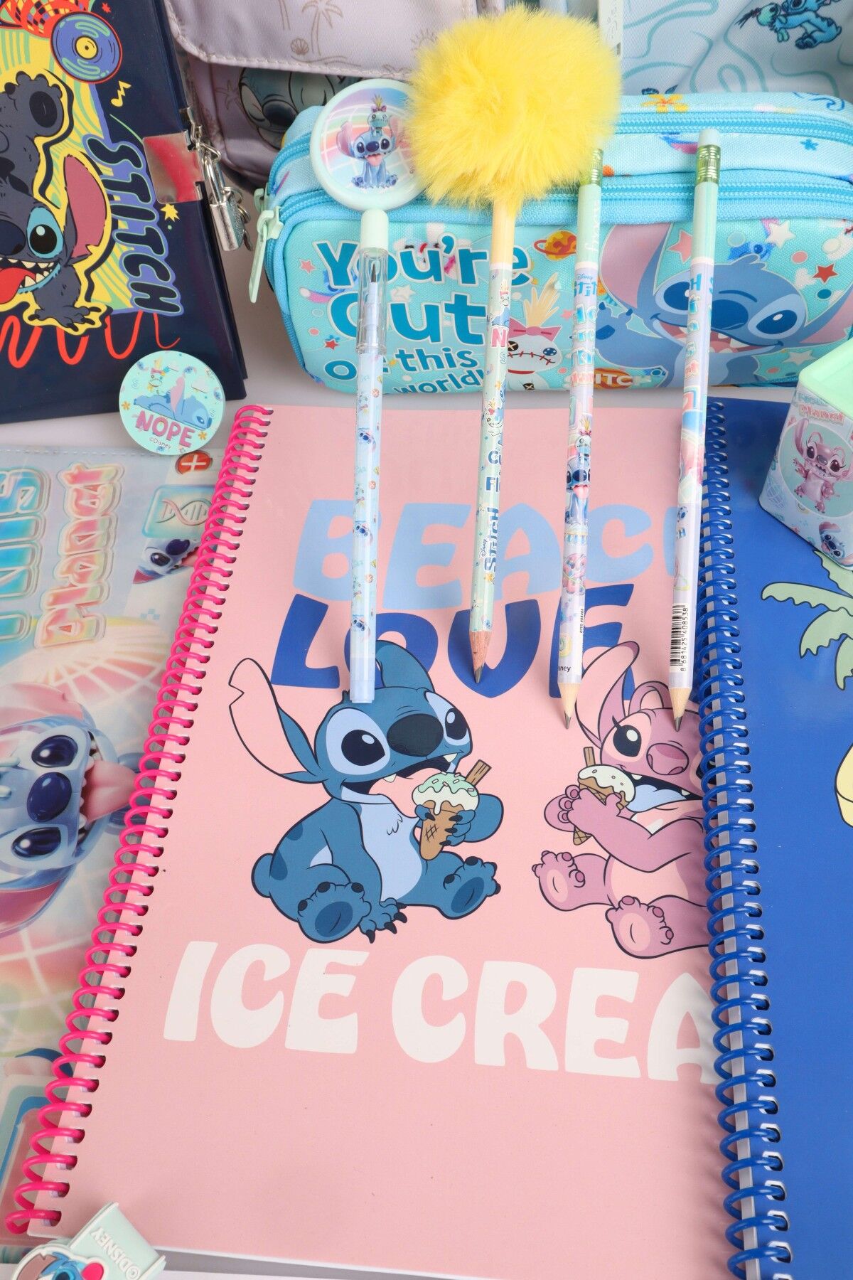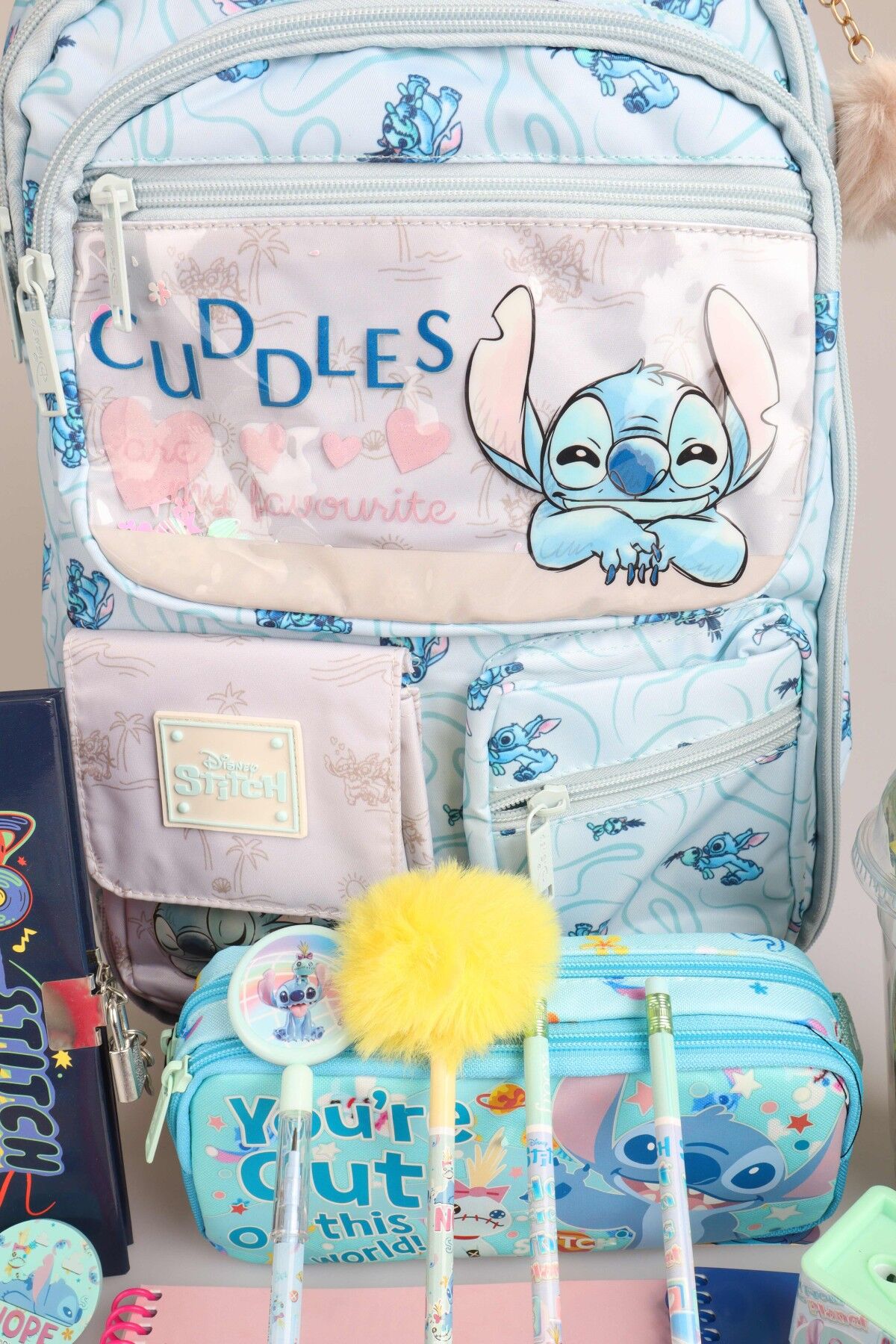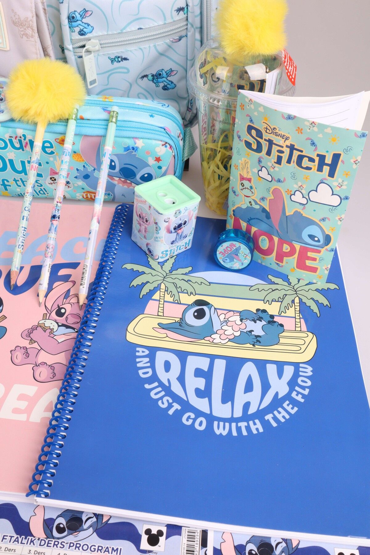 x Dekomus Lisanslı Stitch ''Urban Aloha Collection'' Okul Ve Kalem Çantası, Kilitli Hatıra Defteri, A4 Okul Defteri Kırtasiye Seti
