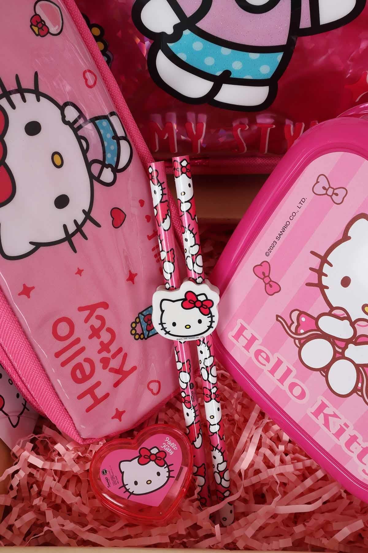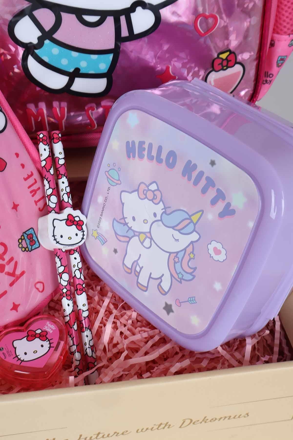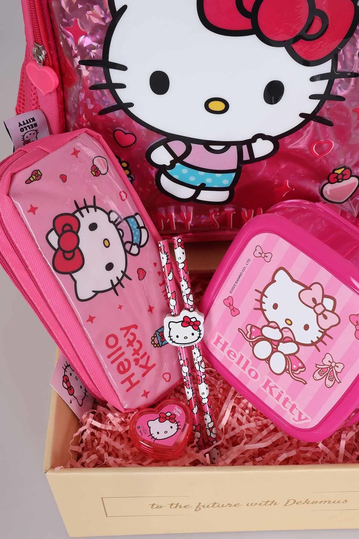 DEKOMUS HELLO KITTY hayranlarının yanında! Bu seti seveceğinize eminiz :) .1 adet okul çantası , 1 adet yemek kabı ,1 adet 2 li kurşun kalem ve silgi seti ,1 adet kalemtraş, 1 adet kalemlik gönderilecektir. HELLO KITTY olarak sattığımız tüm ürünler orjinal ve lisanslıdır.Sağlığa zararlı kimyasal madde kullanılmamıştır.NOT : BESLENME KABI KARIŞIK RENK GÖNDERİLECEK OLUP İSTEDİĞİNİZ BİR RENK VARSA SİPARİŞ SONRASINDA İLETEBİLİRSİNİZ.