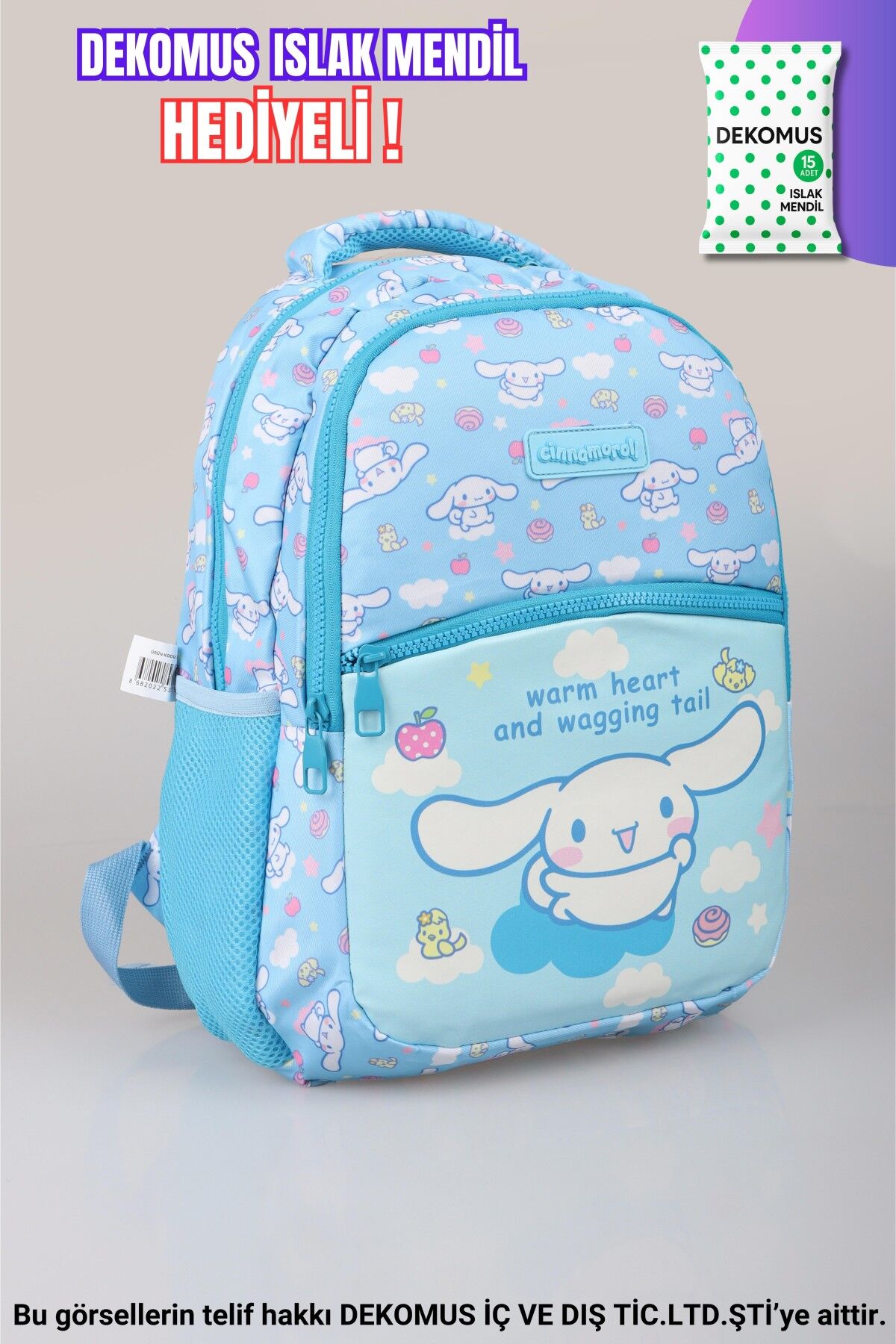 ''DEKOMUS ISLAK MENDİL HEDİYELİ'' YENİ SEZON LİSANSLI CINNAMOROL ''SKYROLL KOLEKSİYONU'' İLKOKUL ÇANTASI