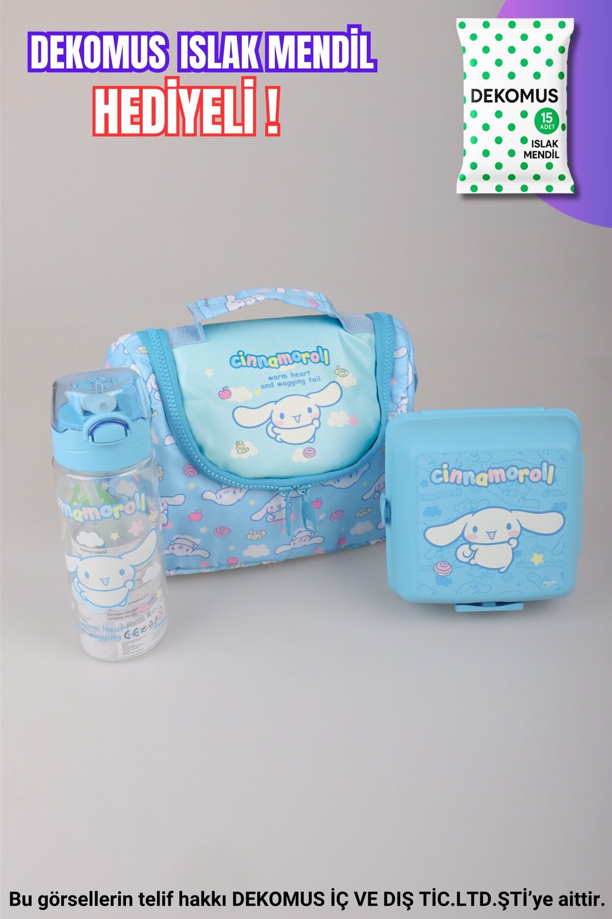 DEKOMUS İLE YENİ SEZON LİSANSLI CINNAMOROL ''SKYROLL KOLEKSİYONU'' TERMOSLU BESLENME ÇANTASI,500 ML MATARA VE 2 KATLI BESLENME KABI / LUNCH BOX ''ISLAK MENDİL HEDİYELİ''
