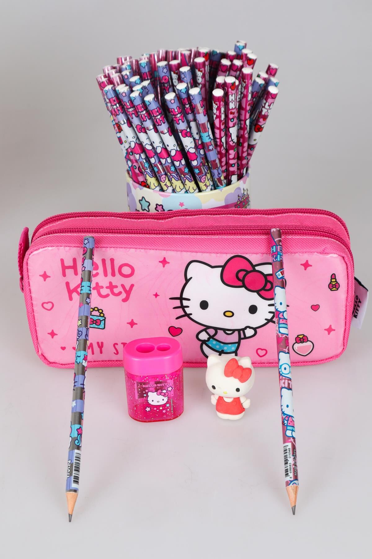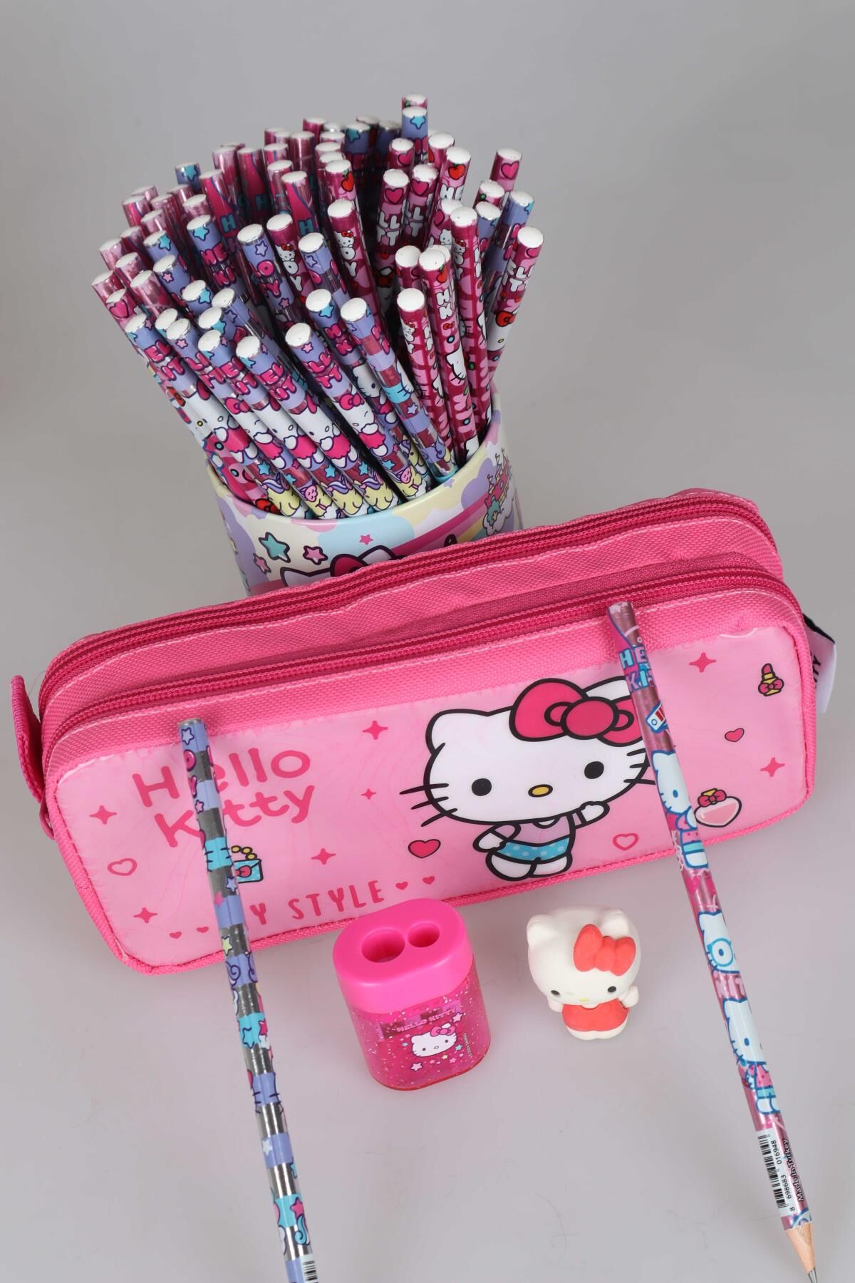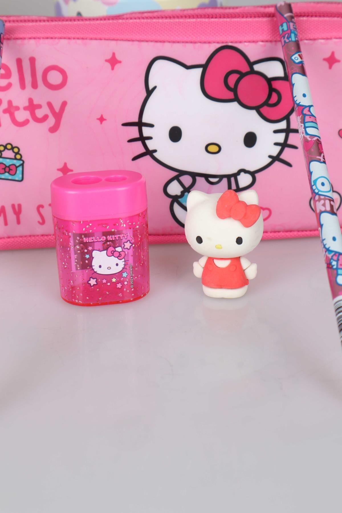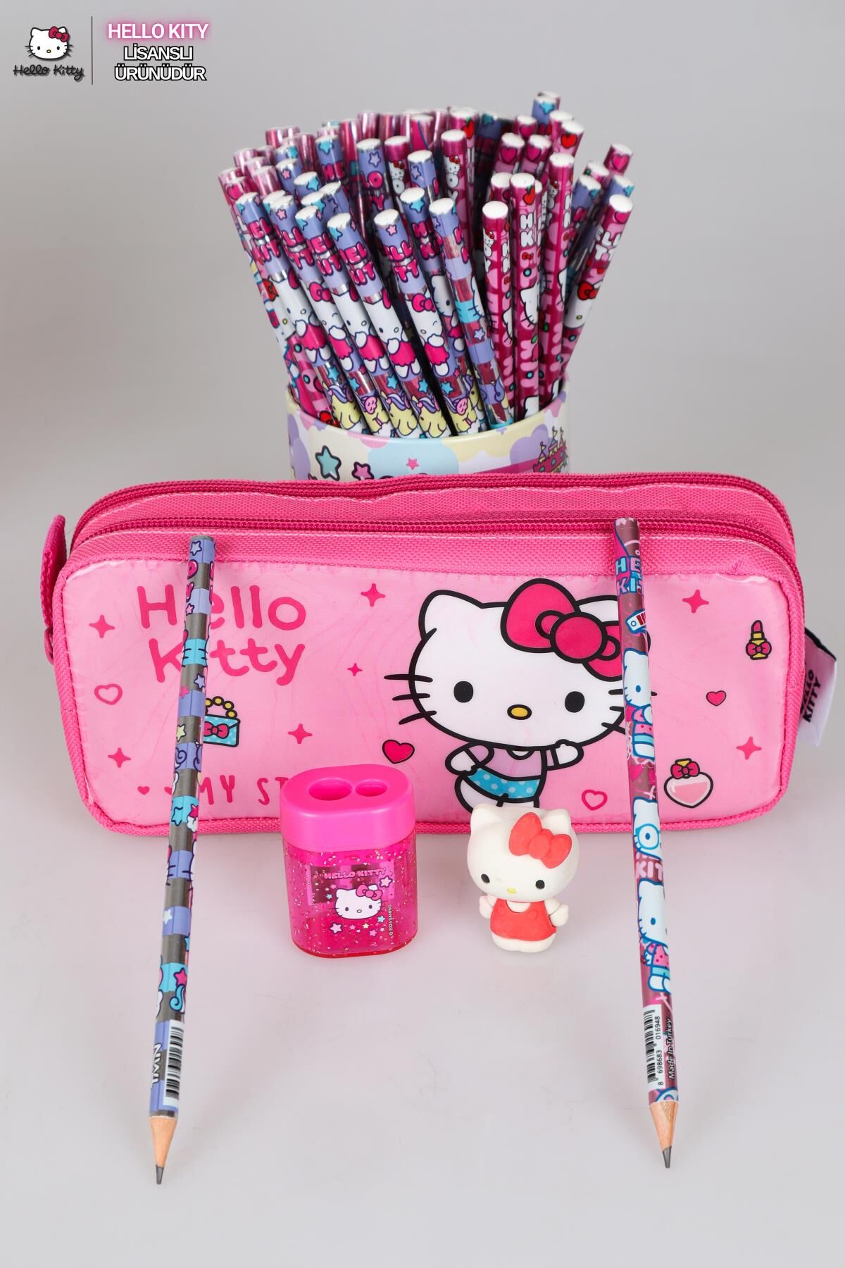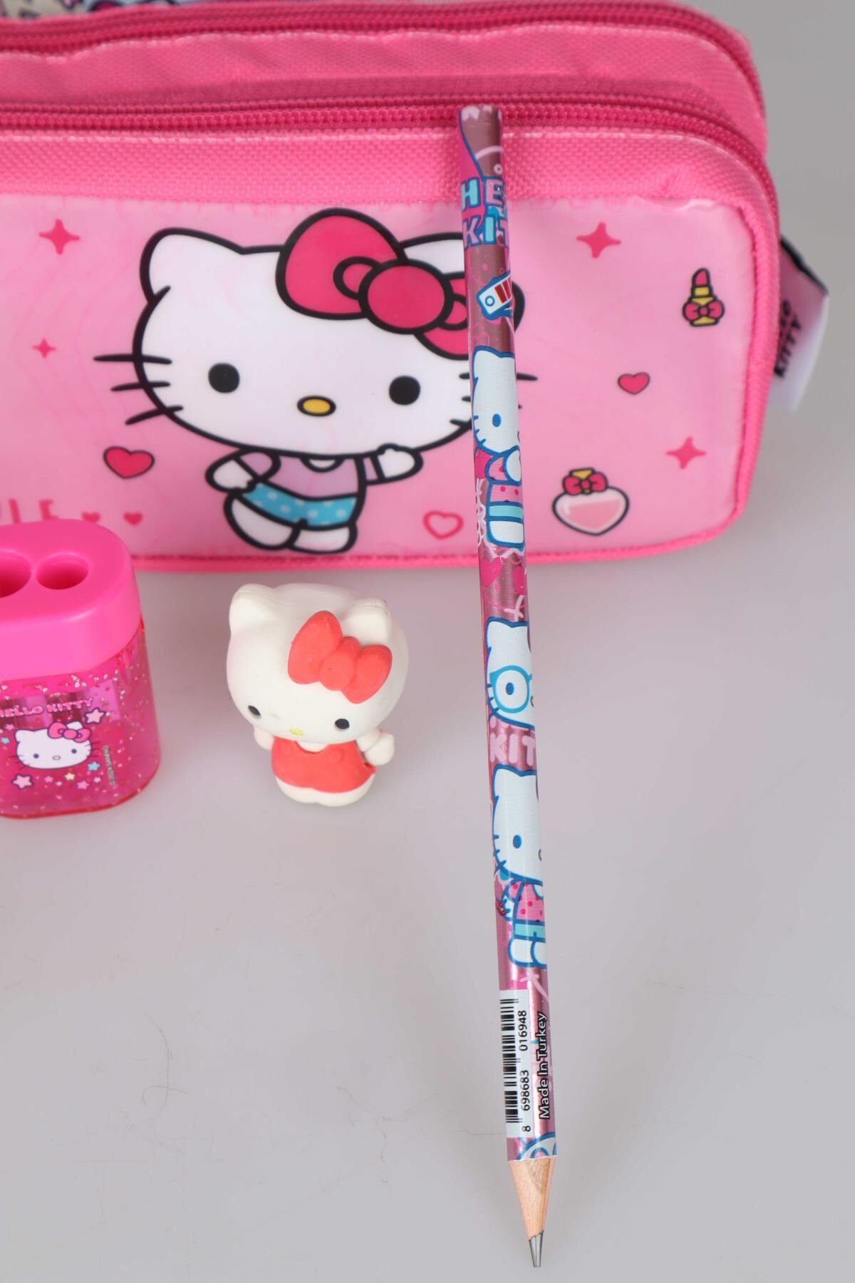 DEKOMUS İLE YENİ SEZON LİSANSLI HELLO KITTY KALEM ÇANTASI,2 ADET KURŞUN KALEM,KALEMTRAŞ VE 3D SİLGİ SETİ
