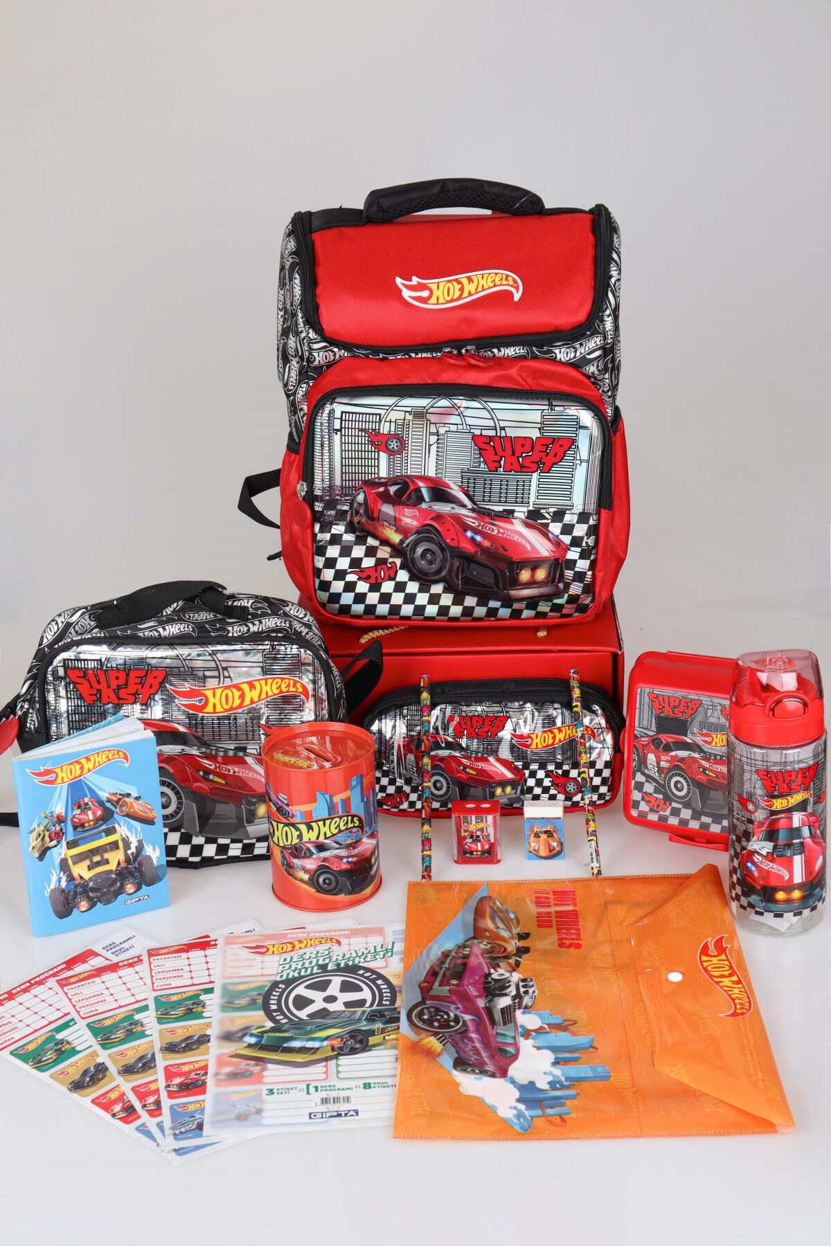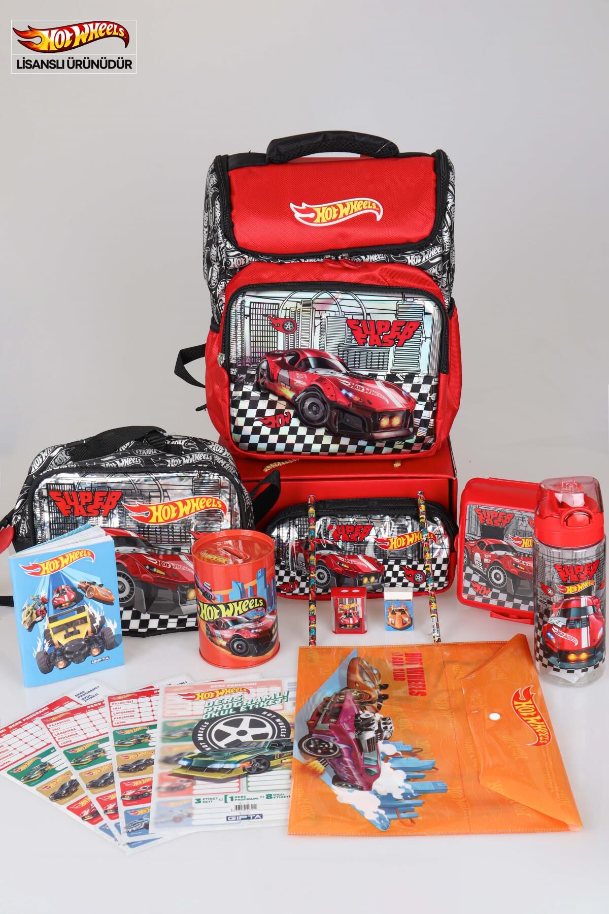 DEKOMUS İLE YENİ SEZON LİSANSLI HOT WHEELS OKUL,BESLENME,KALEM ÇANTASI İLE MATARA,BESLENME KABI VE KIRTASİYE SETİ ÇITÇIT DOSYA,KALEM,SİLGİ,KUMBARA,KALEMTRAŞ,RESİM DEFTERİ,OKUL ETİKETİ