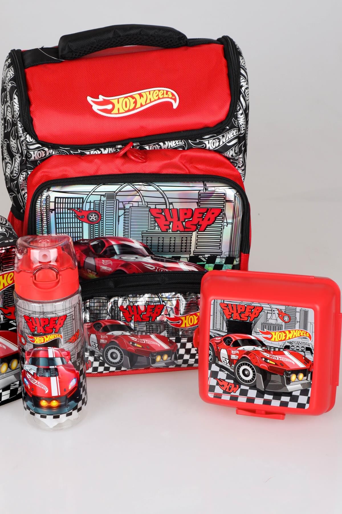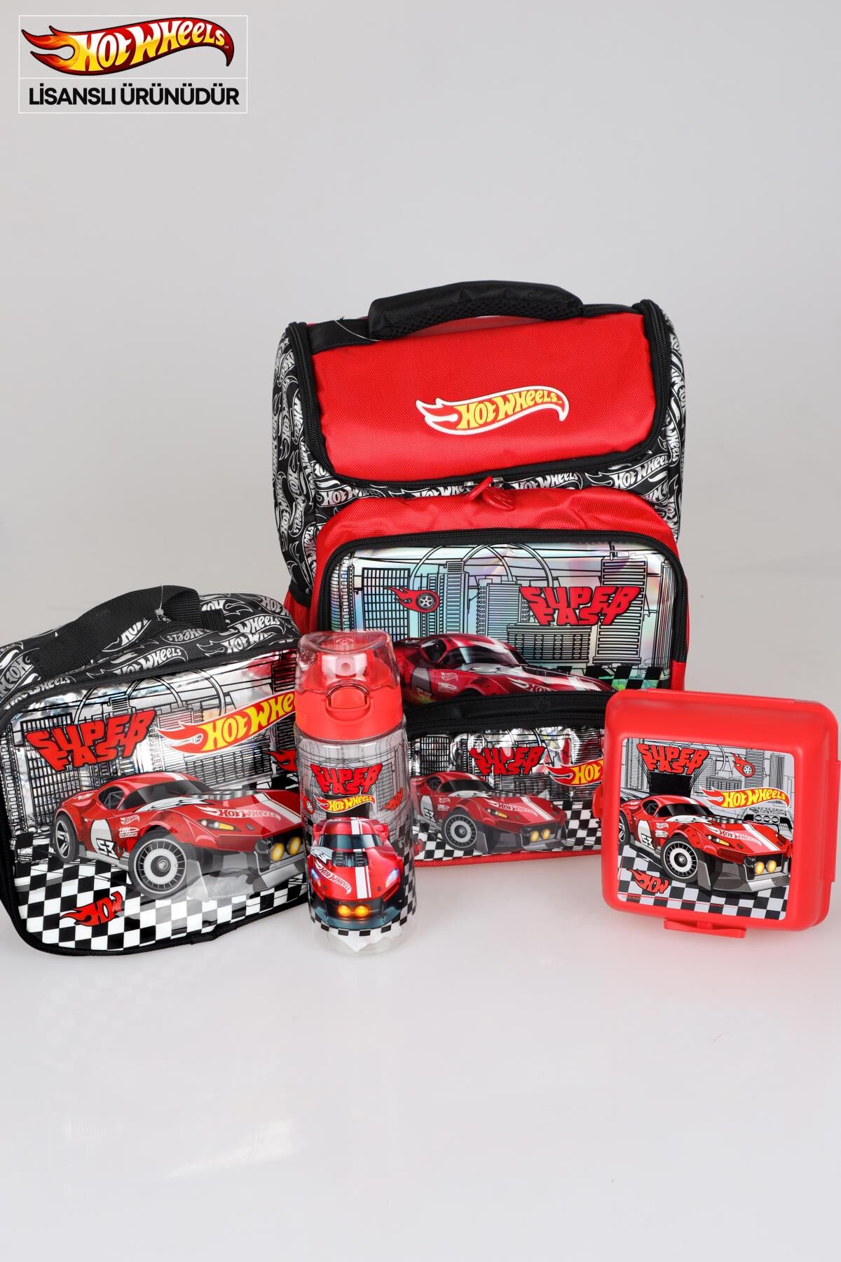 DEKOMUS İLE YENİ SEZON LİSANSLI HOT WHEELS OKUL,KALEM VE BESLENME ÇANTASI, 2 KATLI BESLENME KABI İLE 500 ML MATARA SETİ