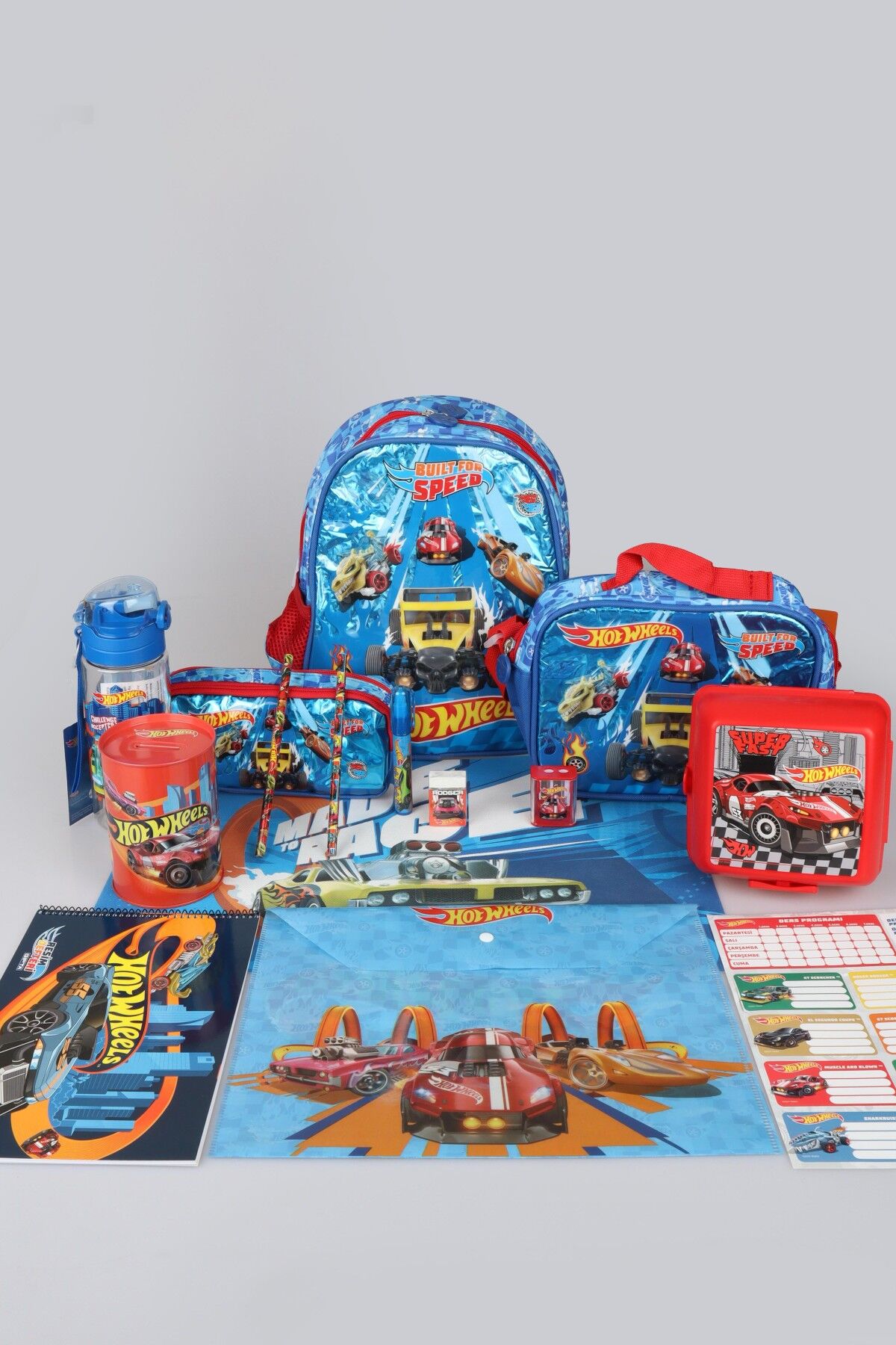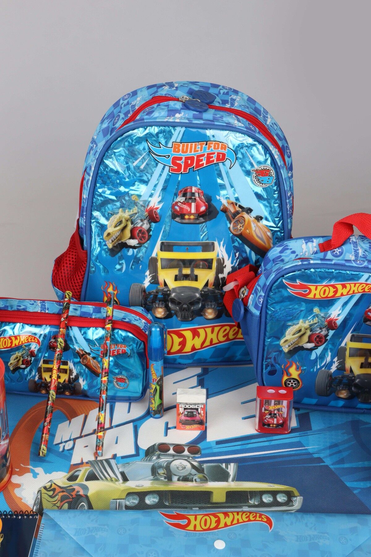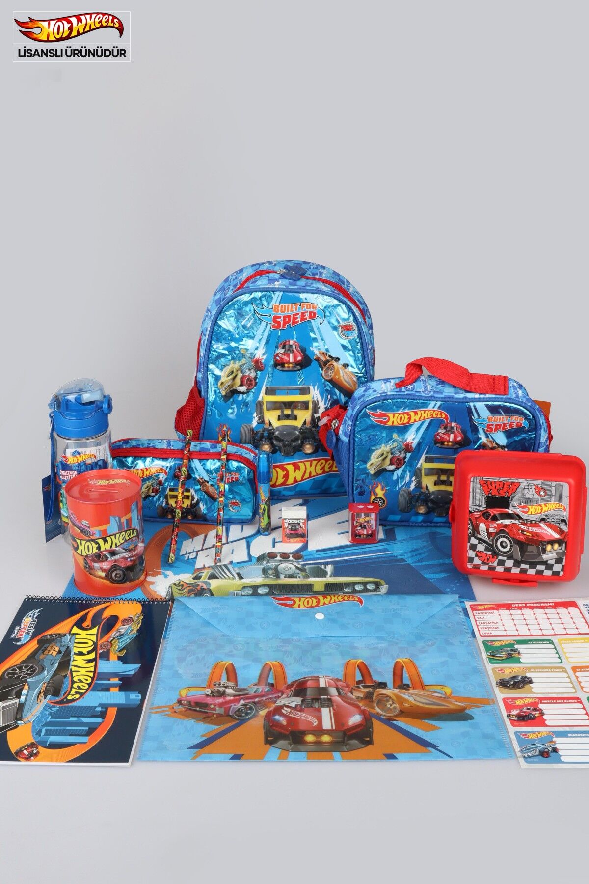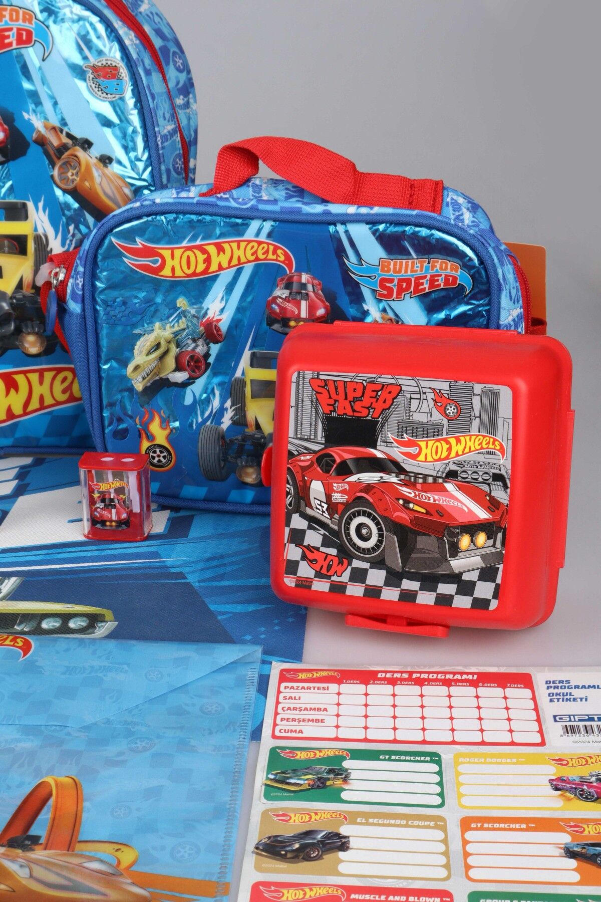 DEKOMUS İLE YENİ SEZON LİSANSLI HOT WHEELS TEK BÖLMELİ 32 CM KÜÇÜK BOY ANAOKUL,BESLENME,KALEM ÇANTASI İLE MATARA,BESLENME KABI VE KIRTASİYE SETİ ÇITÇIT DOSYA,KALEM,SİLGİ,KUMBARA,KALEMTRAŞ,RESİM DEFTERİ,OKUL ETİKETİ