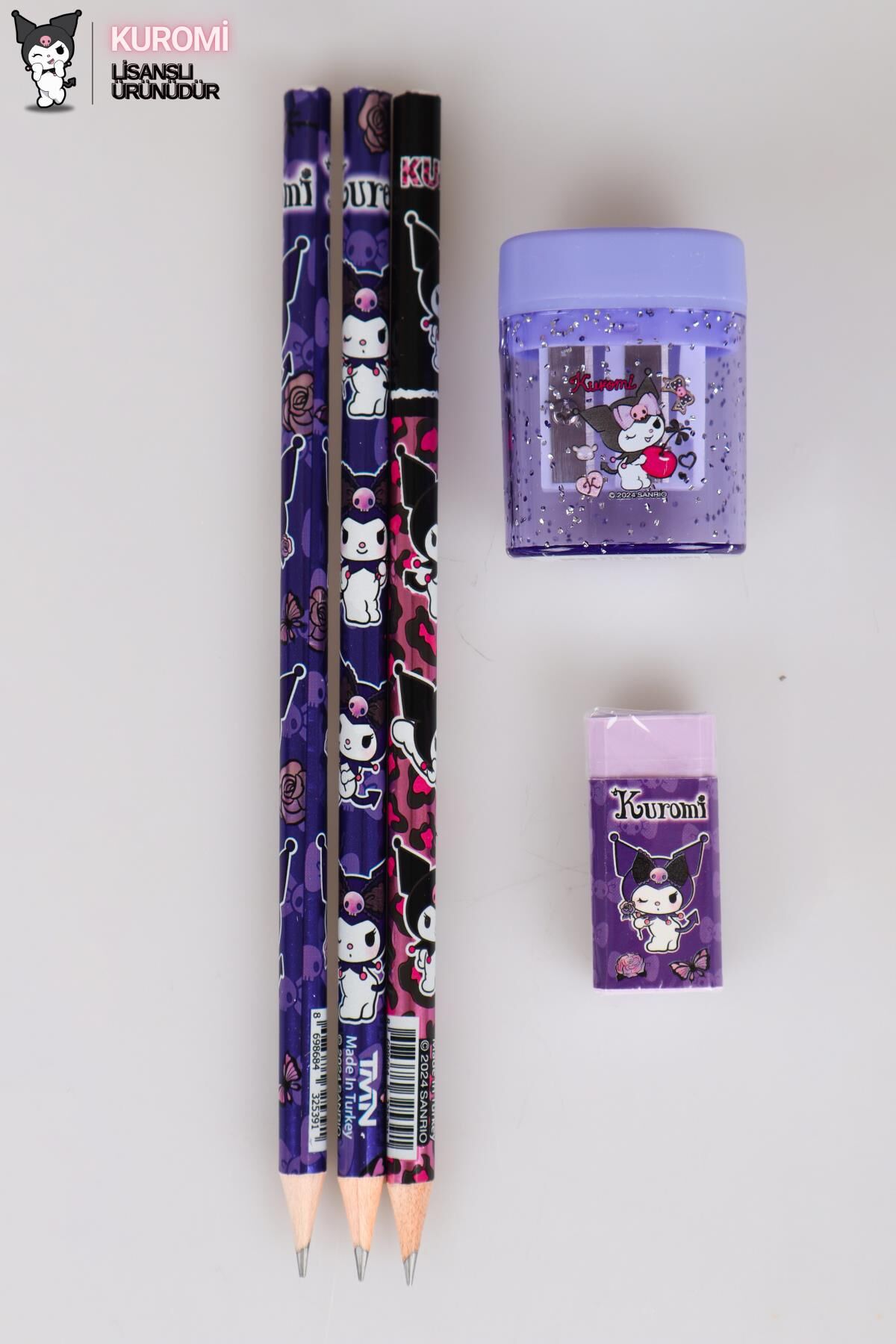 DEKOMUS İLE YENİ SEZON LİSANSLI KUROMİ 3 ADET KURŞUN KALEM, ŞEKİLLİ KALEMTRAŞ VE SİLGİKIRTASİYE SETİ