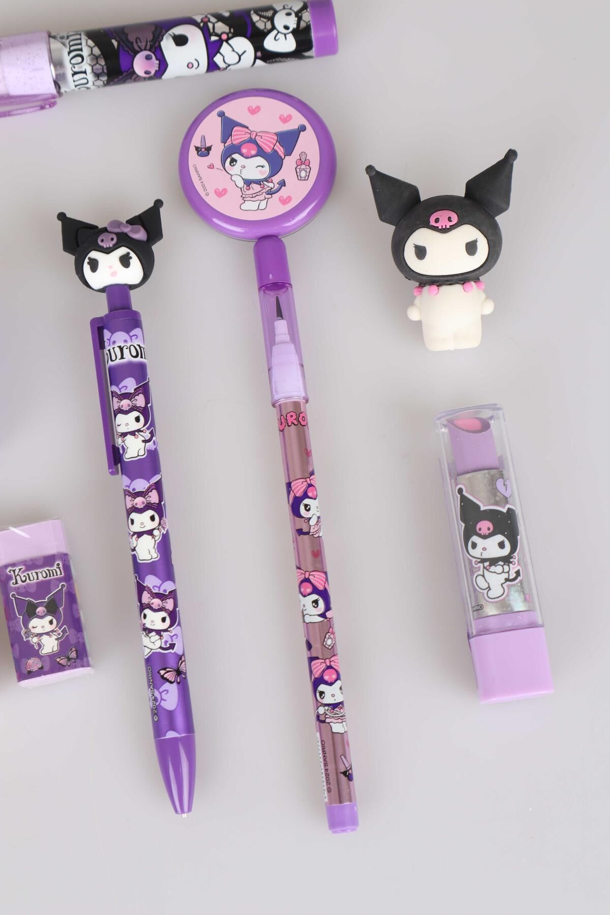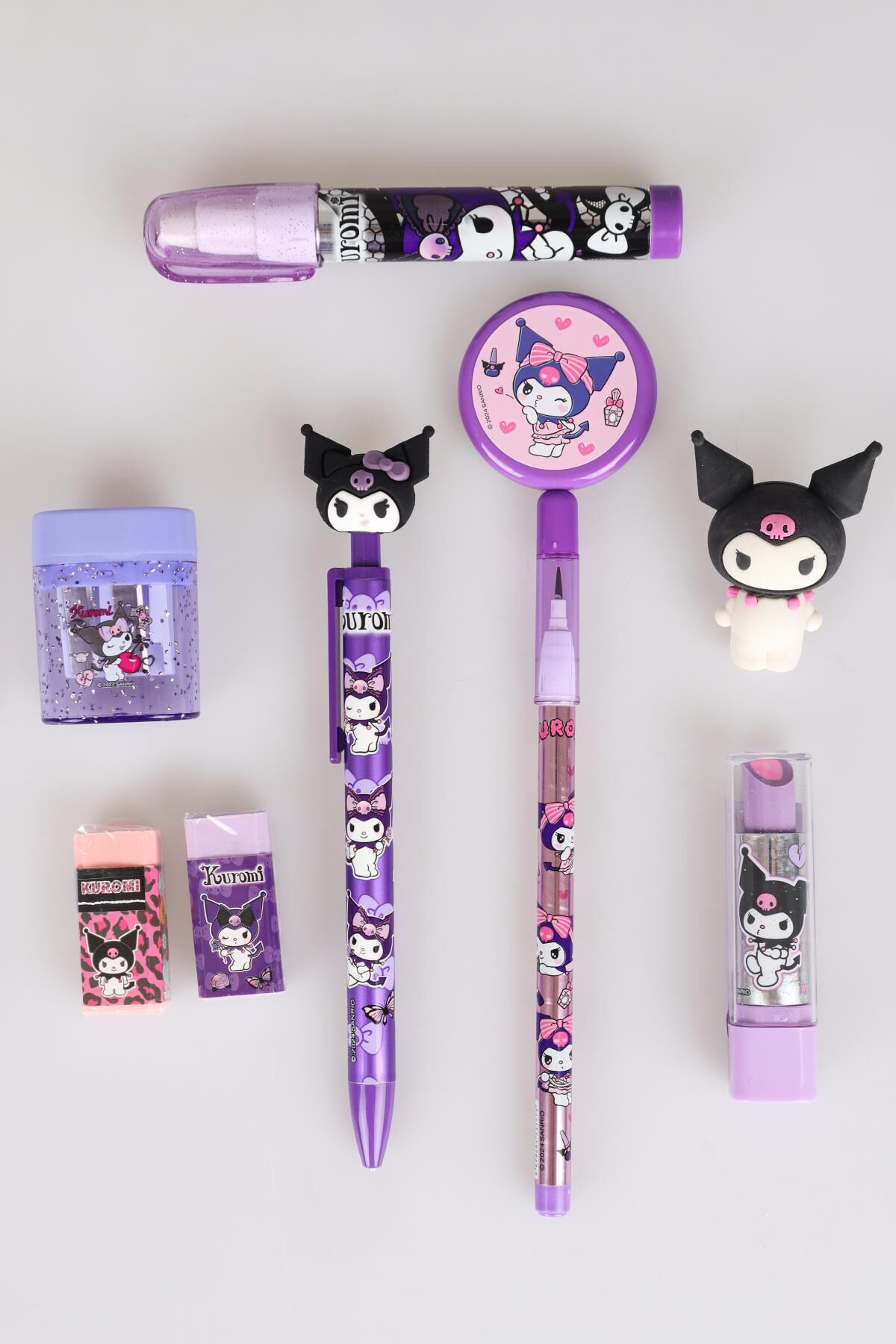 DEKOMUS İLE YENİ SEZON LİSANSLI KUROMI 8'Lİ KIRTASİYE SETİ VERSATİL UÇLU KALEM 0.7 MM,RUJ SİLGİ,KALEMTRAŞ,ROKET SİLGİ,3D SİLGİ,YUMURTLAYAN LABİRENT FİGÜRLÜ GEÇMELİ KURŞUN KALEM,2 ADET SİLGİ SETİ