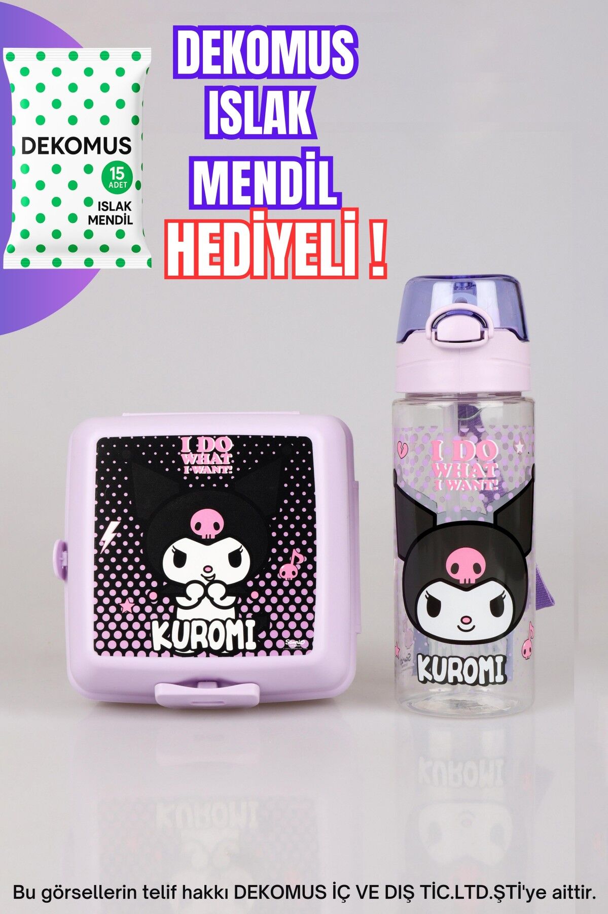 DEKOMUS İLE YENİ SEZON LİSANSLI KUROMI TRITAN MATARA 500 ML VE 2 KATLI BESLENME KABI YEMEK SETİ ''ISLAK MENDİL HEDİYELİ''