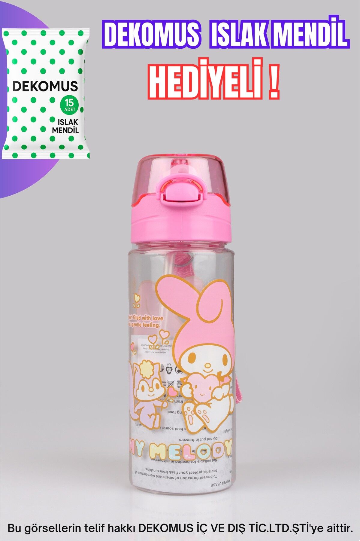 DEKOMUS MY MELODY seven miniklerimizin yanında! Sizler için özel olarak hazırlanan bu matarayı çok seveceksiniz :) MY MELODY olarak sattığımız tüm ürünler orjinal ve lisanslıdır.Sağlığa zararlı kimyasal madde kullanılmamıştır.