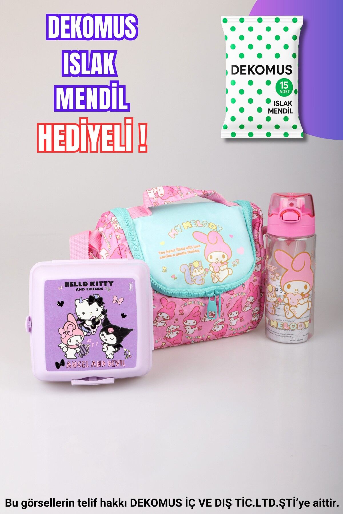 DEKOMUS İLE YENİ SEZON LİSANSLI MY MELODY&BEST FRIENDS ''MELOPINK KOLEKSİYONU'' TERMOSLU BESLENME ÇANTASI,500 ML MATARA VE 2 KATLI BESLENME KUTUSU /LUNCH BOX SETİ ''ISLAK MENDİL HEDİYELİ''