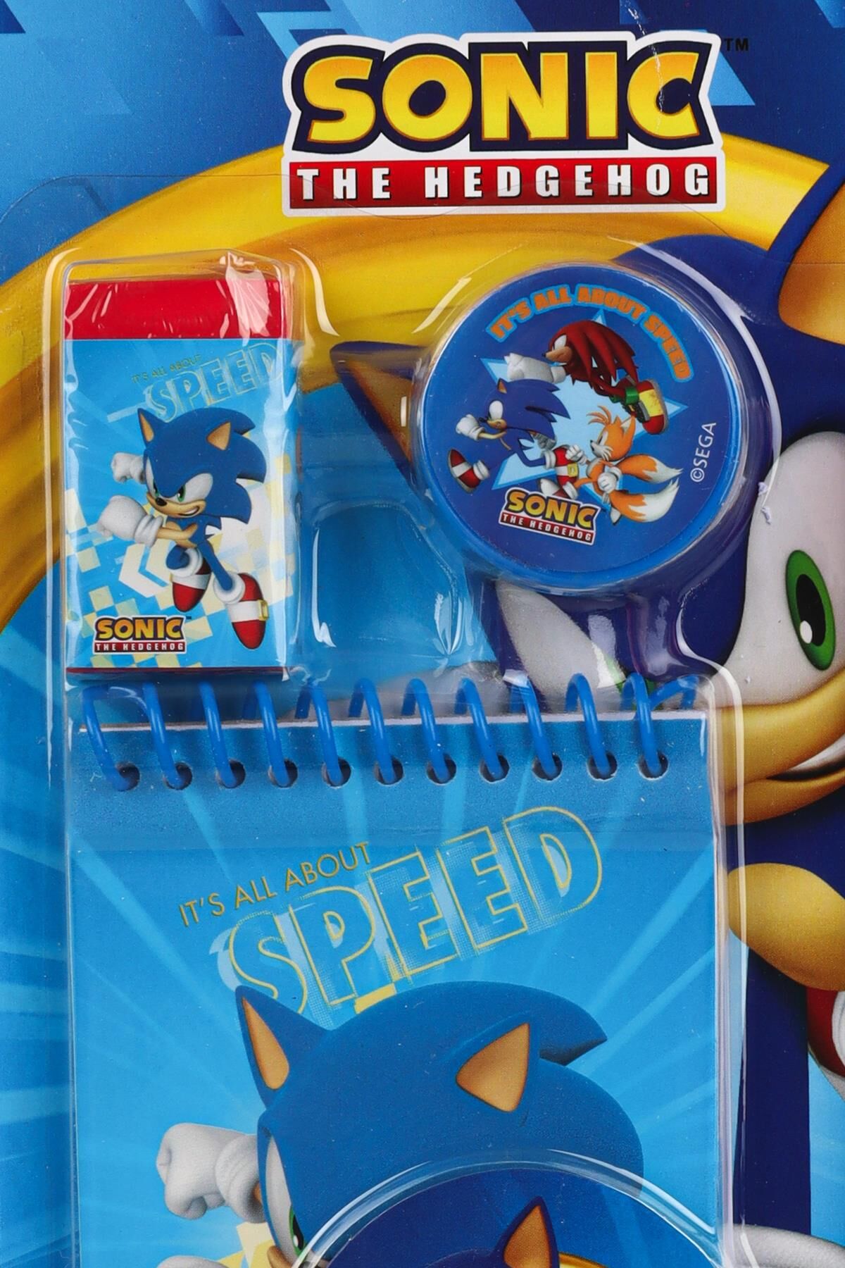 DEKOMUS İLE YENİ SEZON LİSANSLI SONIC 4'LÜ KIRTASİYE SETİ NOT DEFTERİ, SİLGİ,KALEMTRAŞ,GEÇMELİ KURŞUN KALEM
