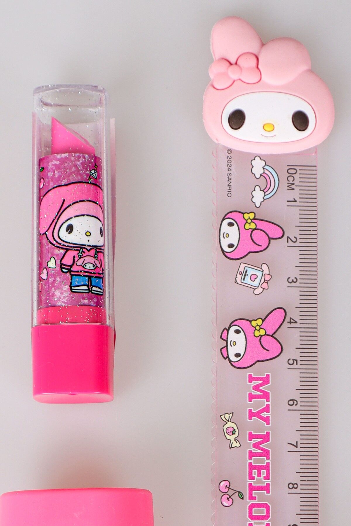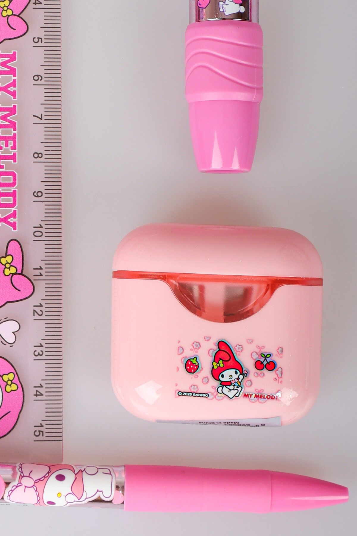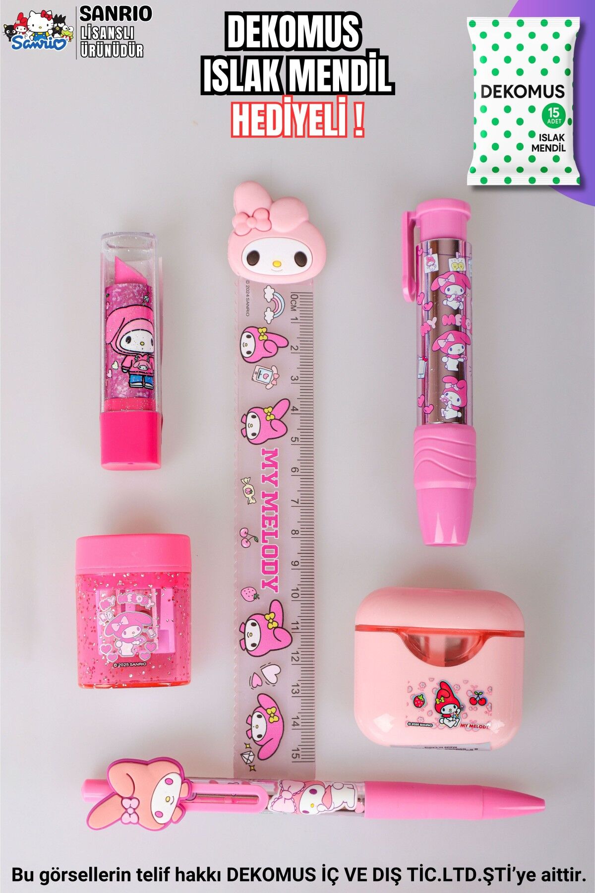 ''DEKOMUS ISLAK MENDİL HEDİYELİ'' LİSANSLI MY MELODY 6 PARÇA KIRTASİYE SETİ PODS/KULAKLIK TASARIMLI KALEMTRAŞ,CETVEL,UÇLU KALEM,RUJ SİLGİ