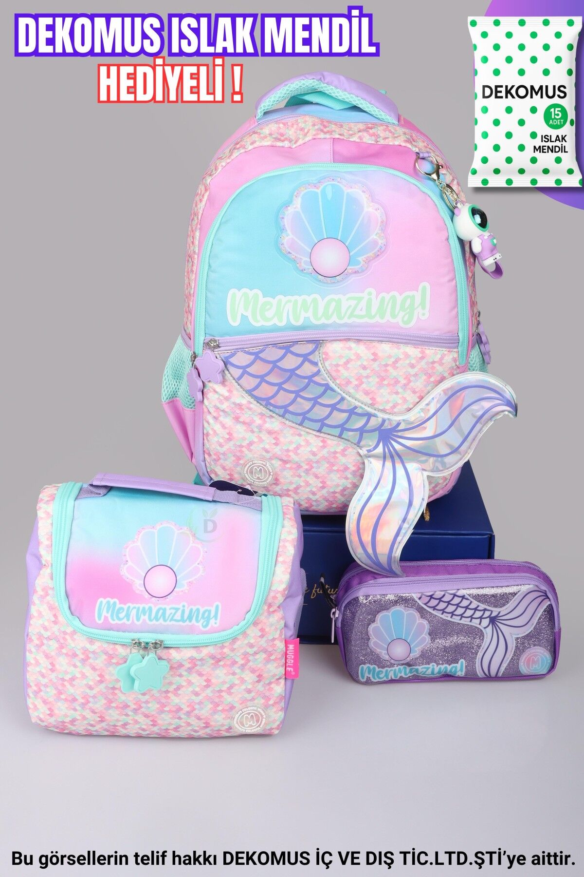 ''DEKOMUS ISLAK MENDİL HEDİYELİ'' ''PEARLA KOLEKSİYONU'' BÜYÜK BOY OKUL ÇANTASI,TERMOSLU BESLENME ÇANTASI VE KALEM ÇANTASI