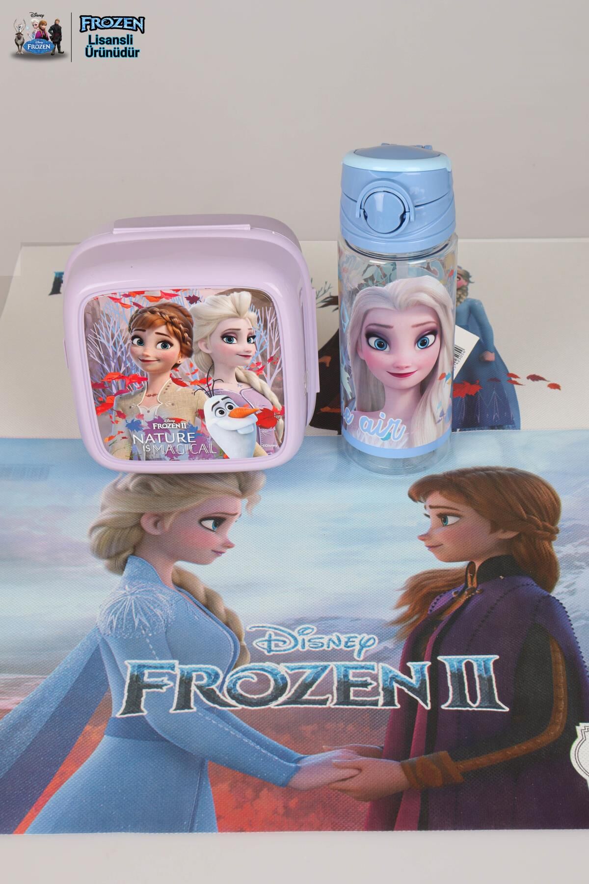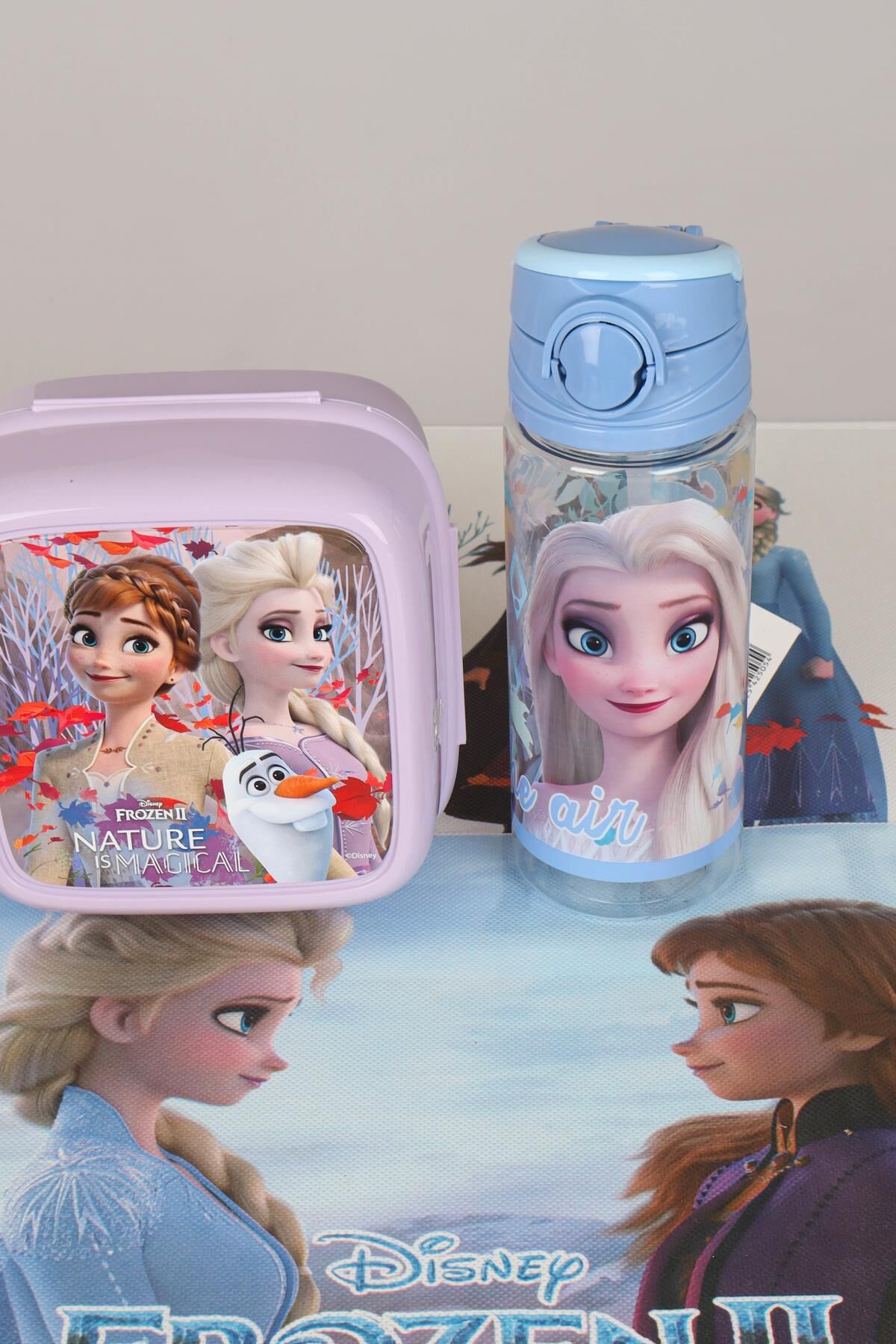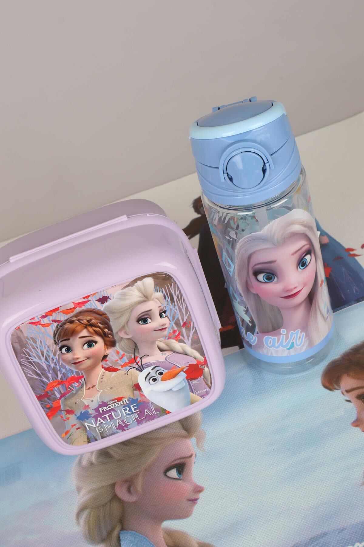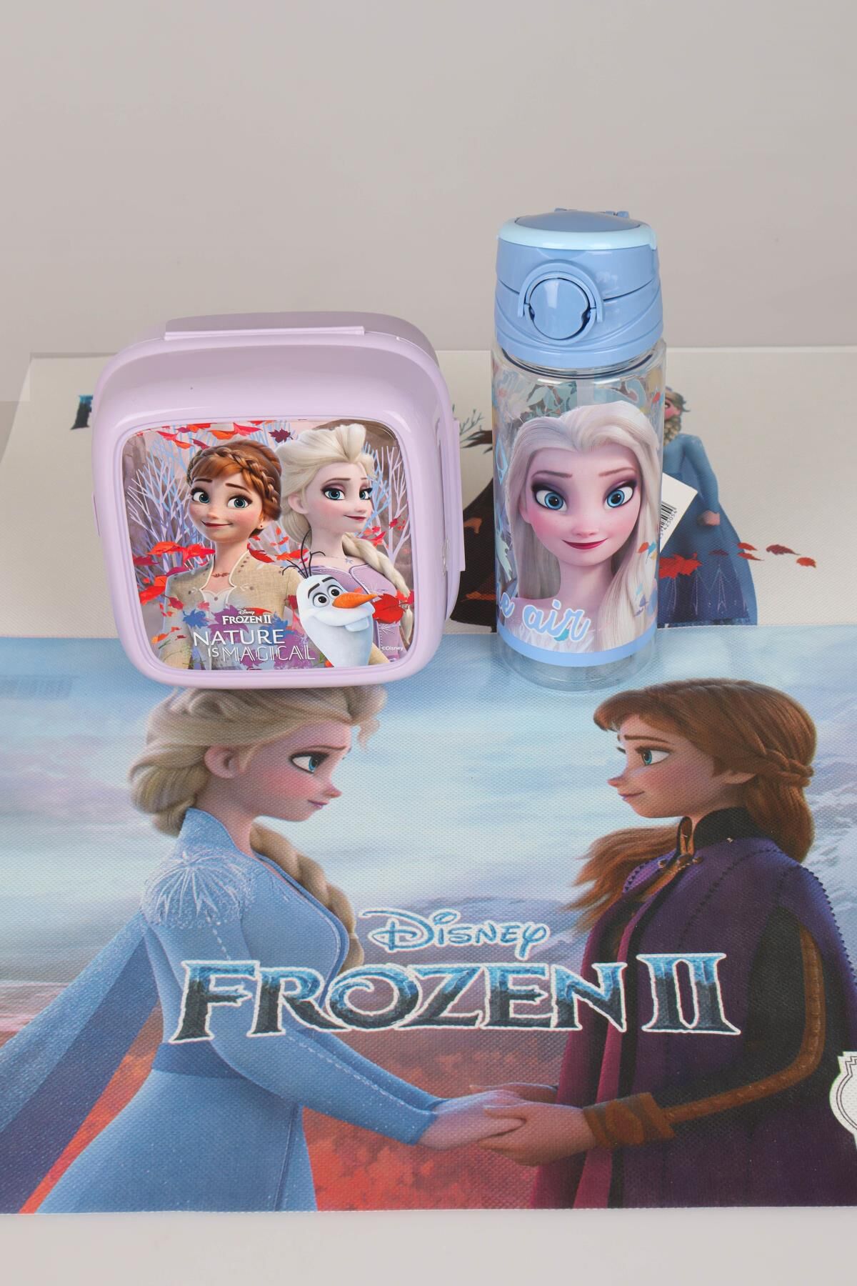 DEKOMUS LİSANSLI ELSA FROZEN ''BESLENME ÖRTÜSÜ,BESLENME KABI VE 500 ML TRITAN MATARA OKUL/KIRTASİYE SETİ