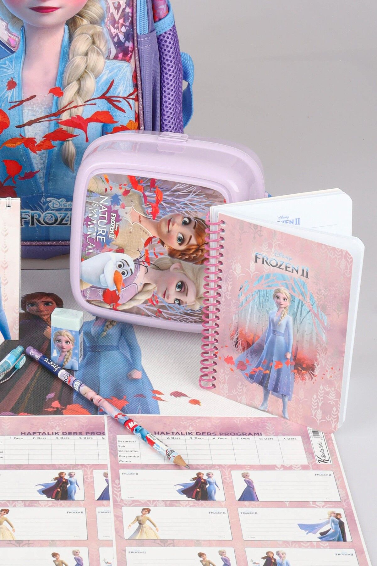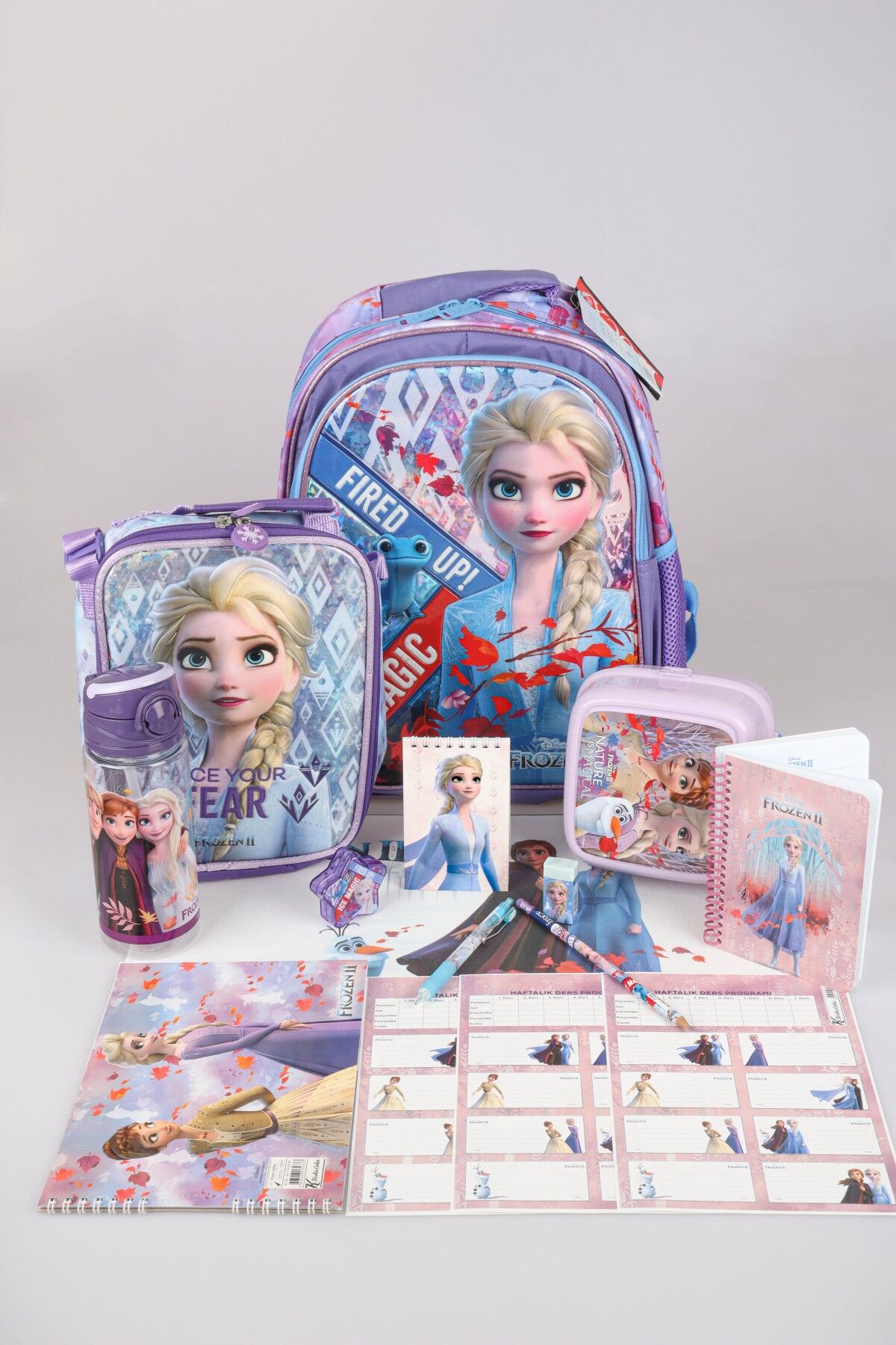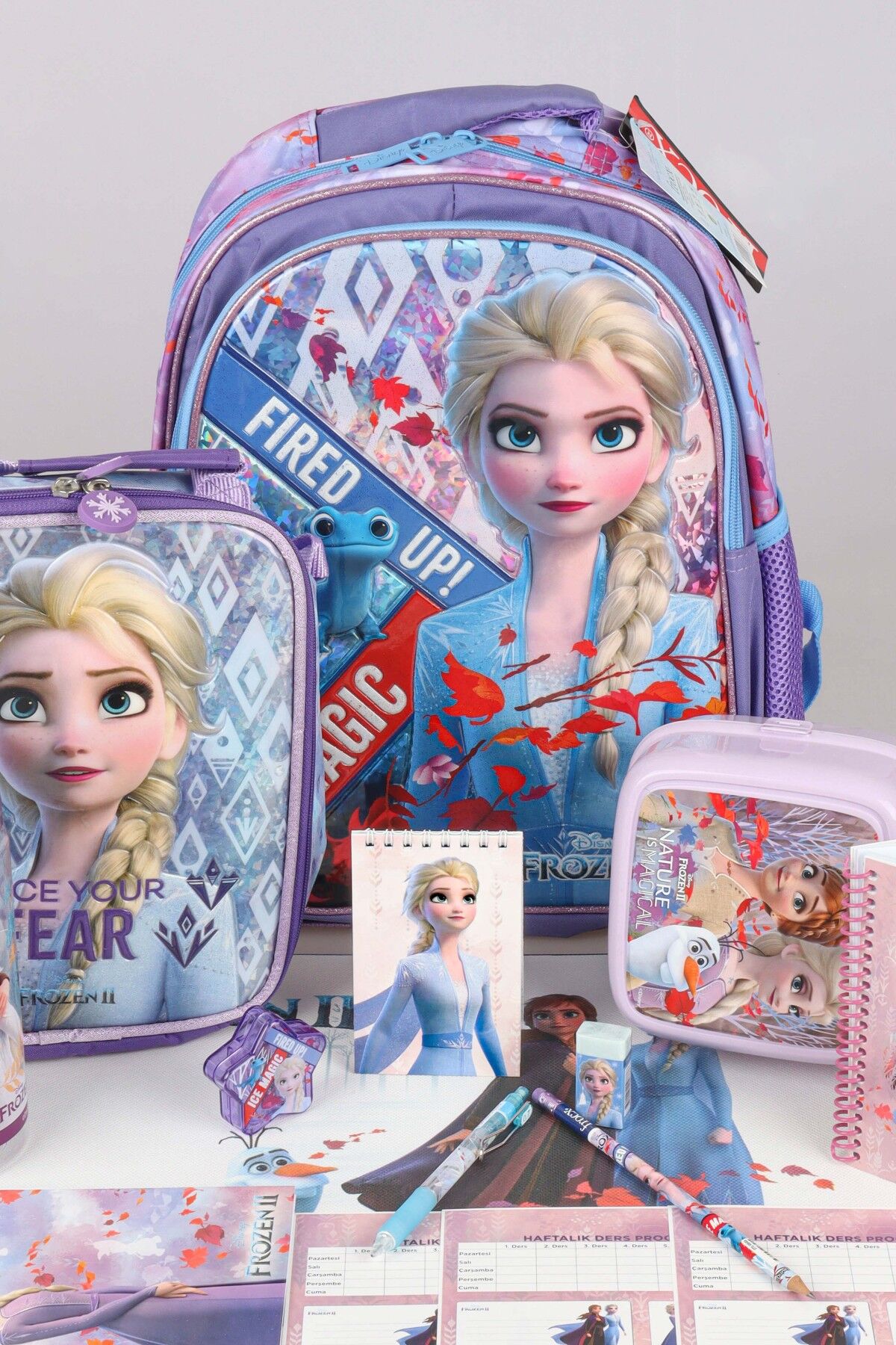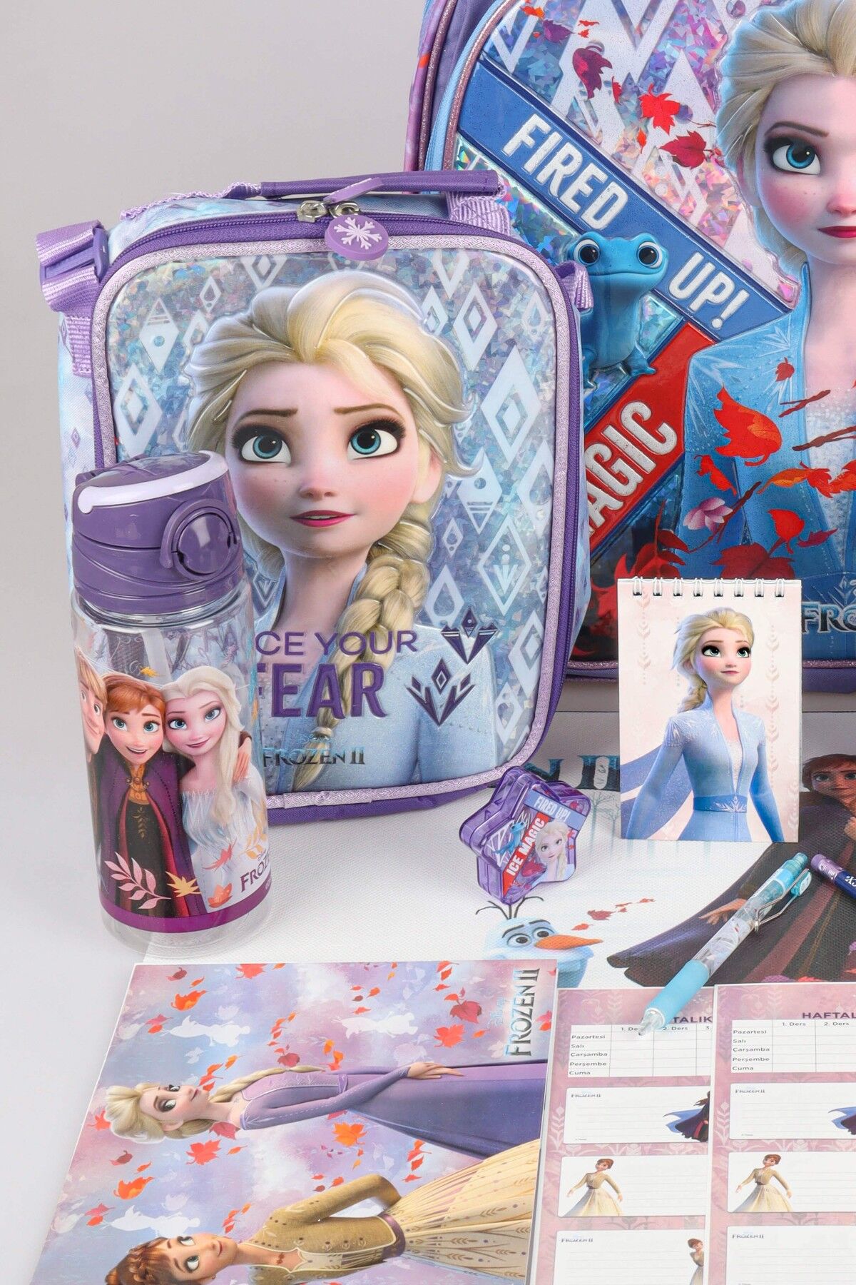 DEKOMUS LİSANSLI ELSA FROZEN ''OKUL ÇANTASI VE BESLENME ÇANTASI,BESLENME KABI VE 500 ML TRITAN MATARA OKUL SETİ