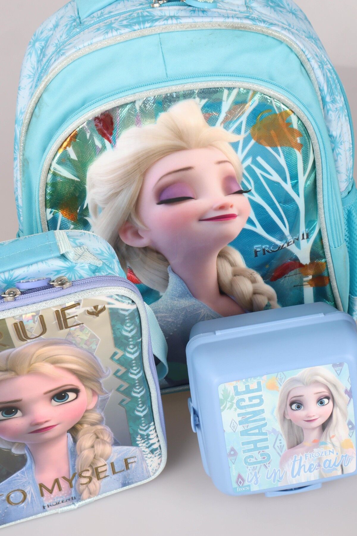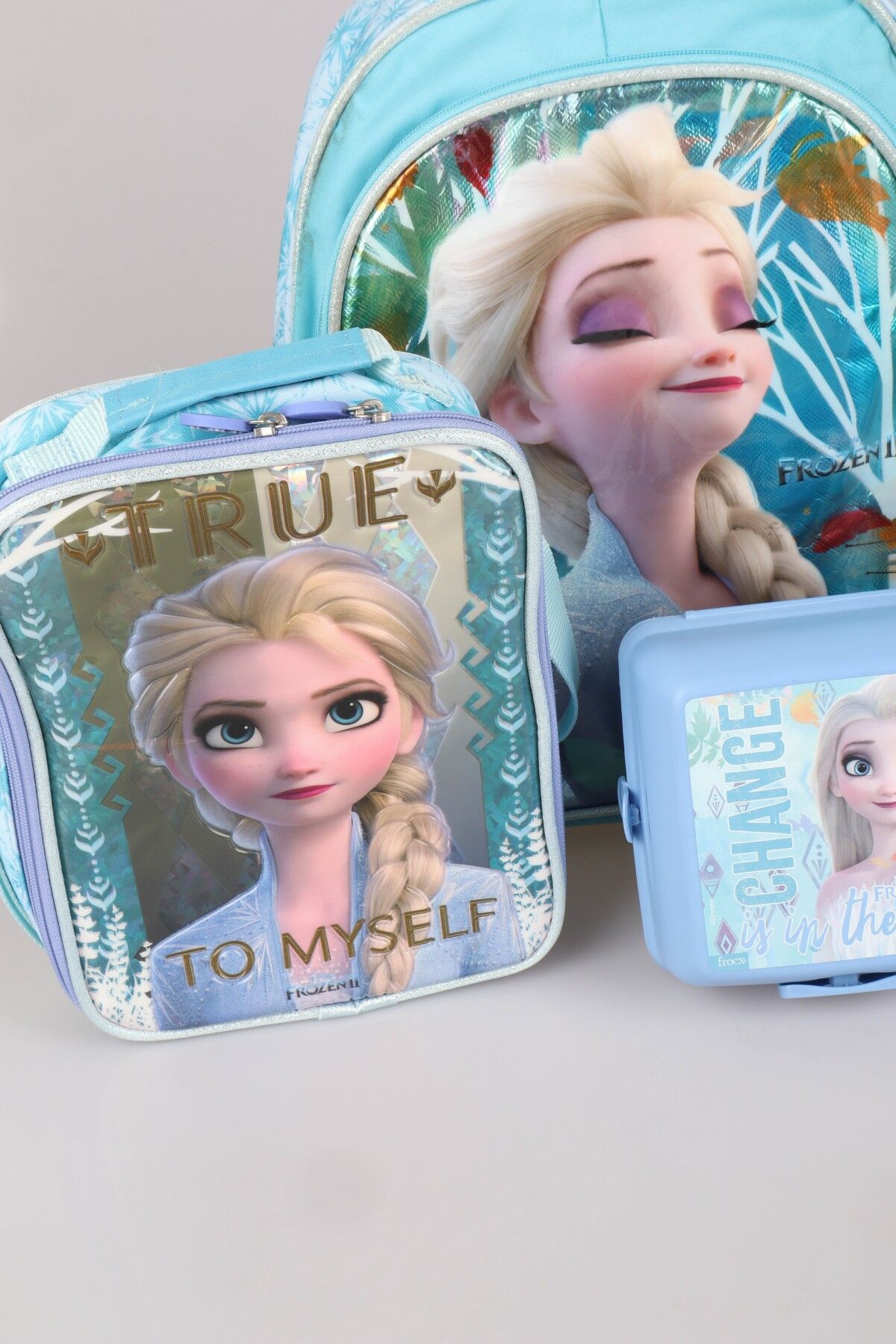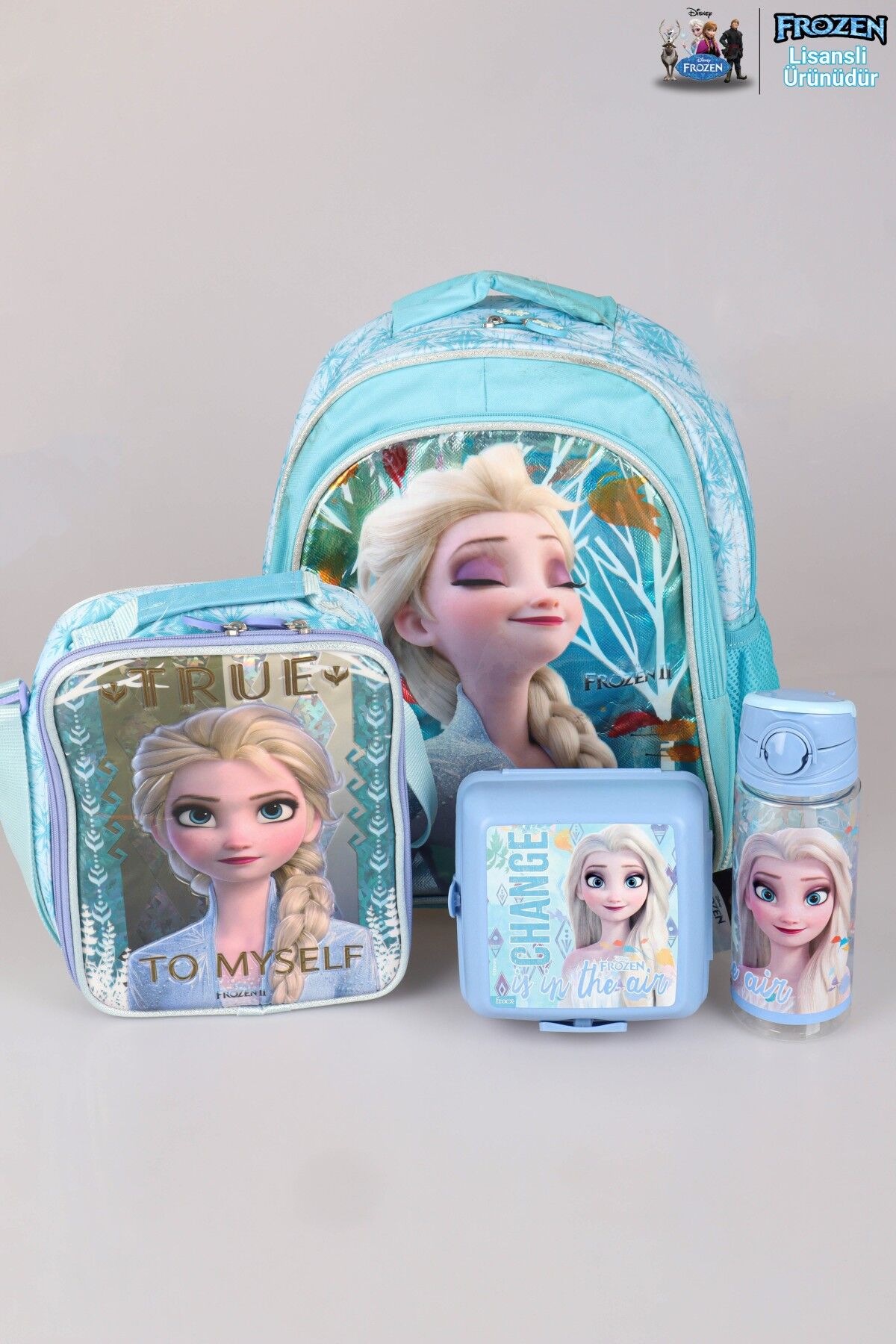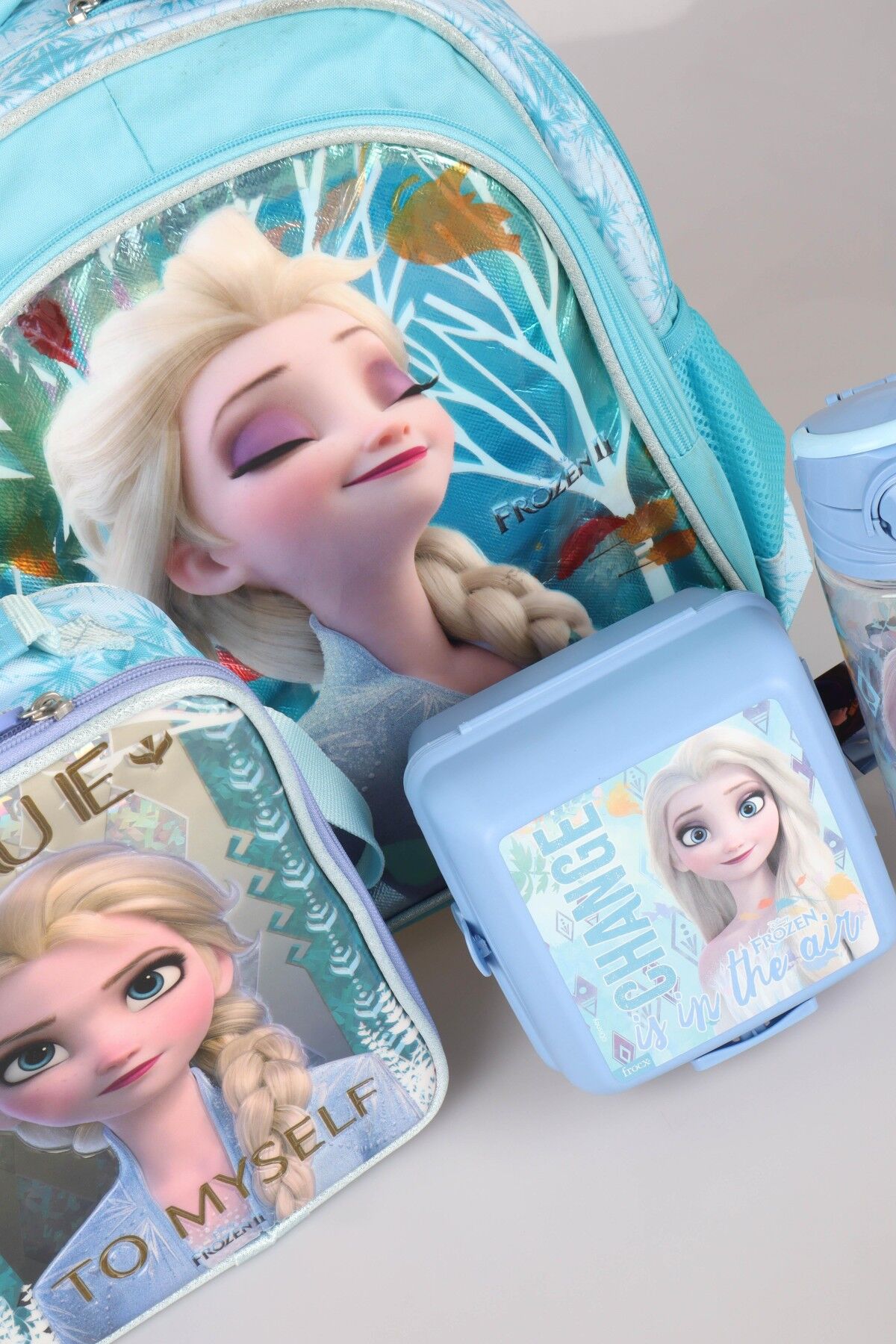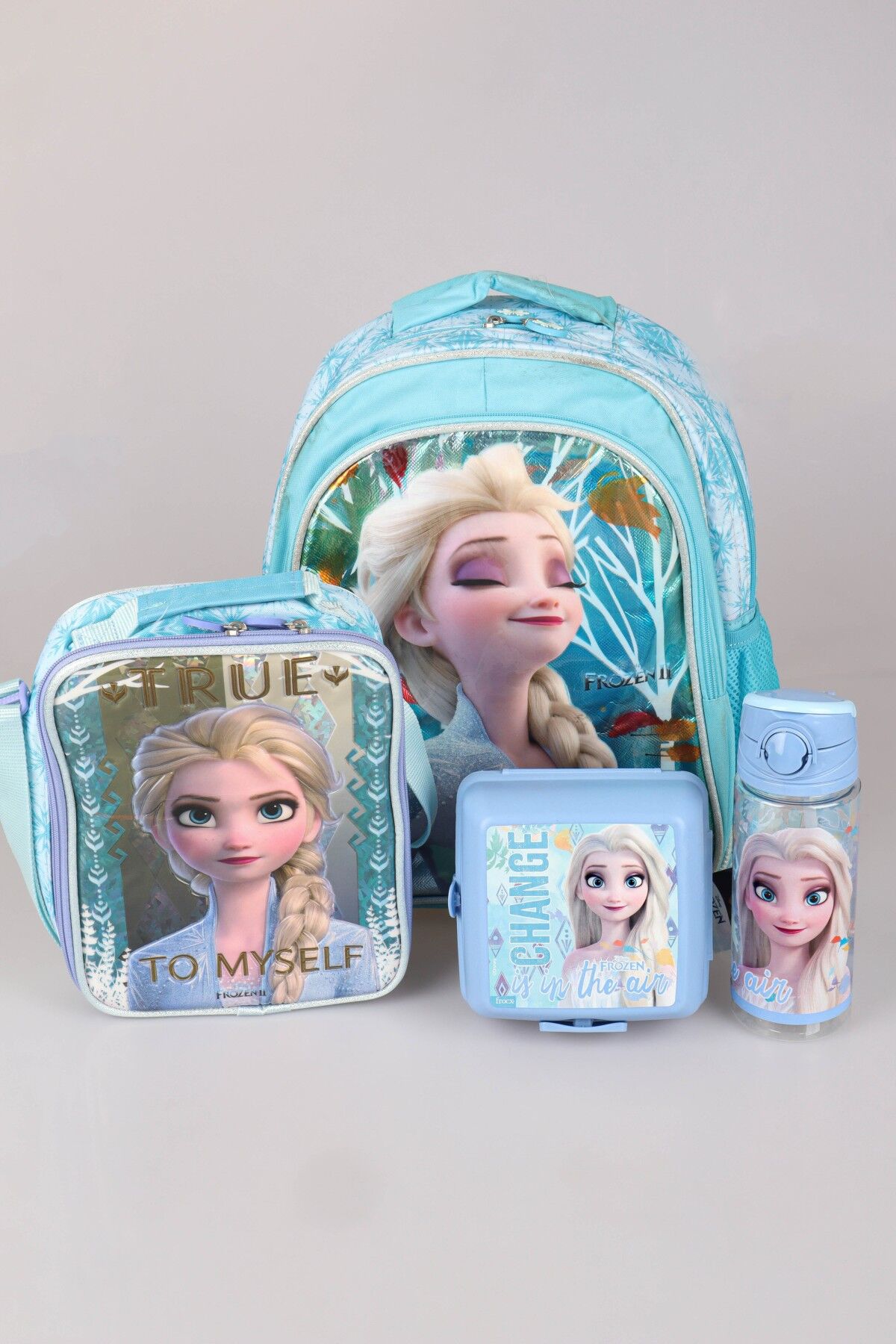 DEKOMUS LİSANSLI ELSA FROZEN OWN YOUR DESTIN ''OKUL ÇANTASI,BESLENME ÇANTASI,BESLENME KABI VE 500 ML TRITAN MATARA OKUL SETİ