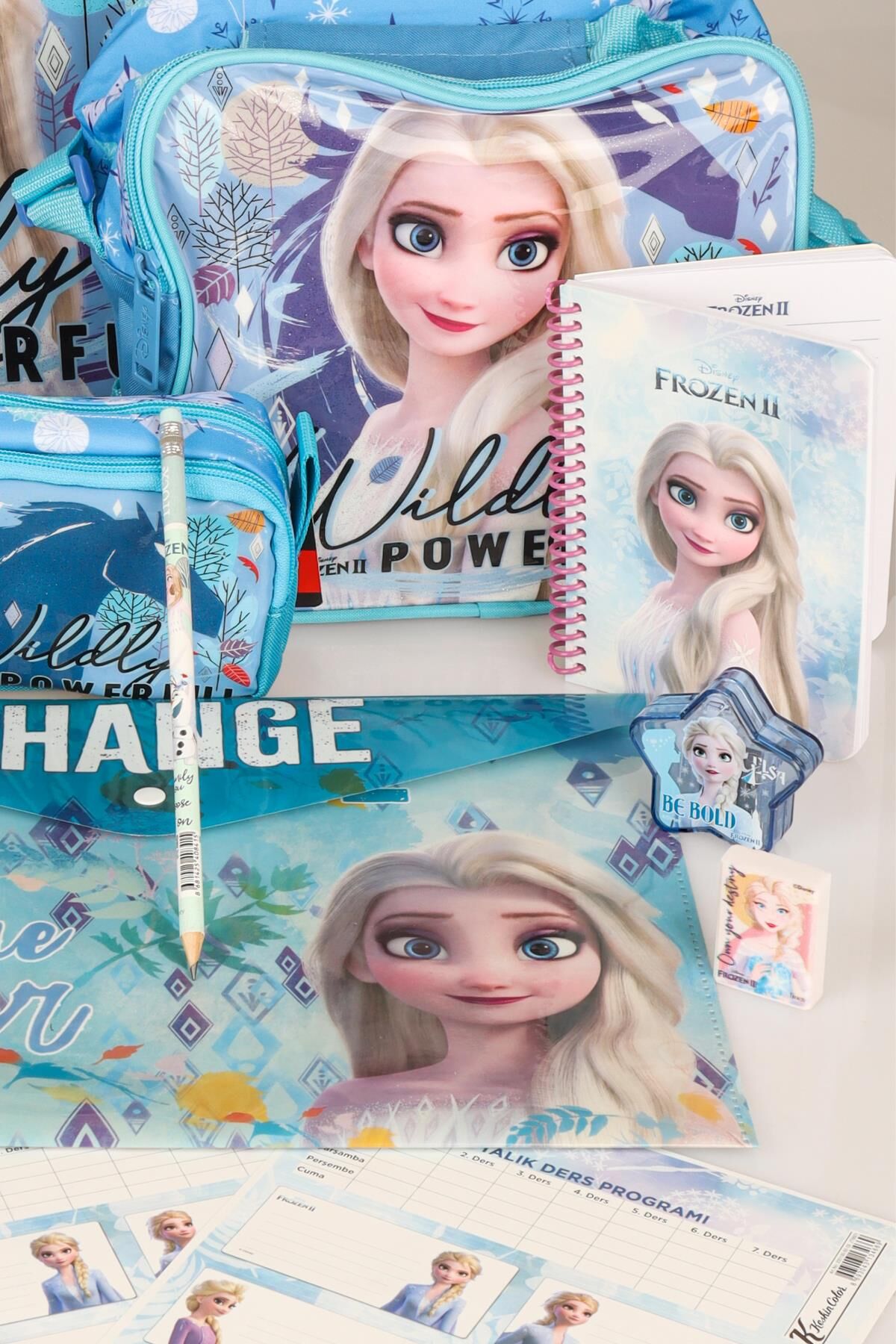 DEKOMUS LİSANSLI ELSA FROZEN TEK BÖLMELİ KÜÇÜK BOY 32 CM ANAOKUL ,BESLENME VE KALEM ÇANTASI,MATARA,BESLENME KABI İLE FULL OKUL/KIRTASİYE SETİ