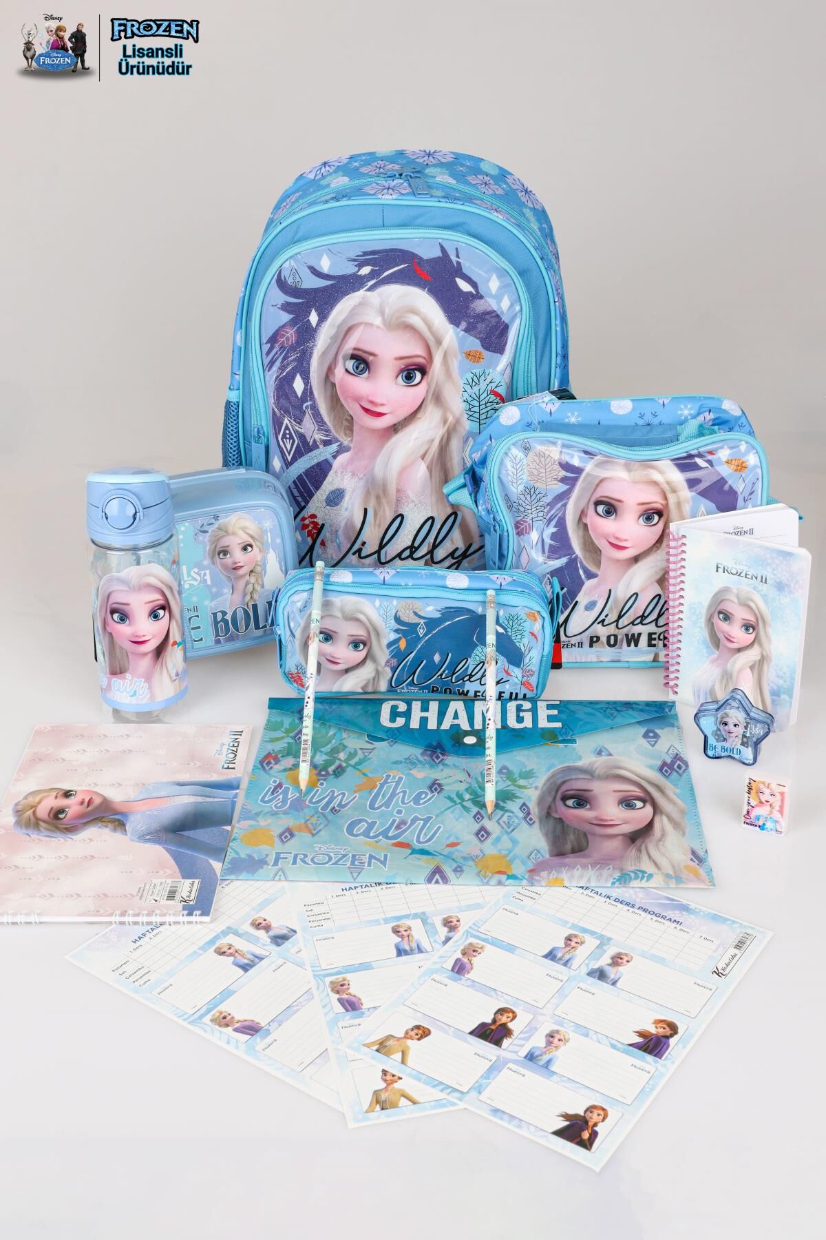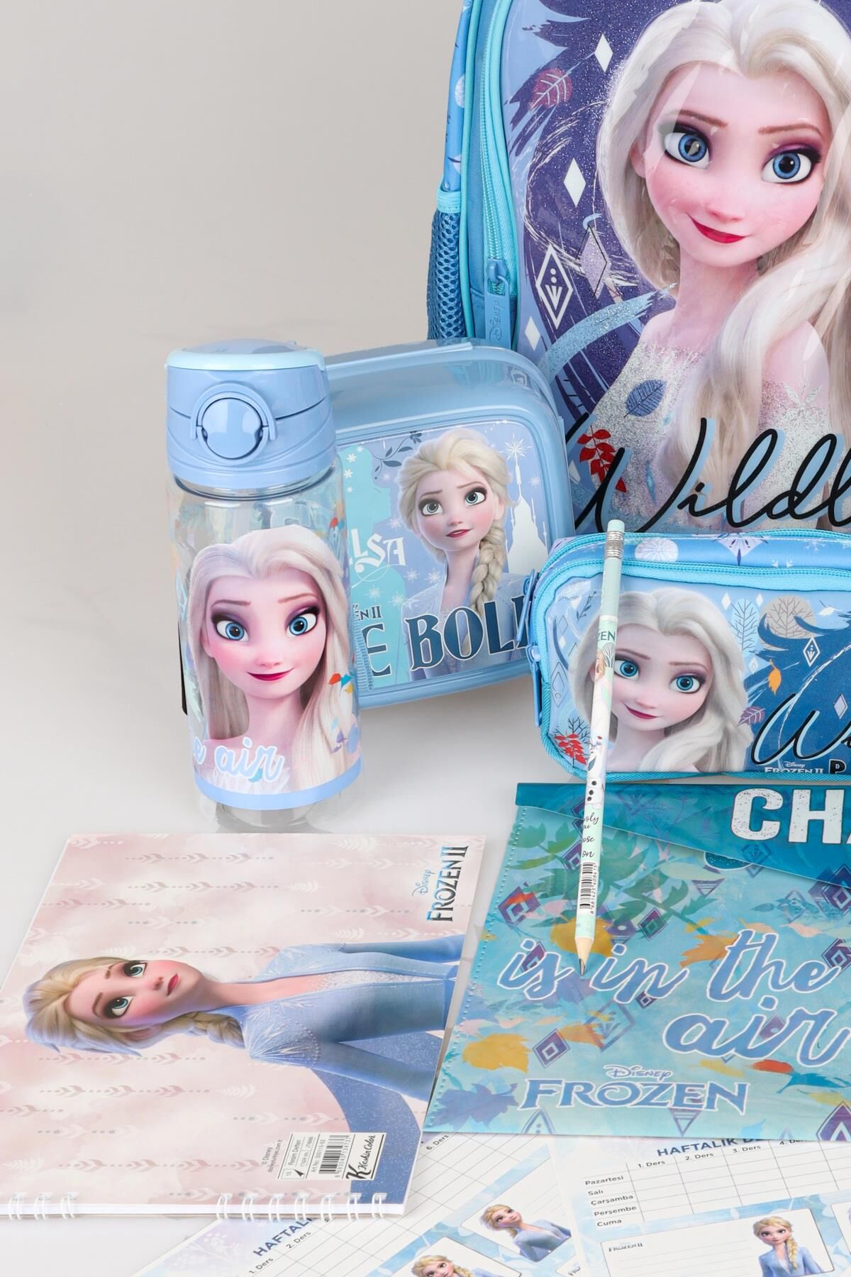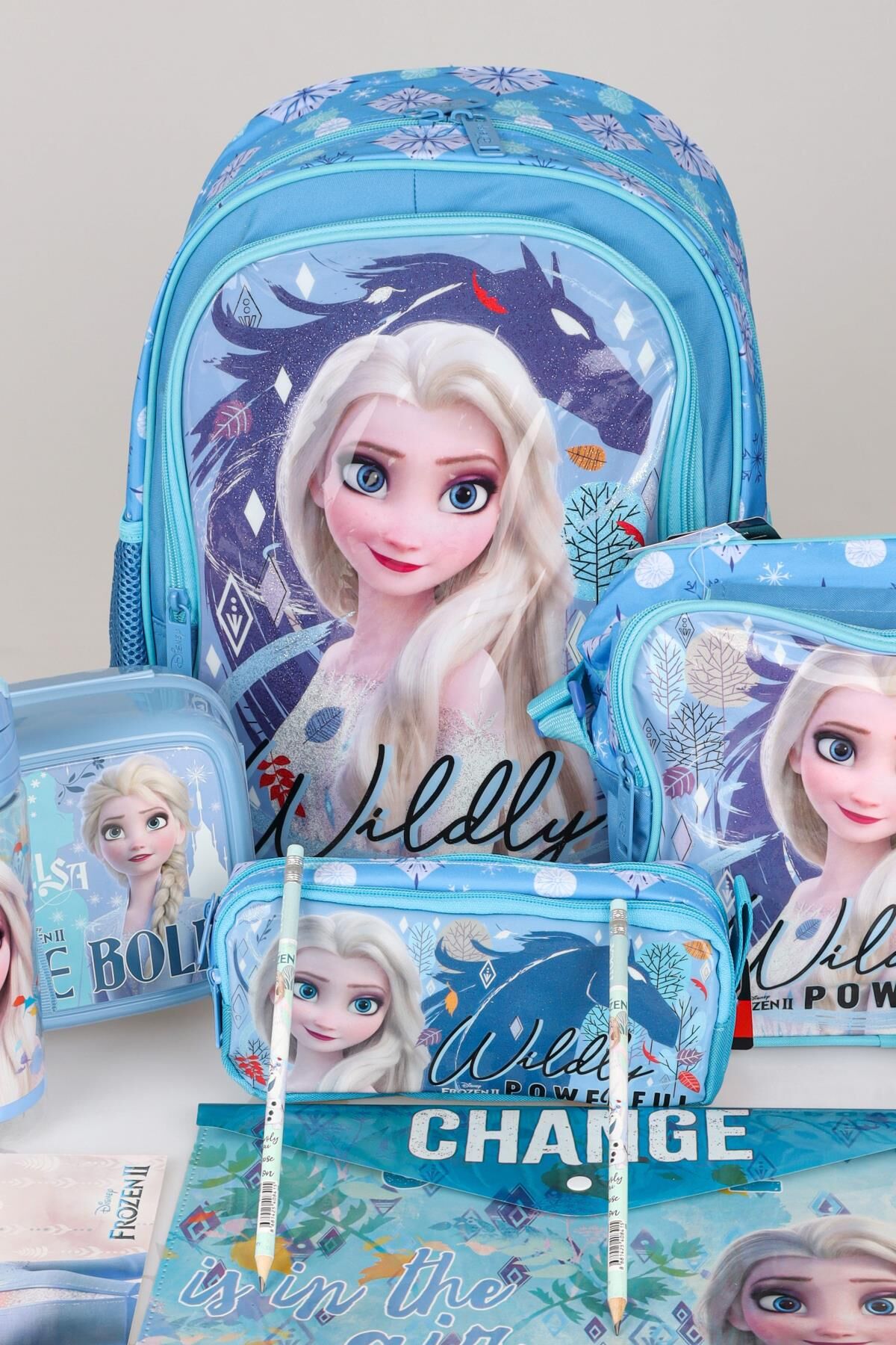 DEKOMUS LİSANSLI ''MAVİ KARLAR ÜLKESİ ELSA FROZEN KOLEKSİYONU ''OKUL ,BESLENME VE KALEM ÇANTASI,MATARA,BESLENME KABI İLE FULL OKUL/KIRTASİYE SETİ