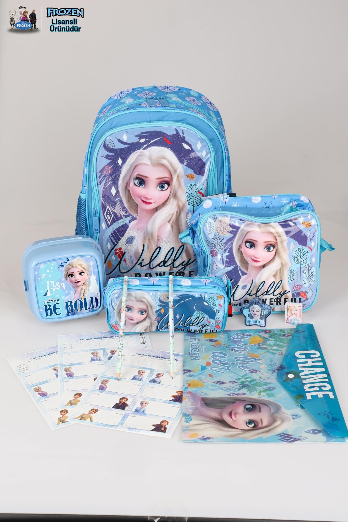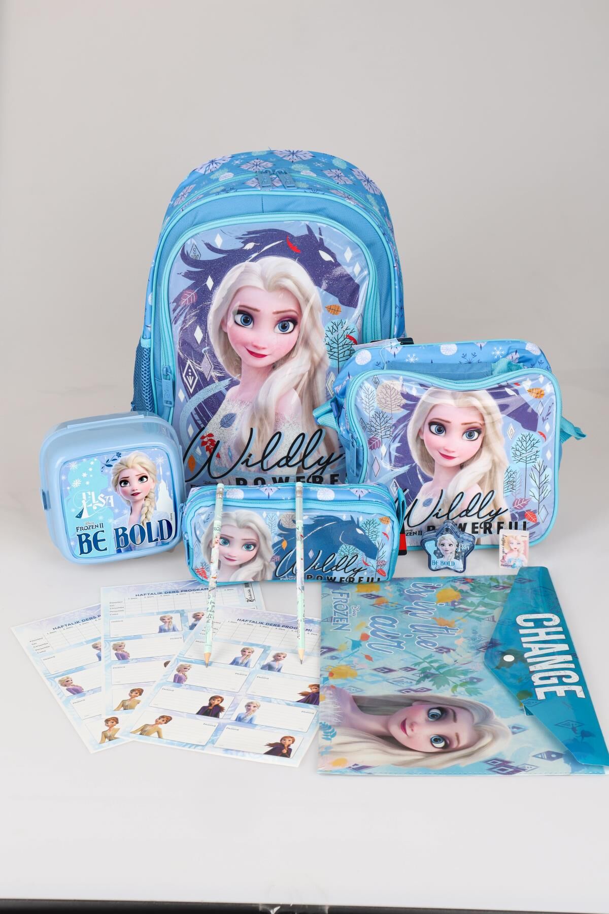 DEKOMUS LİSANSLI ''MAVİ KARLAR ÜLKESİ ELSA KOLEKSİYONU'' OKUL ,BESLENME VE KALEM ÇANTASI İLE KIRTASİYE SETİ