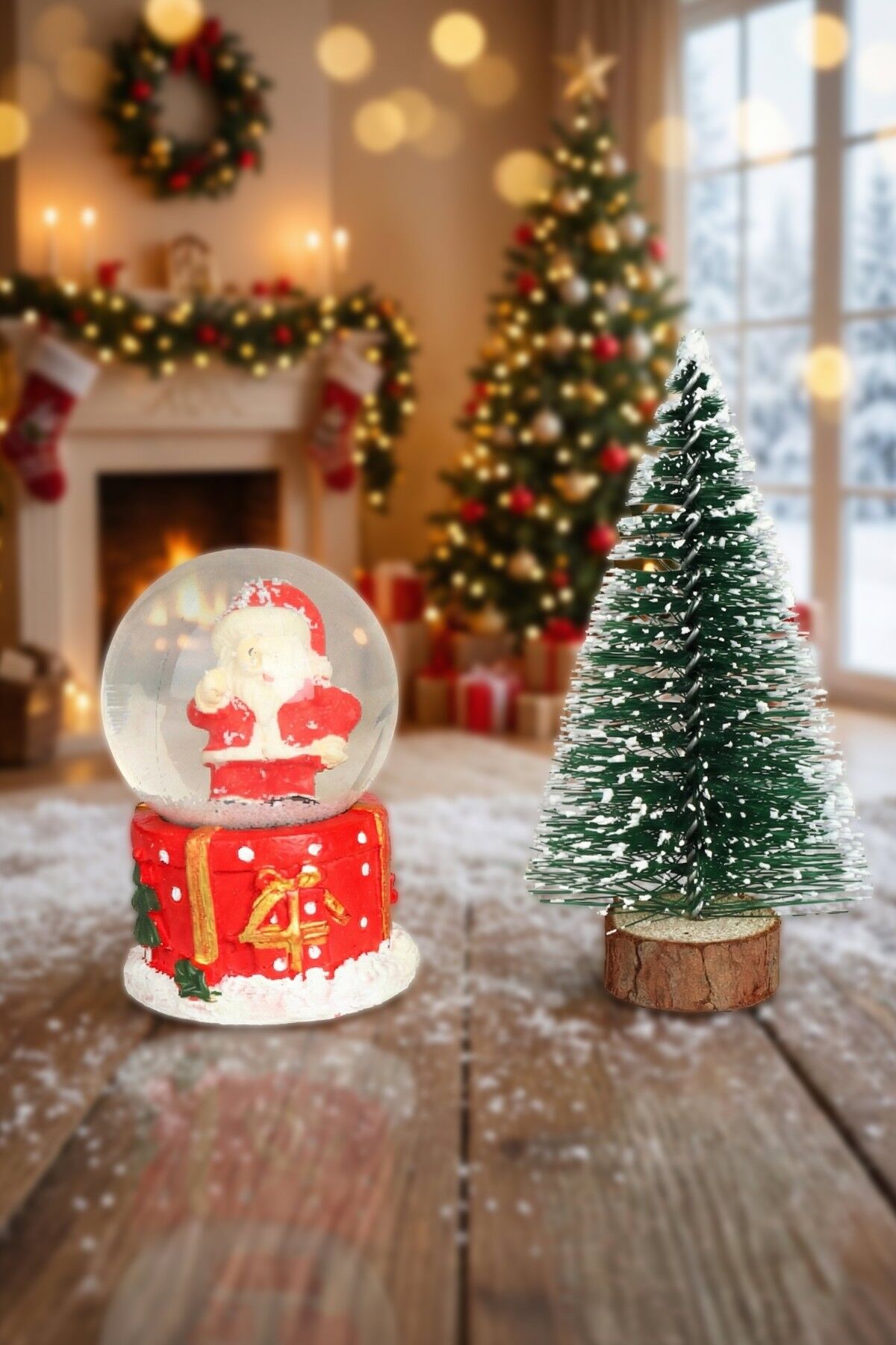 DEKOMUS MUTLU YILLAR SERİSİ ''MİNİ ÇAM AĞACI SÜSÜ VE KAR KÜRESİ 2'LİSİ ''YENİ YIL MERRY CHRISTMAS ''