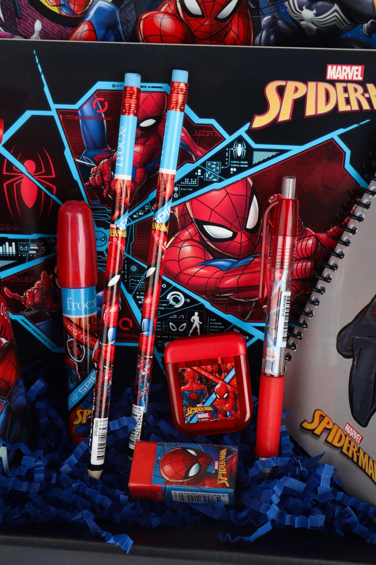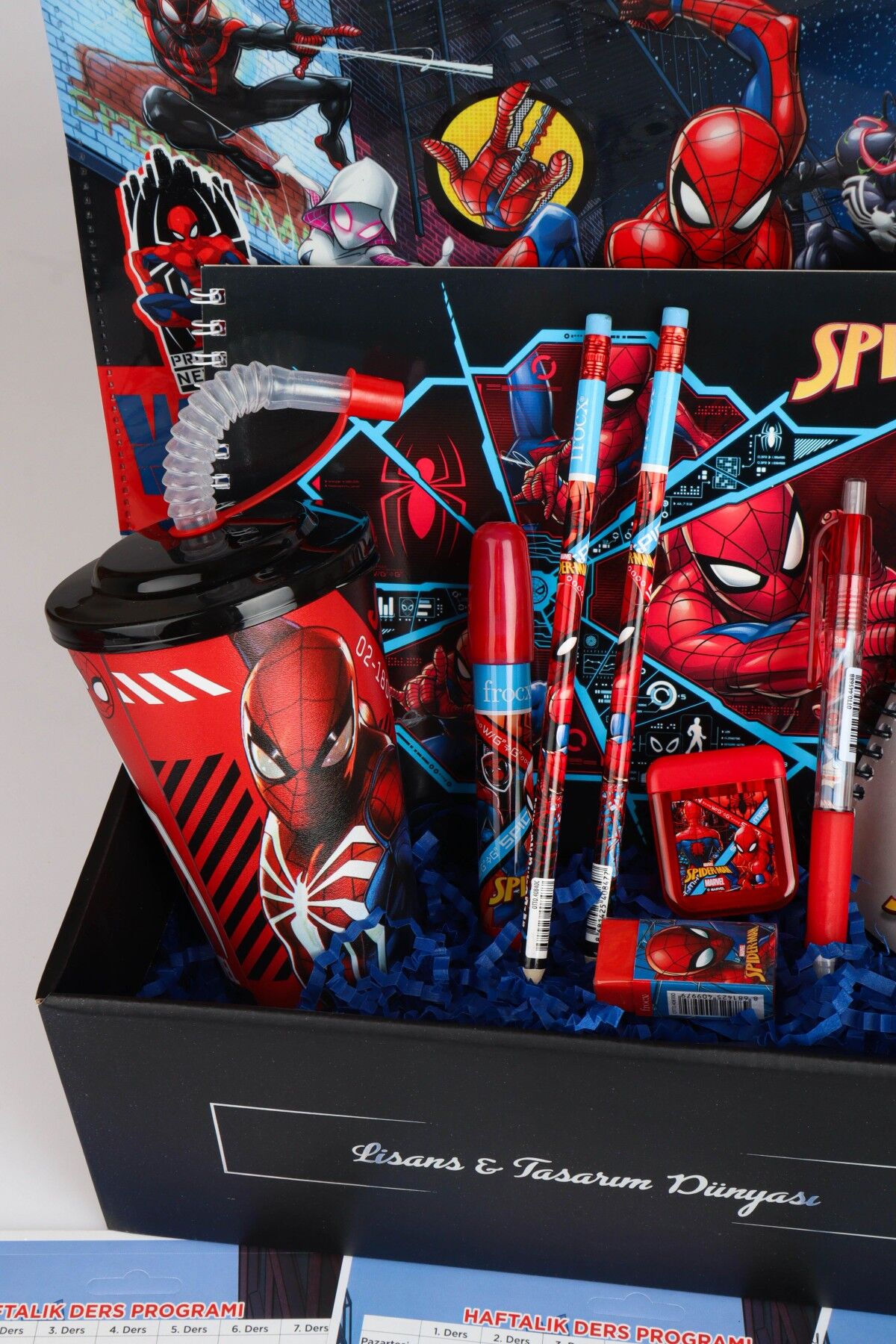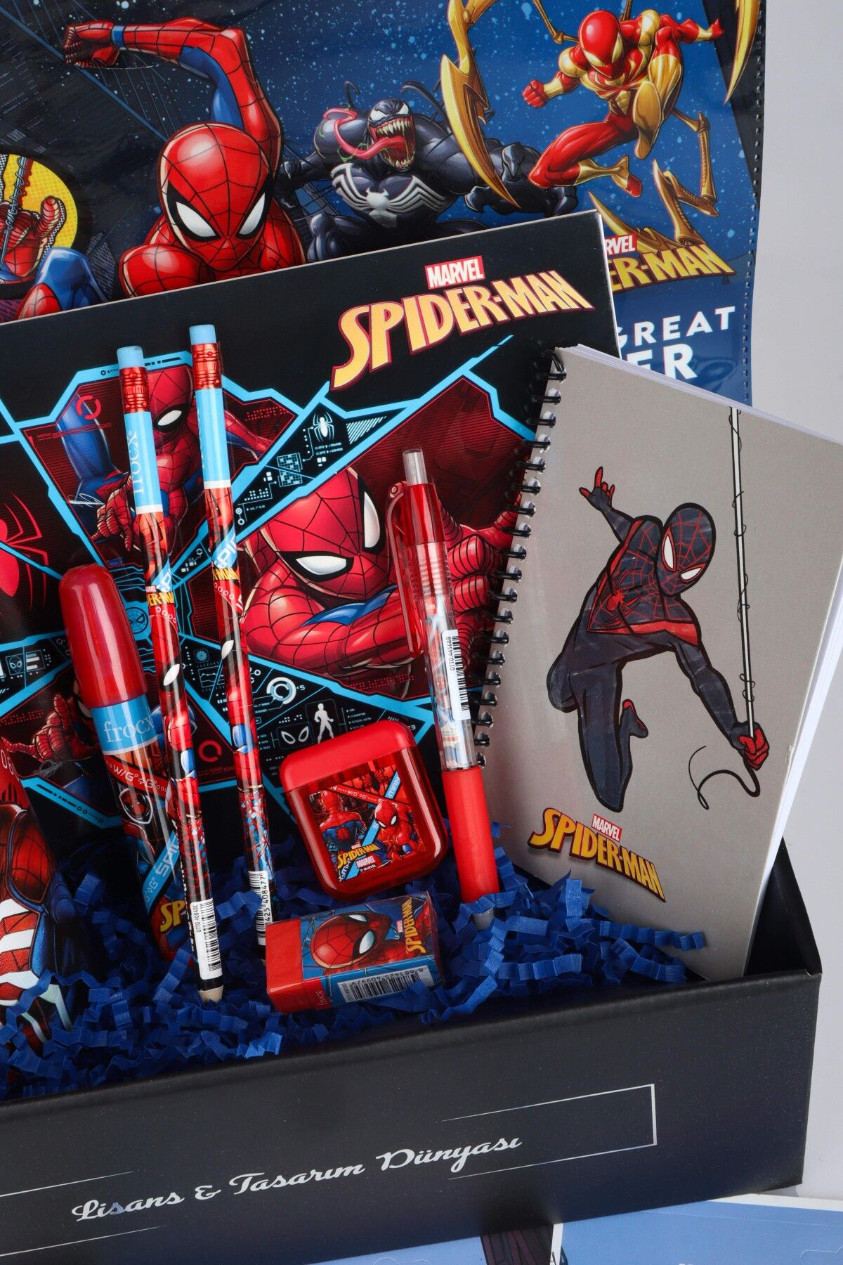 DEKOMUS ÖZEL KUTULU LİSANSLI SPIDERMAN 19 PARÇA KIRTASİYE SETİ PİPETLİ BARDAK,RESİM DEFTERİ,KURŞUN KALEM,SİLGİ VE KALEMTRAŞ