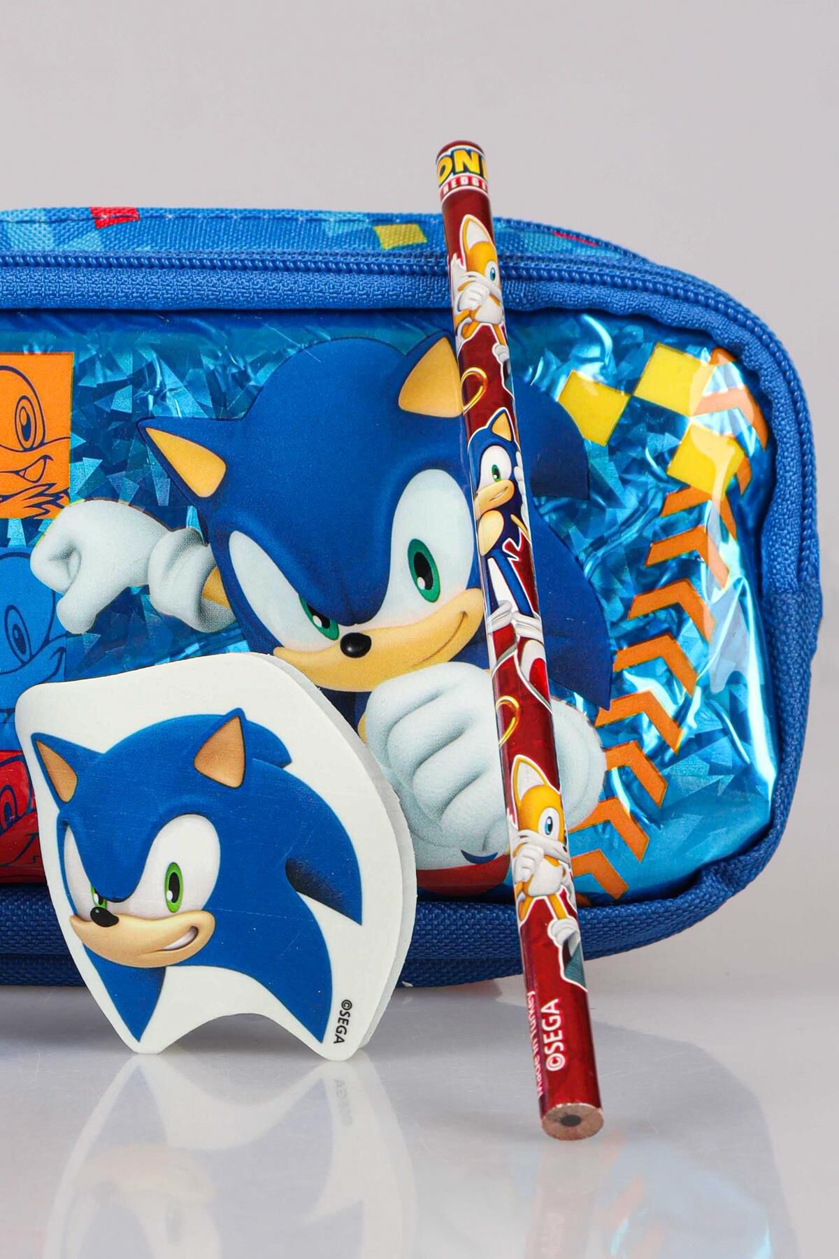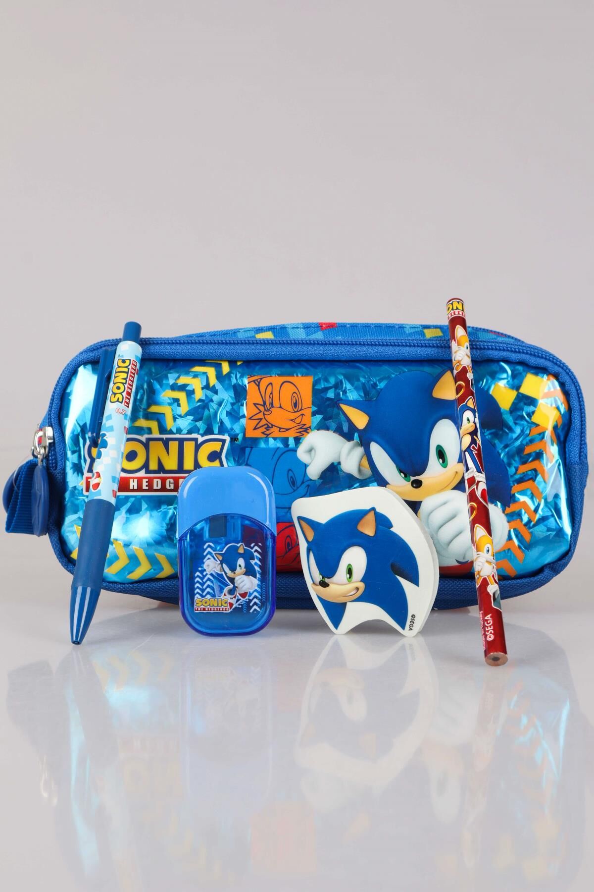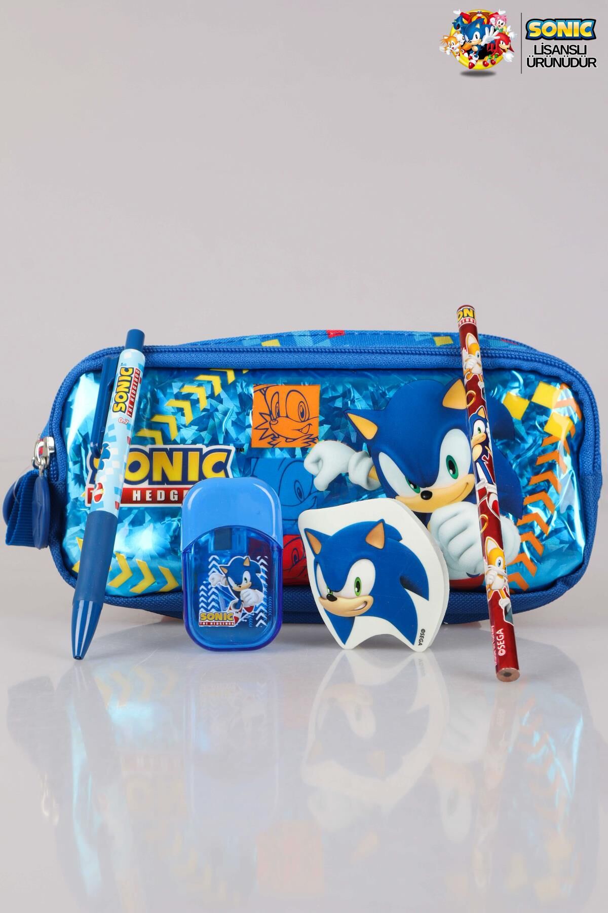 DEKOMUS ÖZEL TASARIM LİSANSLI SONIC KALEM ÇANTASI,UÇLU KALEM,SİLGİ TEPELİ KURŞUN KALEM,KALEMTRAŞ SETİ