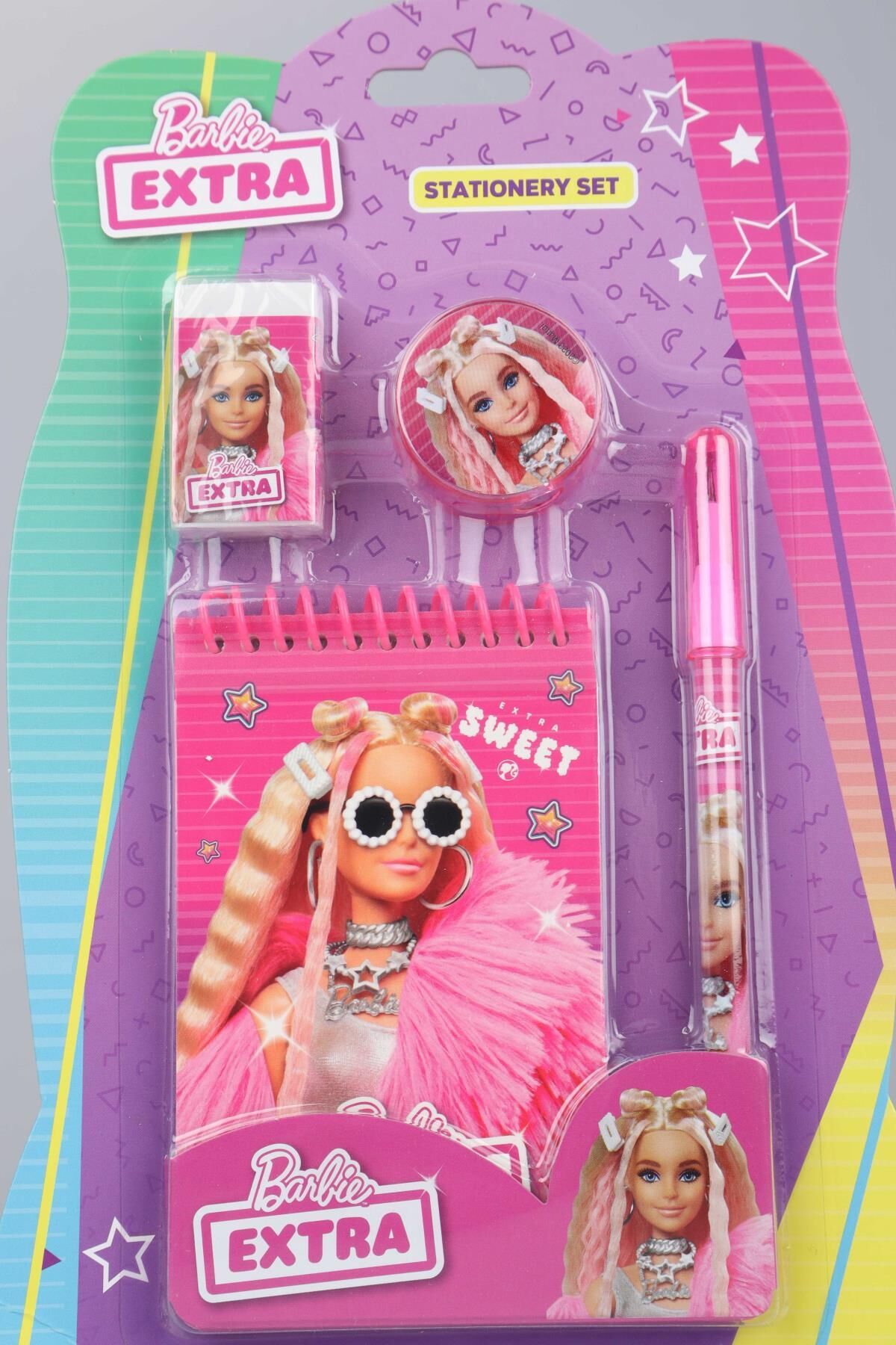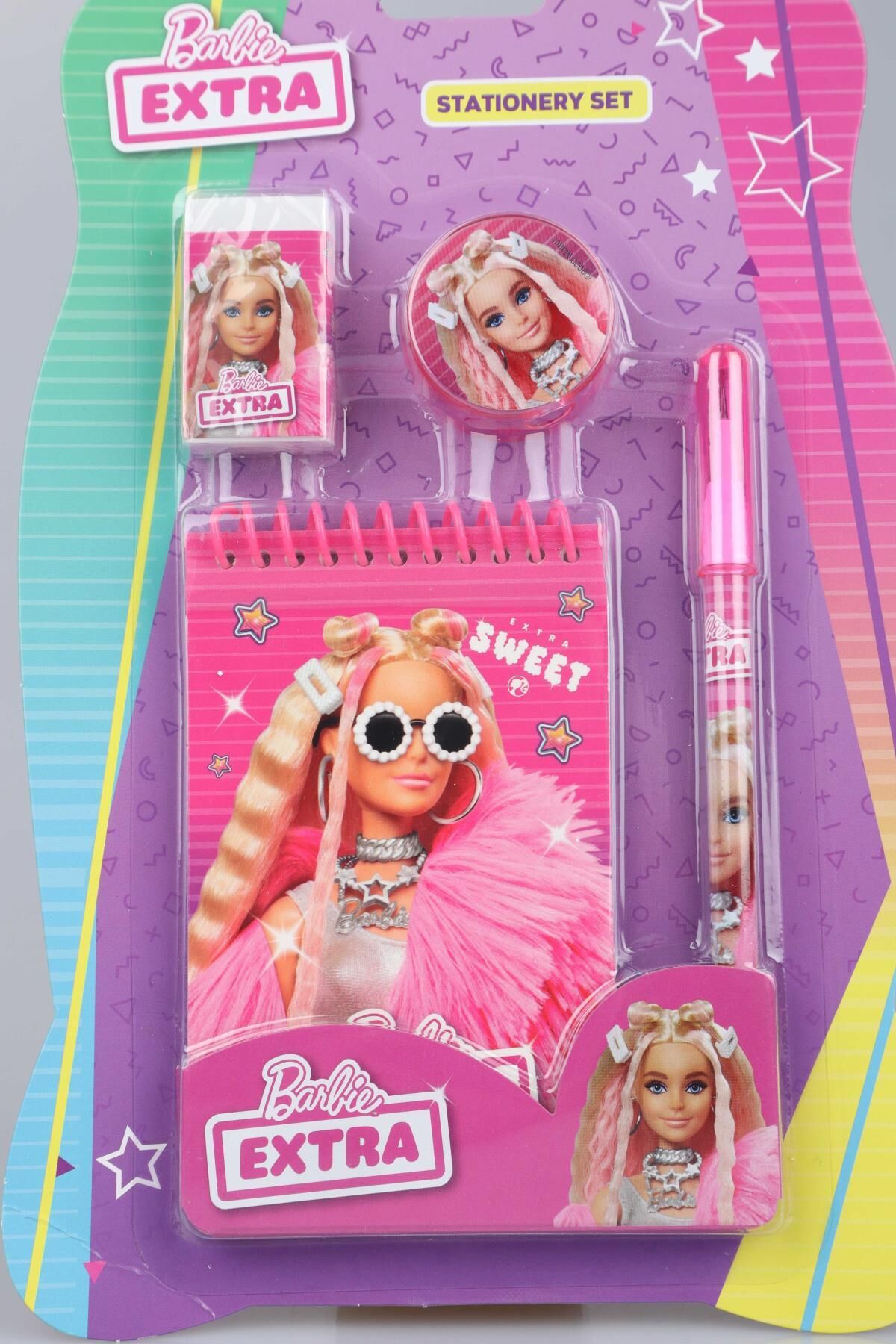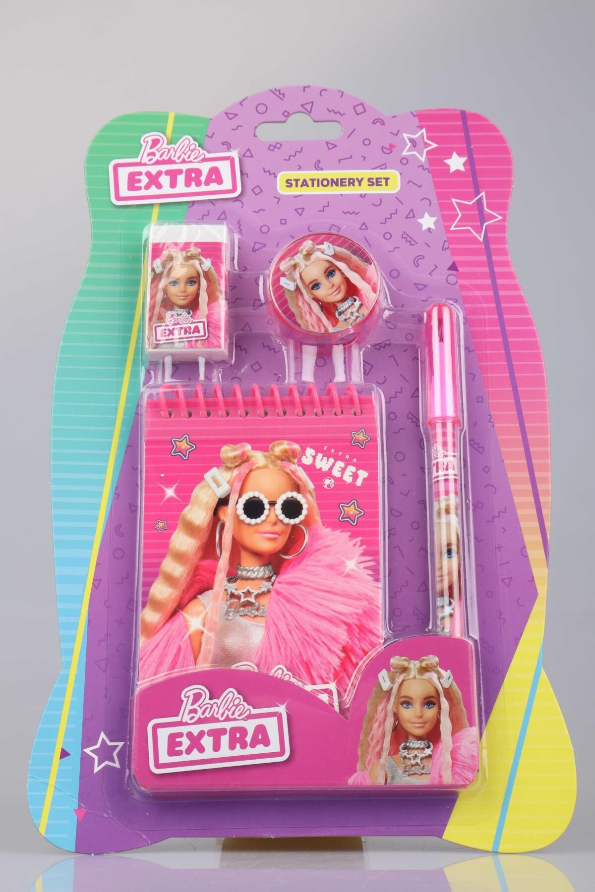 Dekomus BARBIE hayranı miniklerimizin yanında! BARBIE seven çocuklar için özel olarak hazırlanan bu seti çok seveceksiniz!Kutu içeriği:1 adet geçmeli kurşun kalem, 1 adet silgi, 1 adet kalemtraş ,1 adet not defteri bulunmaktadır. BARBIE olarak sattığımız tüm ürünler orjinal ve lisanslıdır.Sağlığa zararlı kimyasal madde kullanılmamıştır.