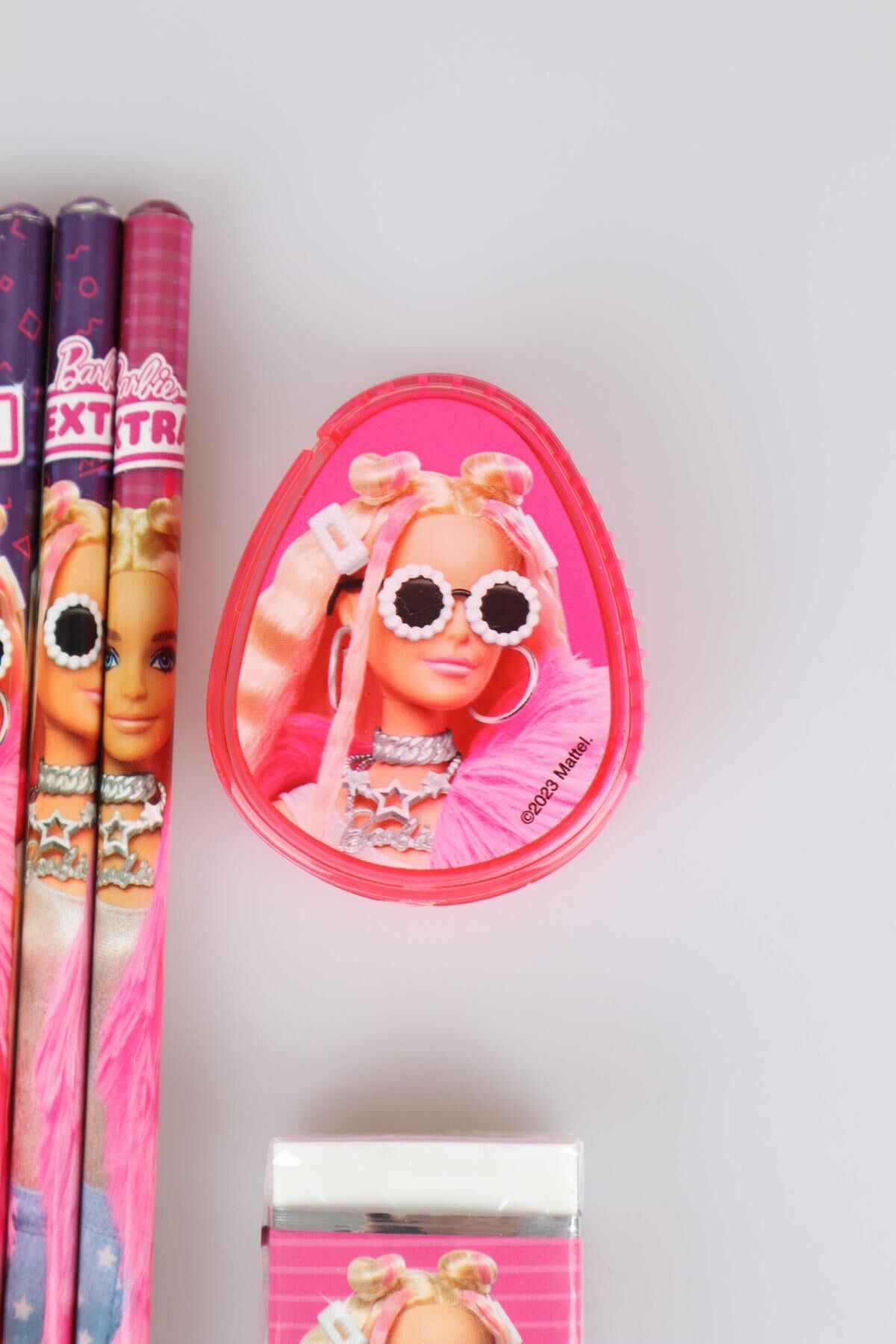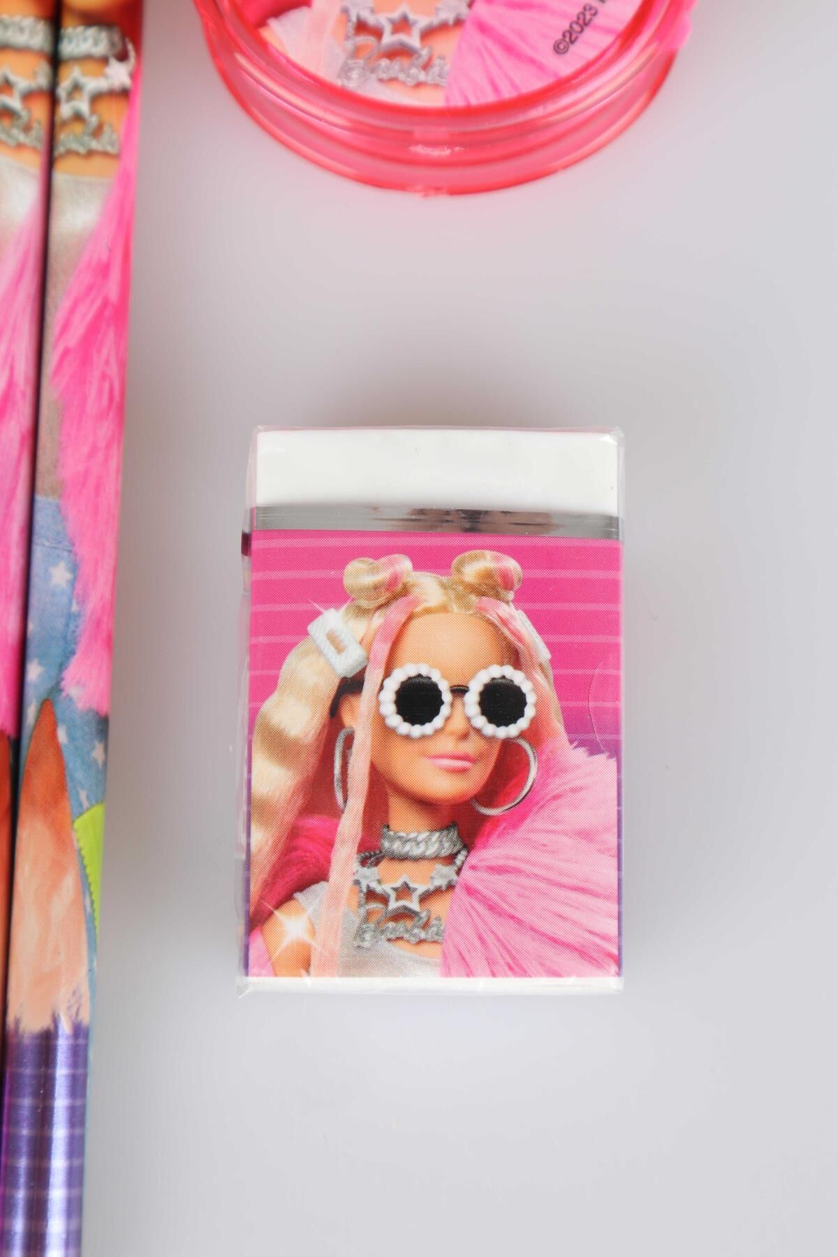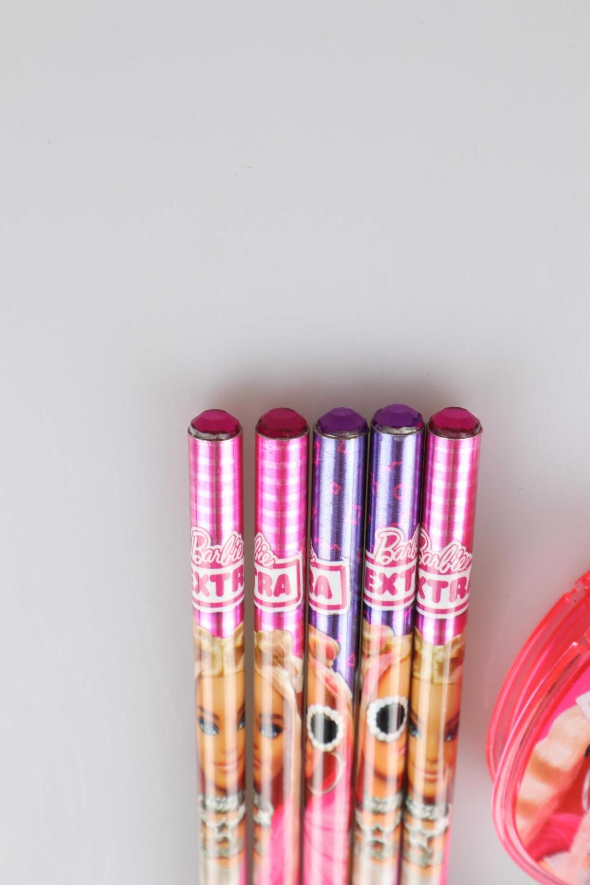 DEKOMUS BARBIE seven miniklerimizle birlikte ! Sizler için özel olarak hazırlanan bu set ile yazı yazmayı çok seveceksiniz.Yanlışlarınızı bu özel silgi silmek çok keyifli olacak:) BARBIE olarak sattığımız tüm ürünler orjinal ve lisanslıdır.Sağlığa zararlı kimyasal madde kullanılmamıştır.5 adet kurşun kalem,1 adet kalemtraş,1 adet silgi gönderilecektir.