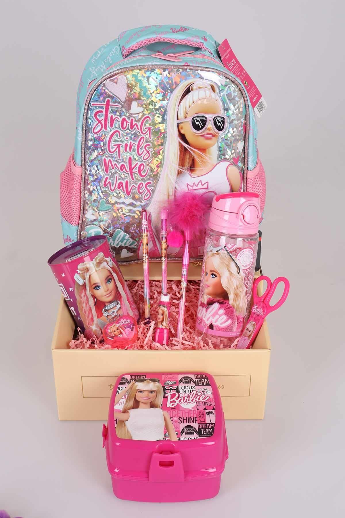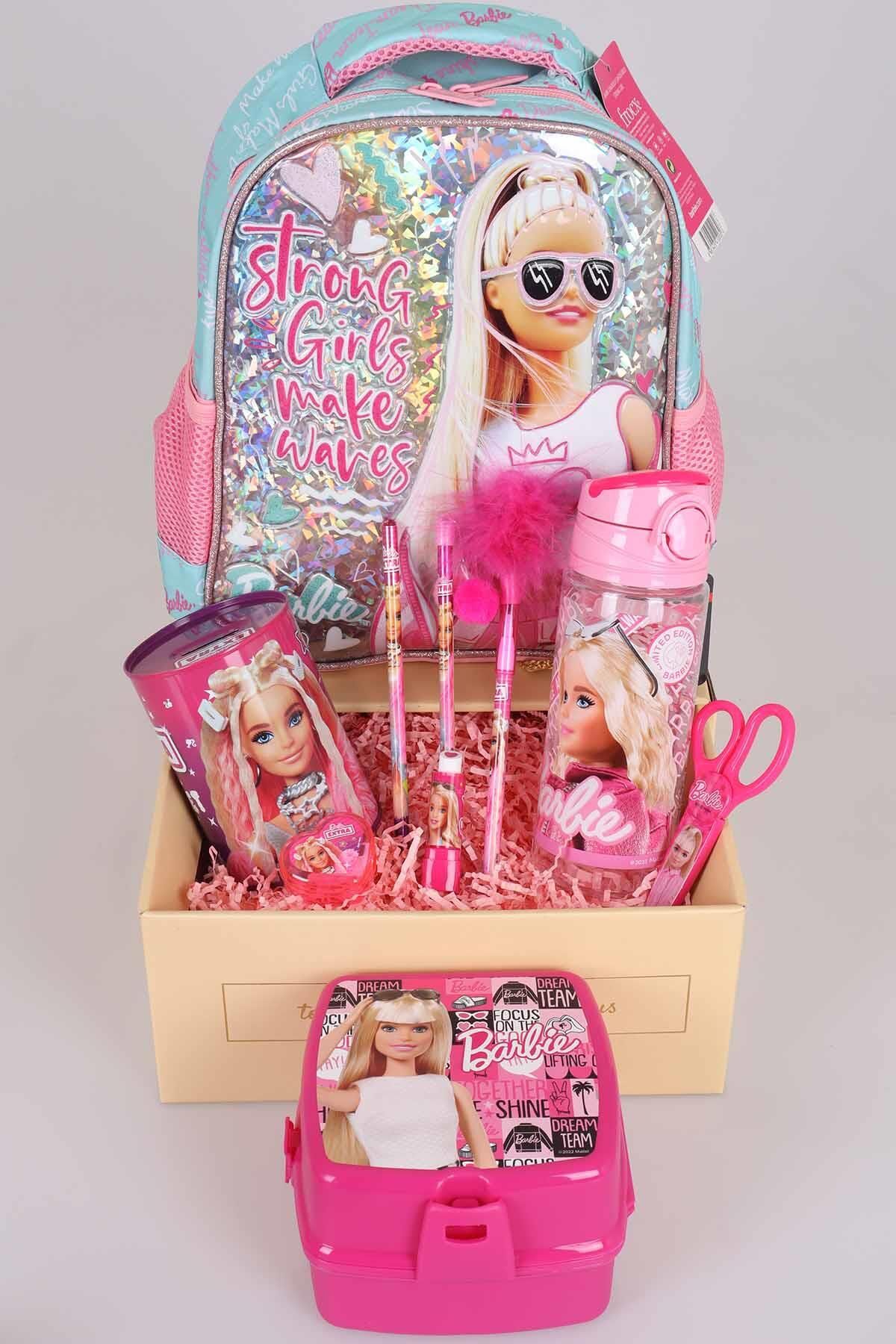 DEKOMUS BARBIE seven miniklerimizin yanında! BARBIE seven çocuklar için özel olarak hazırlanan bu seti çok sevecekler ! BARBIE olarak sattığımız tüm ürünler orjinal ve lisanslıdır.Sağlığa zararlı kimyasal madde kullanılmamıştır. 1 adet anaokulu sırt çantası ,1 adet beslenme kutusu , 1 adet trıtan matara,1 adet tüylü geçmeli kalem , 1 adet ponponlu kurşun kalem ,1 adet taşlı kurşun kalem ,1 adet makas , 1 adet kumbara , 1 adet ruj silgi ve 1 adet kalpli kalemtraş gönderilecektir.