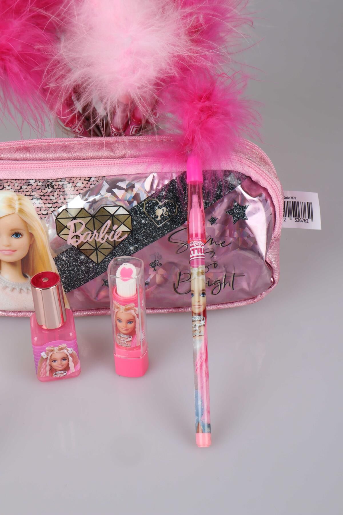 Set İçeriği:1 adet KALEM ÇANTASI,1 adet oje tasarım silgili kalemtraş , 1 adet tüylü geçmeli kalem,1 ADET kurşun kalem,1 adet ruj silgi ****BARBIE olarak sattığımız tüm ürünler orjinal, lisanslıdır.Sağlığa zararlı kimyasal madde kullanılmamıştır.