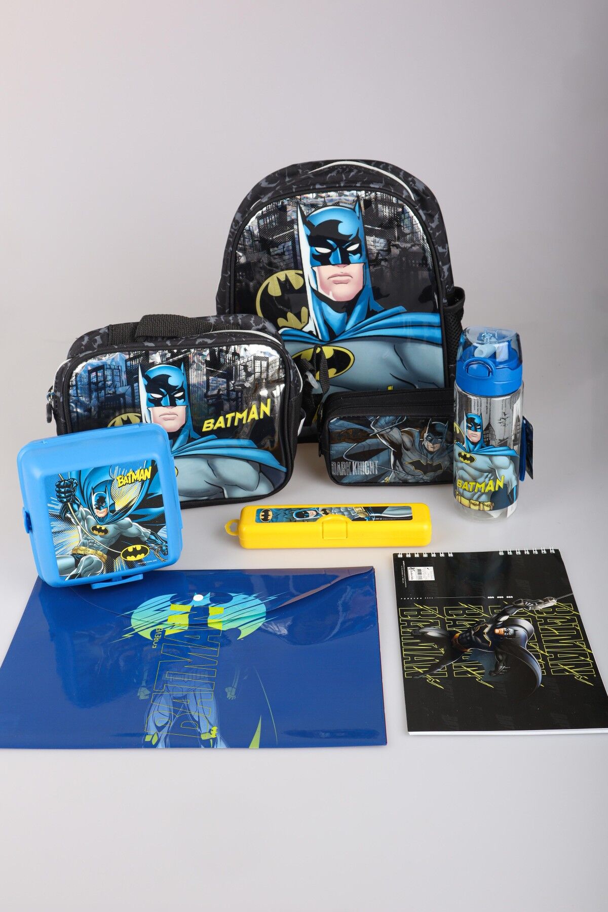 DEKOMUS BATMAN hayranlarının yanında! Bu seti seveceğinize eminiz :) .1 adet anaokul çantası ,1 adet 500 ml matara, 1 adet beslenme kutusu,1 adet resim defteri,1 adet çıtçıt dosya,1 adet kalem çantası,1 adet beslenme çantası,1 adet diş fırçası kutusu